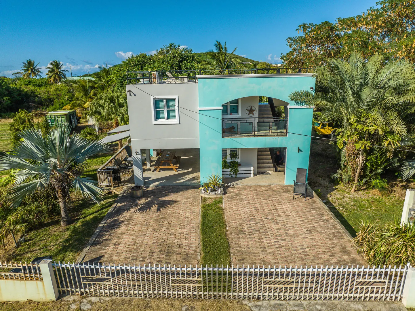 Don't miss this beautifully renovated 3 bedroom, 2 bath main house with a 1 bedroom, 1 bathroom bottom floor apartment and a rooftop terrace with power lines and plumbing already in place and a peek-a-boo ocean view.Own 3 R3-zoned lots totaling 1.1 acres with multiple fruit trees. Live in one unit, rent out the other and build a multi-unit on the extra lot as an investment. The home offers wind storm rated windows allowing egress in all rooms, poured concrete walls and roof, a 2 car carport, a paved driveway with 40 ft electric gate. It is fully fenced, has a large Diesel generator and A/Cs throughout. The property is only 5 minutes from the swimmable sandy beach at the Palms Hotel and Restaurant as well as only 10 minutes from Christiansted.