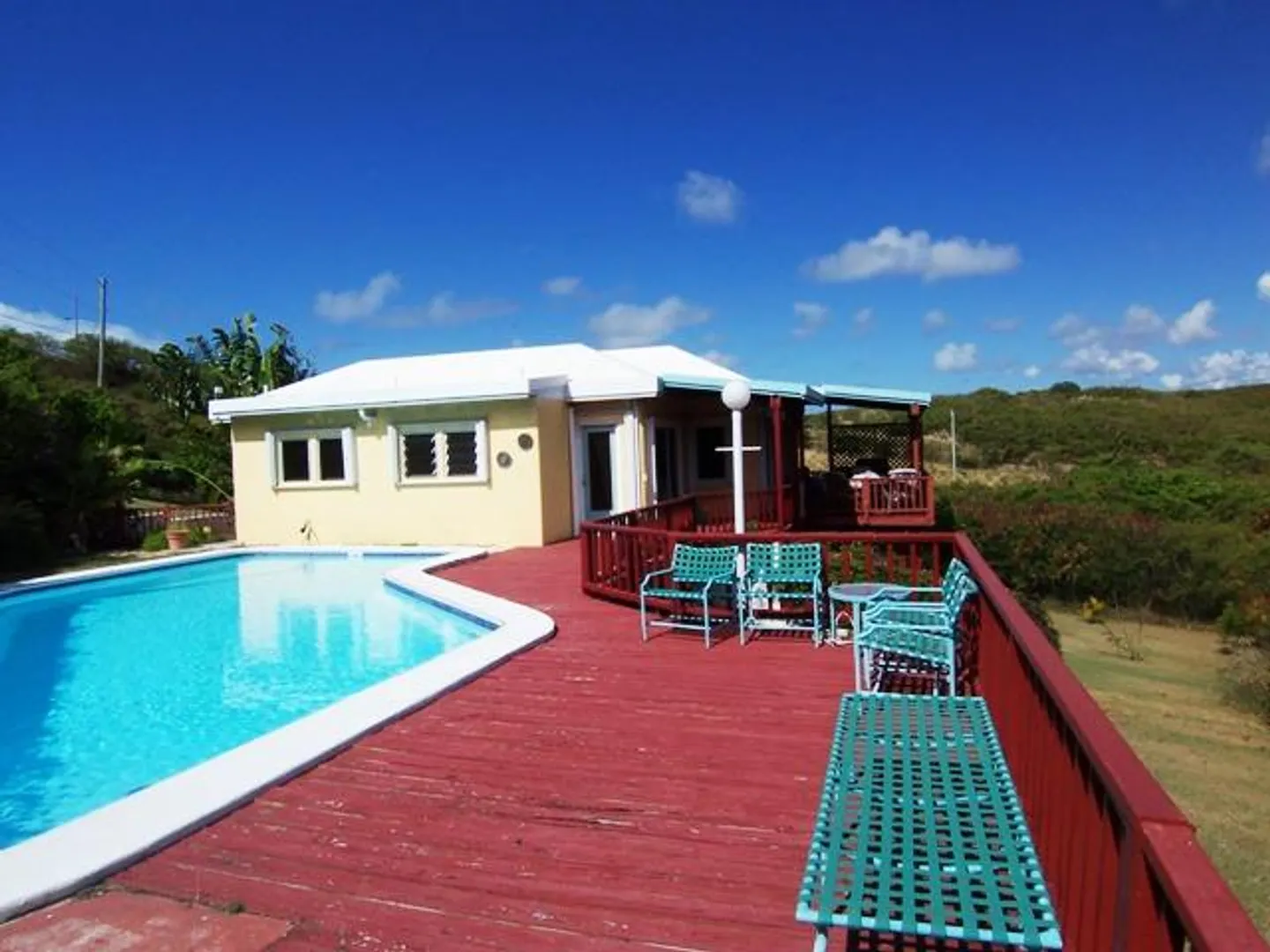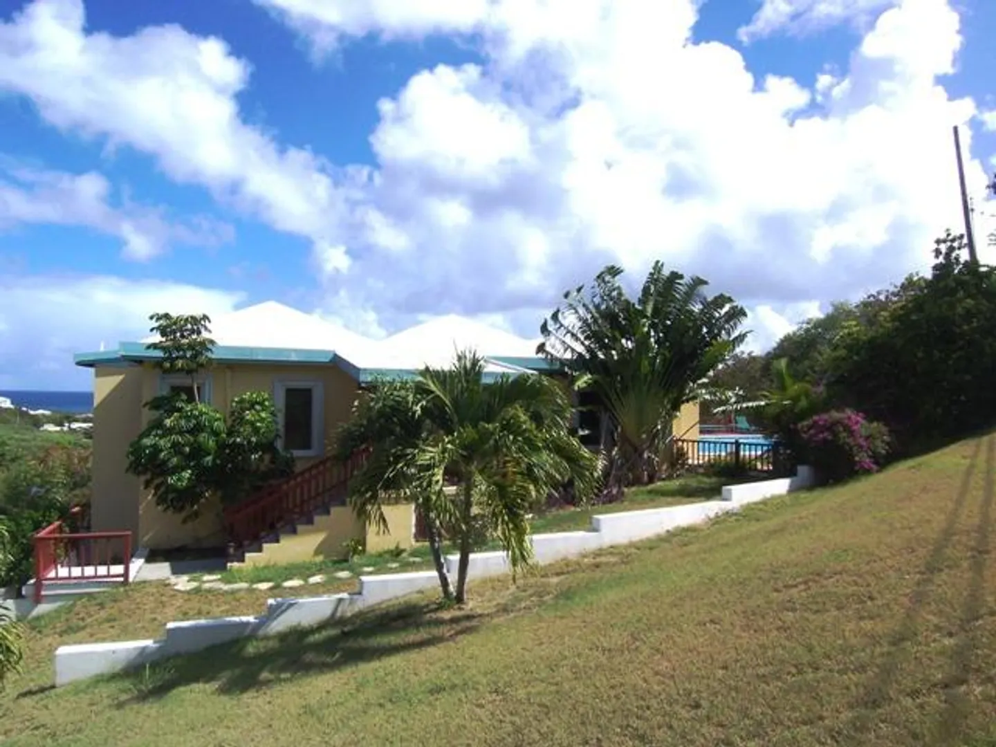 Excellent location, one of St. Croix's quiet beach communities, is the setting for this 3 bedroom 3 bath home with a study, a covered deck with a pretty Caribbean Sea views and Pull Point. The large pool is perfect for relaxation & entertaining. The 1-bedroom apartment has it's own covered deck and sea view. If you love the beach it's down the street.