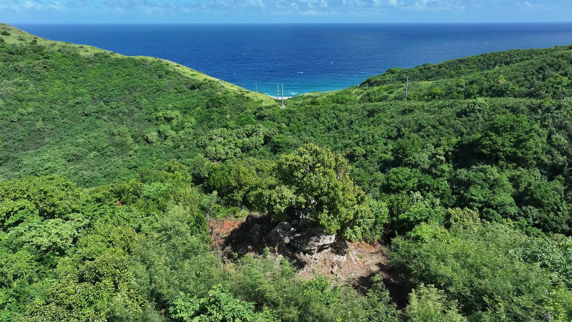 Located in the tranquil, tucked-away neighborhood of Estate Clairmont this 5.79 acres offers stunning seascape and North Shore hillside views. A cleared drive gently curves along the ridge, leading to a proposed home build site. Just below this site, a separate cleared path takes you to a rocky outcrop, featuring a large, mature tree that perfectly frames panoramic views of the Caribbean Sea, expansive blue skies, and lush green hills. Your dream of living in the Virgin Islands begins here.
