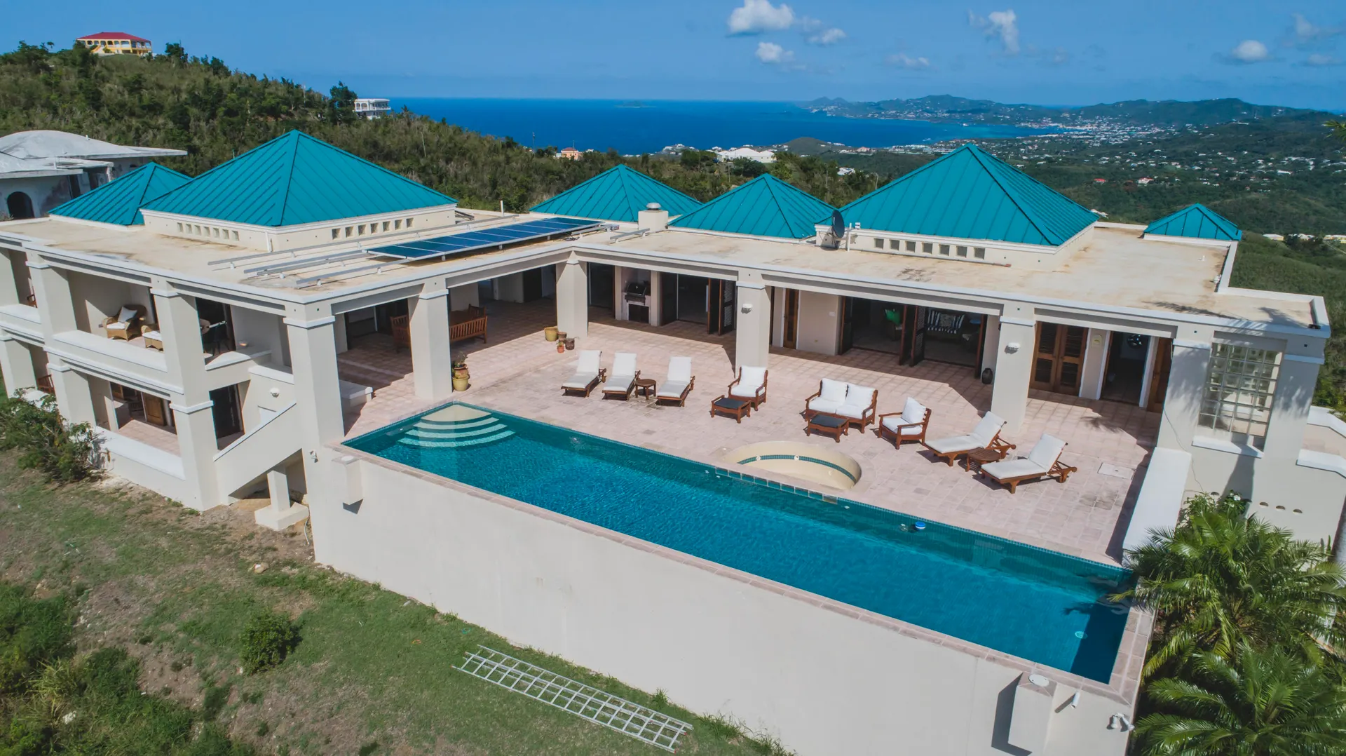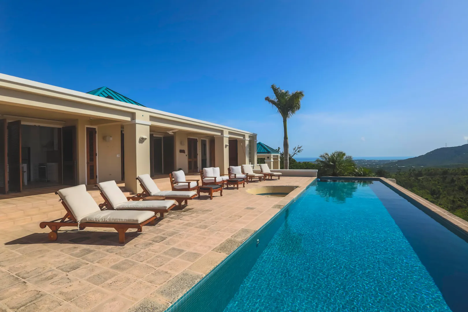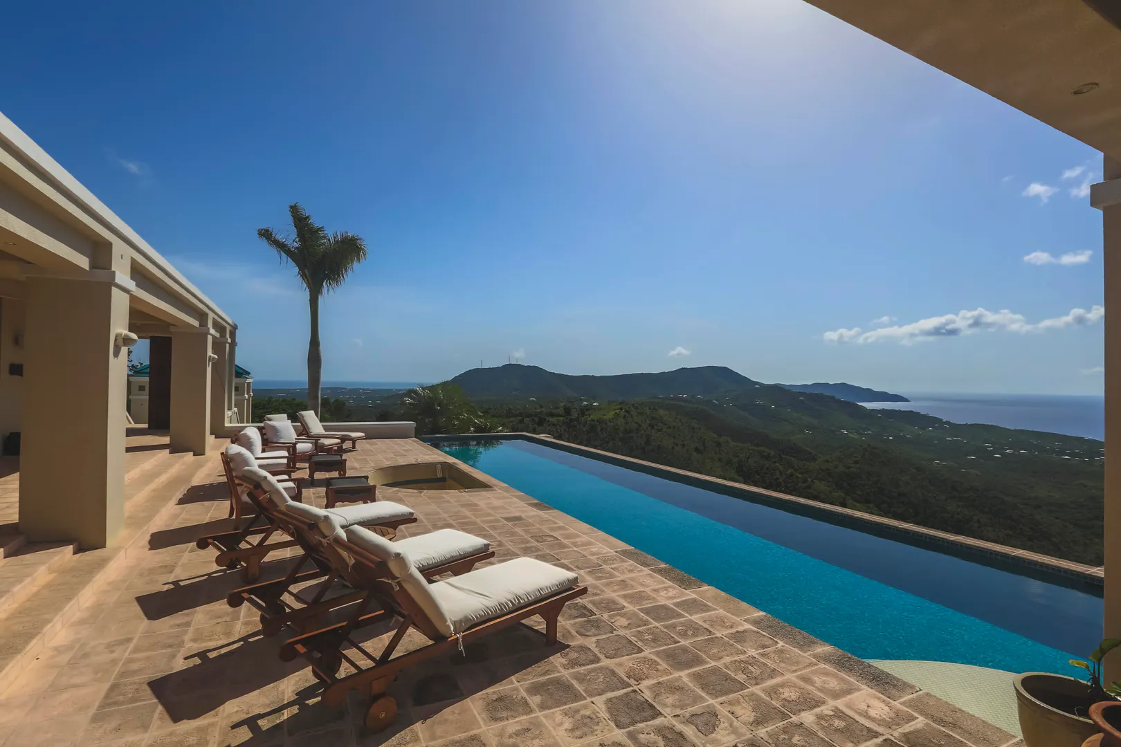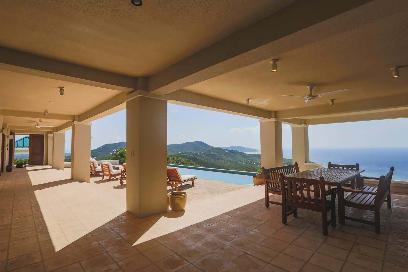 Seeing is Believing! Nestled on a sunny hillside and surrounded by tropical foliage, Serenity enjoys 360 panoramic views of the Caribbean and distant islands. This 4 Bedroom 4 1/2 bath ultra comfortable open-floor plan home includes a beautiful 1 Bedroom 1 bath care-takers apartment. Located on a private mountain top, every single room in this home looks out to the Caribbean Sea and beyond. This amazing location guarantees a gorgeous sunrise and sunset every day. With nearly 3 acres of land, large lap pool, massive patios, 20 kw generator, garage, large storage rooms, carport, lift, this amazing home has everything you need to enjoy the Caribbean Life!