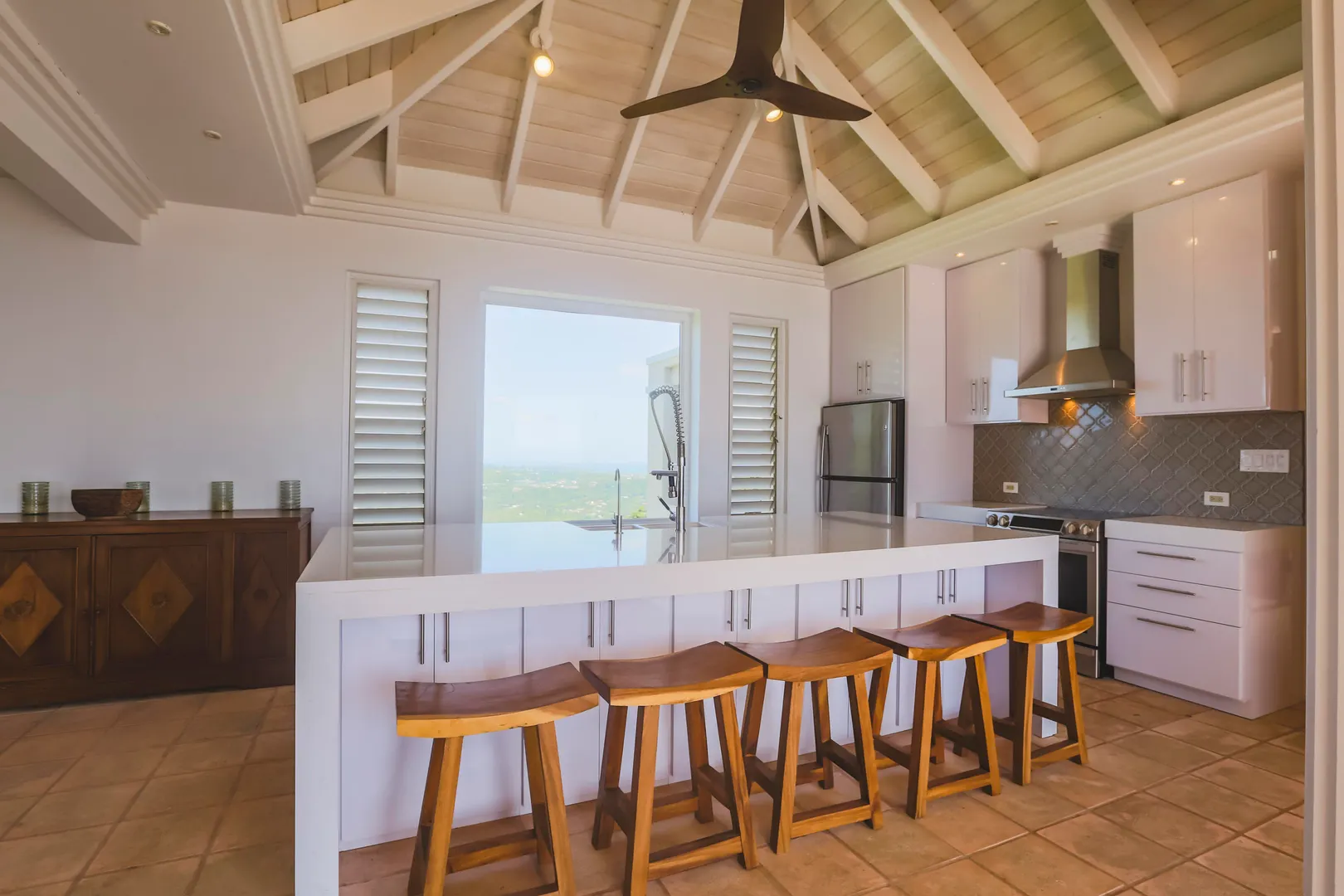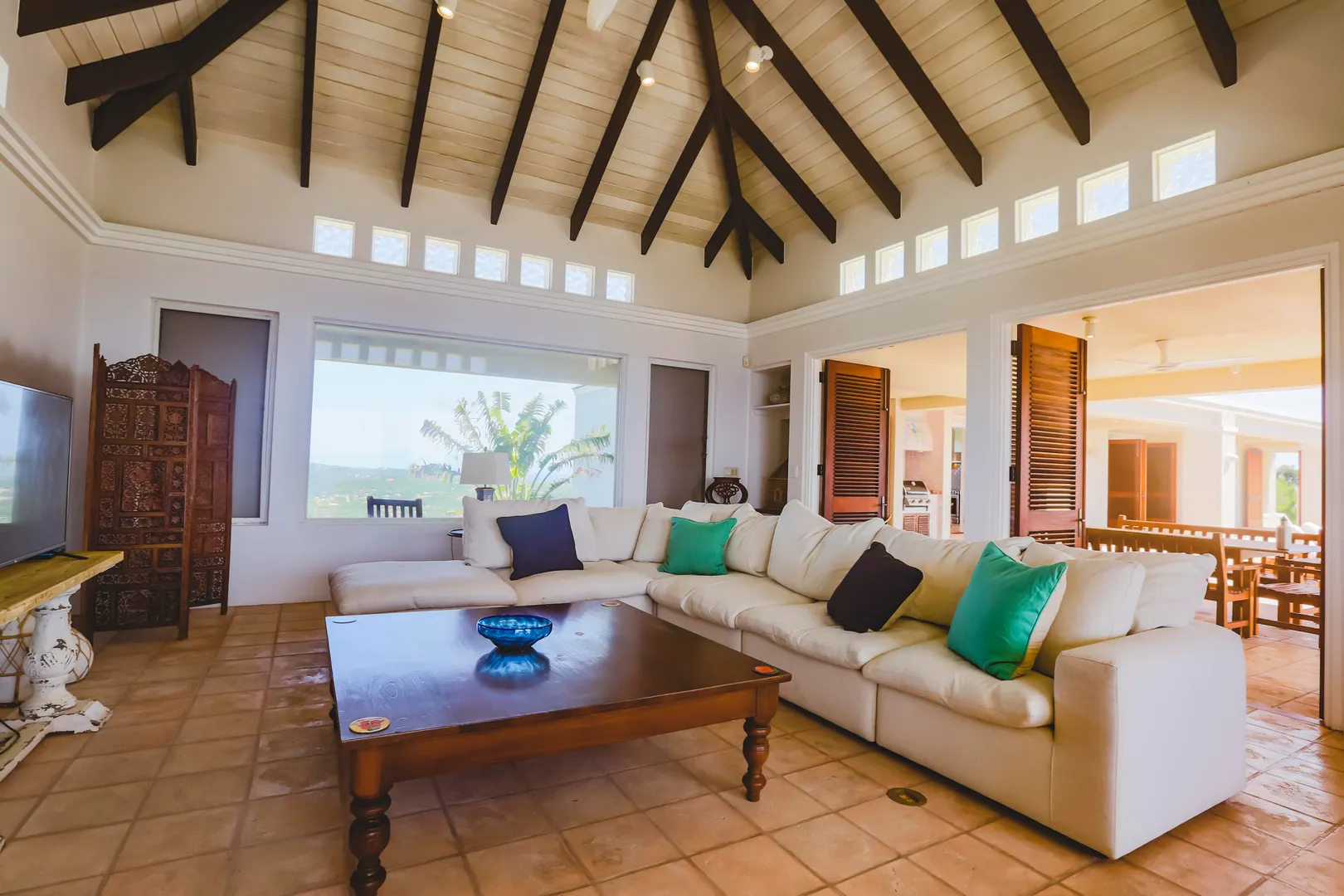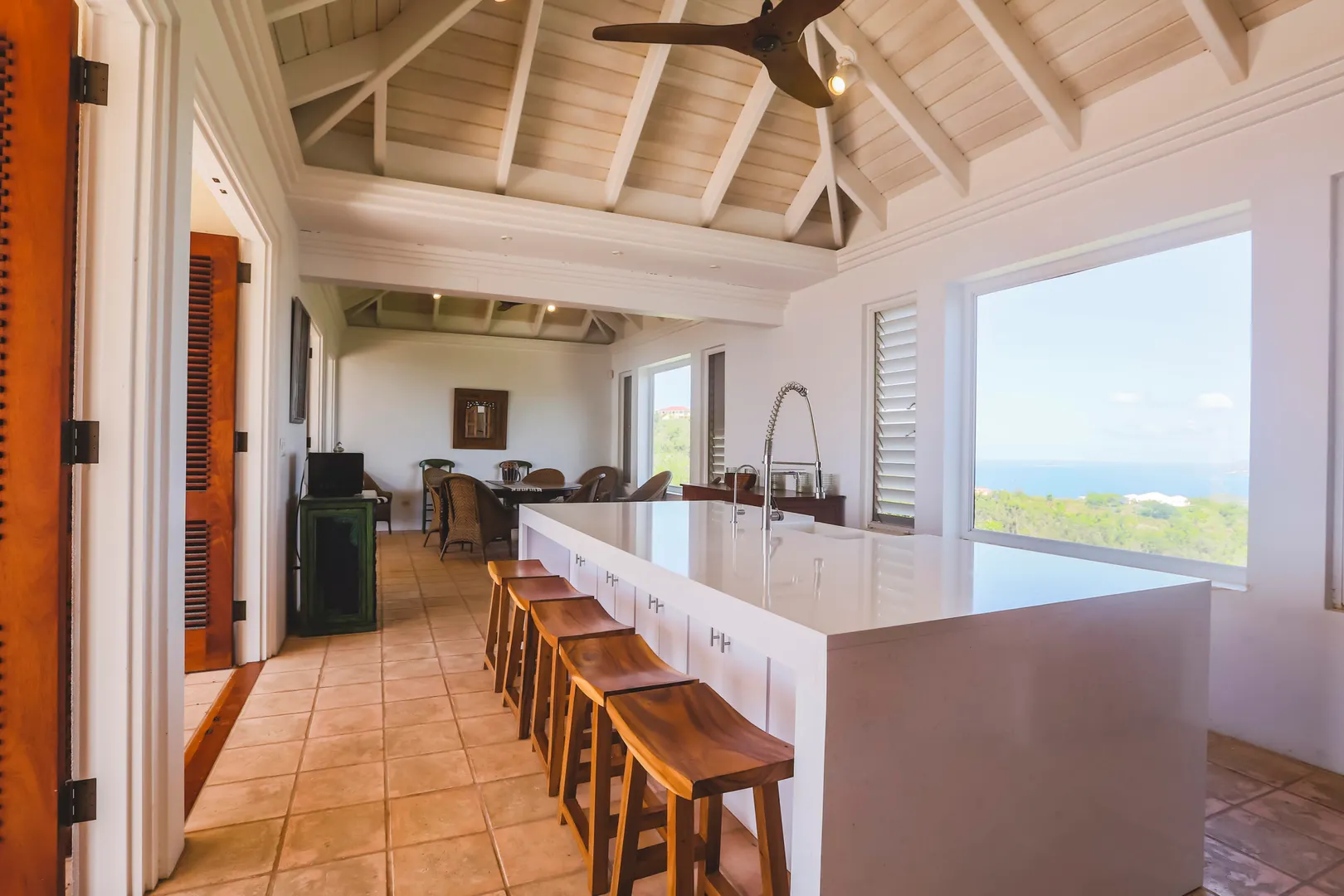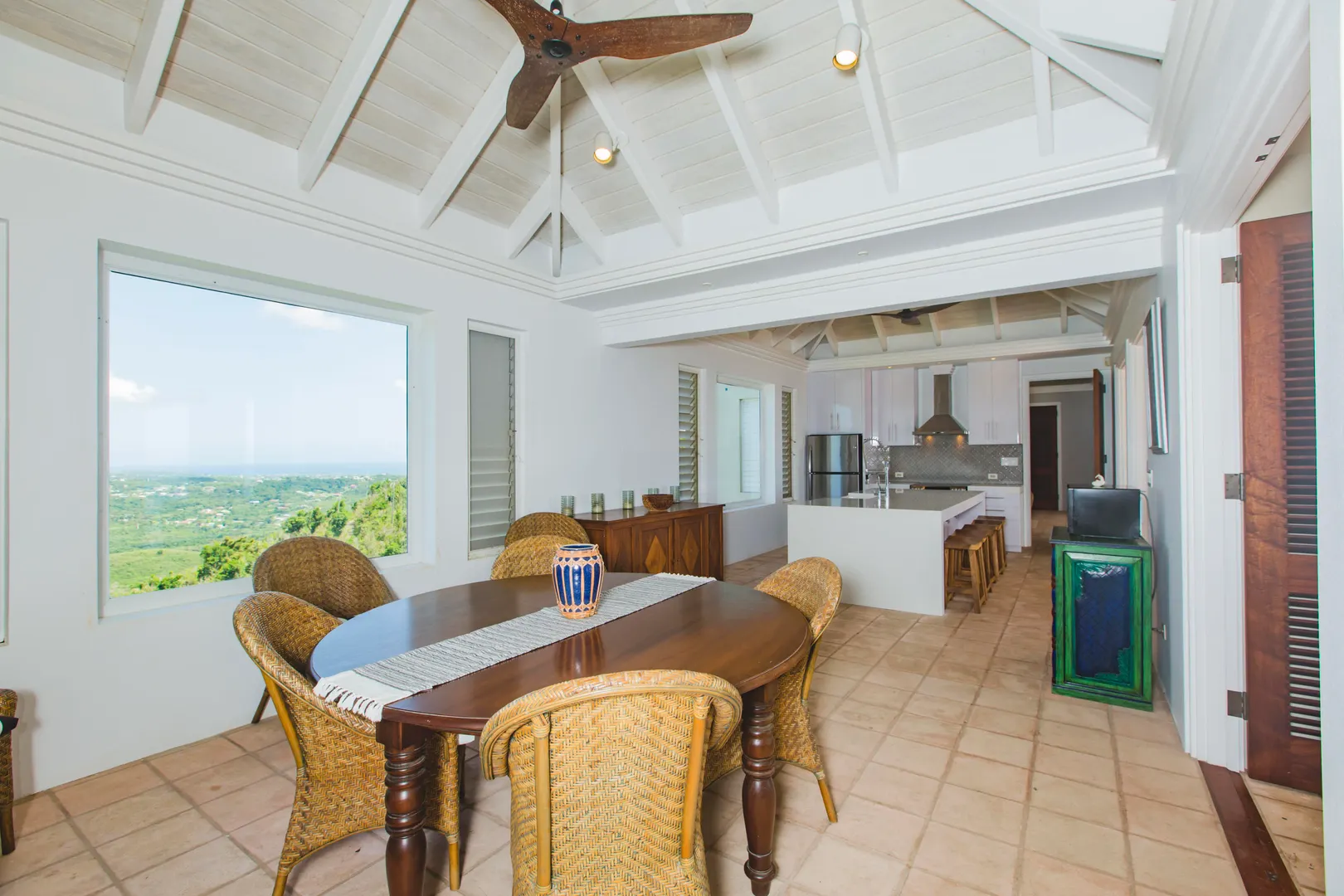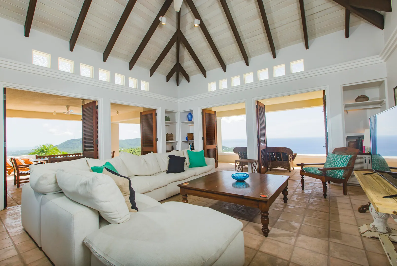 Seeing is Believing! Nestled on a sunny hillside and surrounded by tropical foliage, Serenity enjoys 360 panoramic views of the Caribbean and distant islands. This 4 Bedroom 4 1/2 bath ultra comfortable open-floor plan home includes a beautiful 1 Bedroom 1 bath care-takers apartment. Located on a private mountain top, every single room in this home looks out to the Caribbean Sea and beyond. This amazing location guarantees a gorgeous sunrise and sunset every day. With nearly 3 acres of land, large lap pool, massive patios, 20 kw generator, garage, large storage rooms, carport, lift, this amazing home has everything you need to enjoy the Caribbean Life!