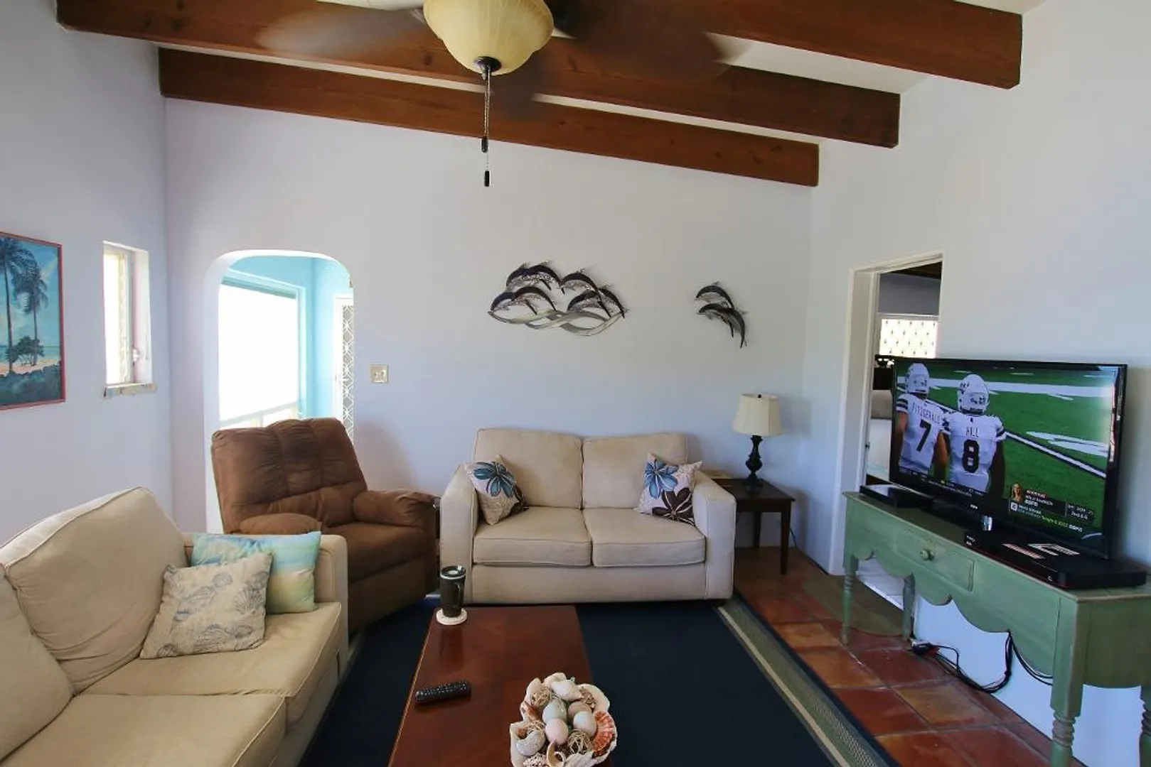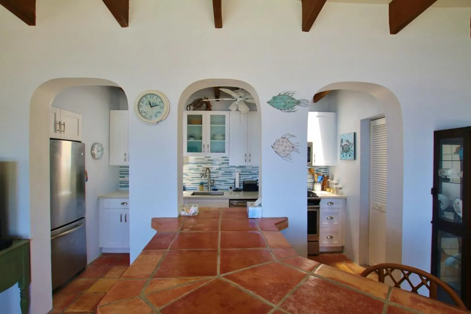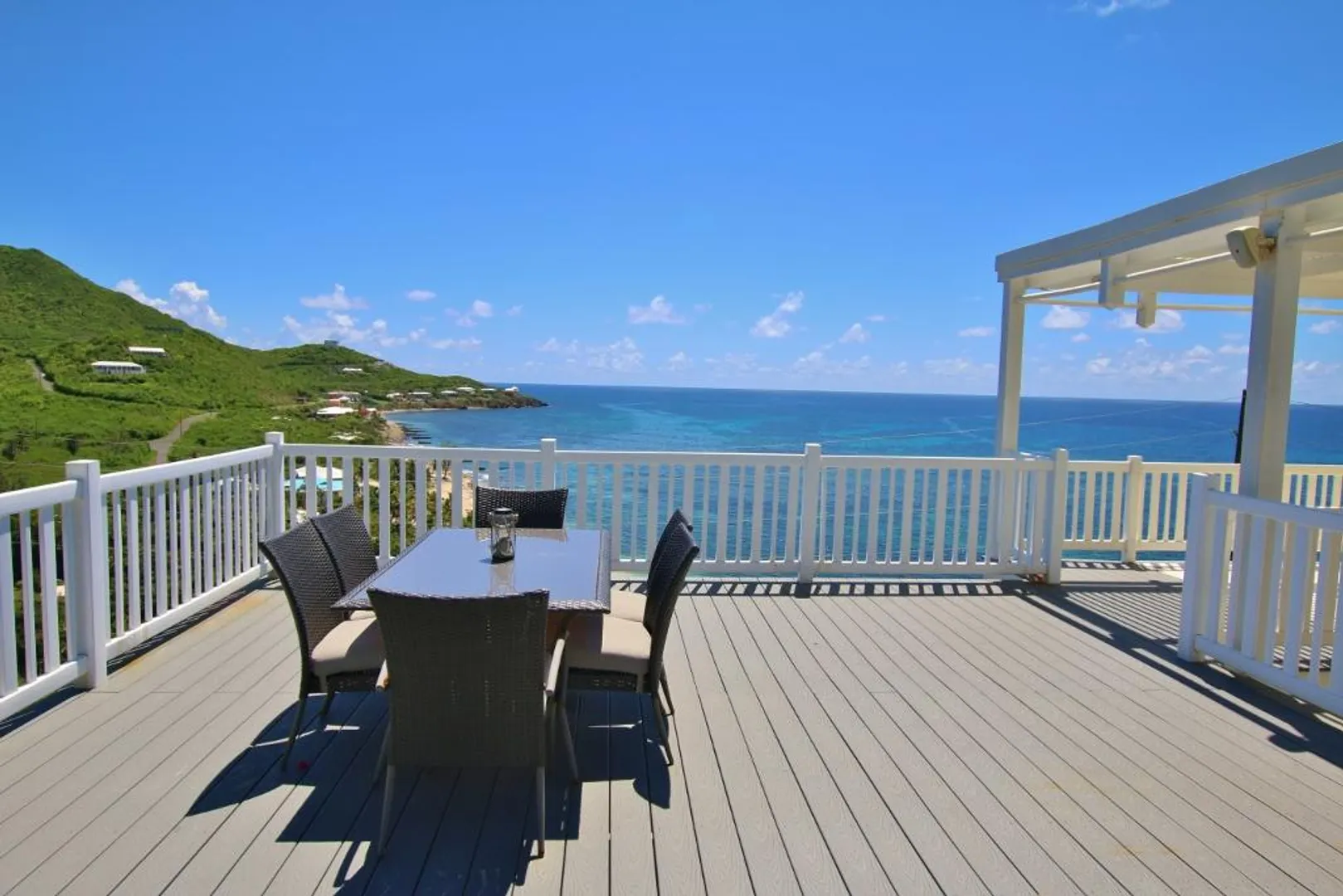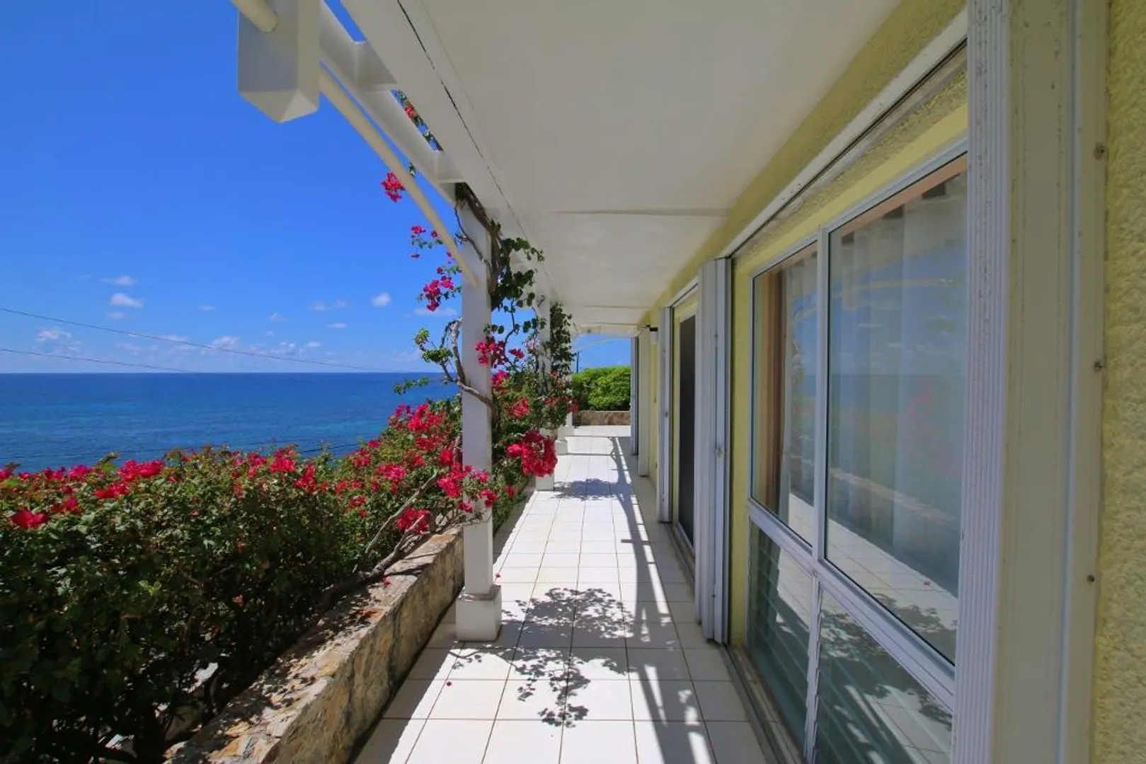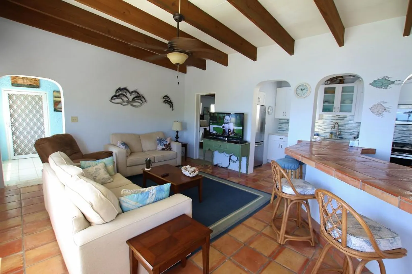 Sweet 2/2 home overlooking Grapetree Beach with a spacious 1 bedroom apartment below. Both have great views! Kitchens and 1 bath remodeled. Nice pool area with gazebo. Walk to the beach! Gated and nicely landscaped. Totally Solar (6000 watts) with 24 KW battery backup. New gas appliances. Workshop. Furnished.
