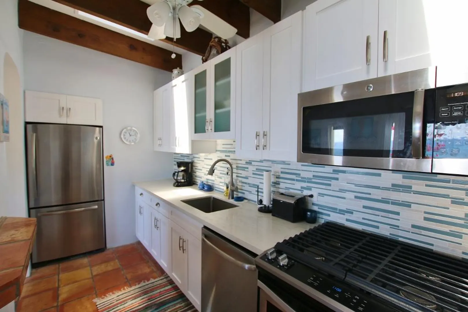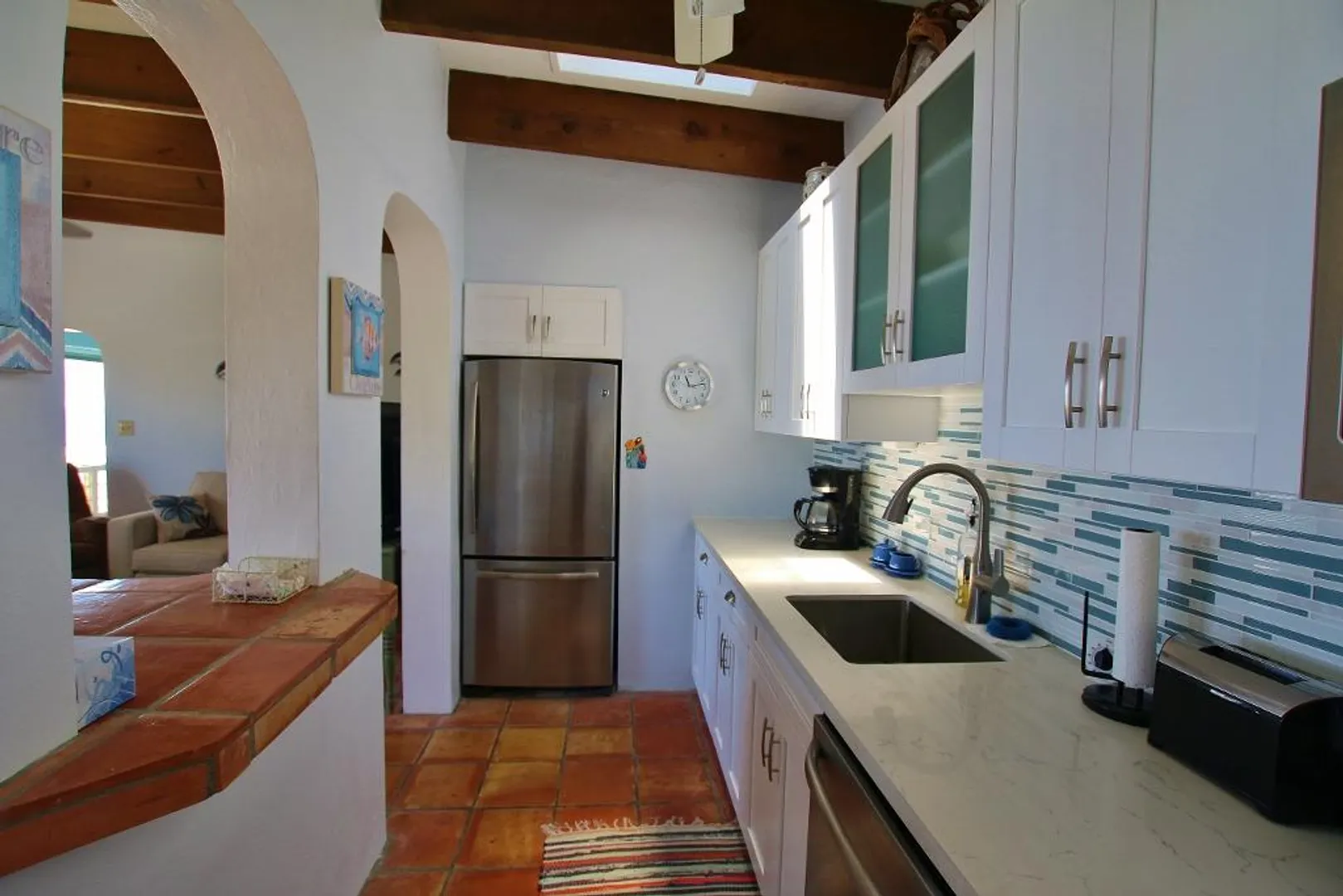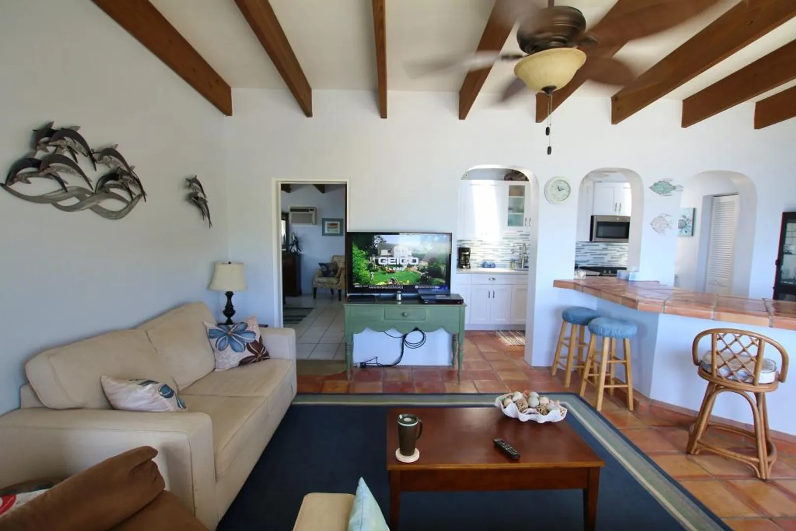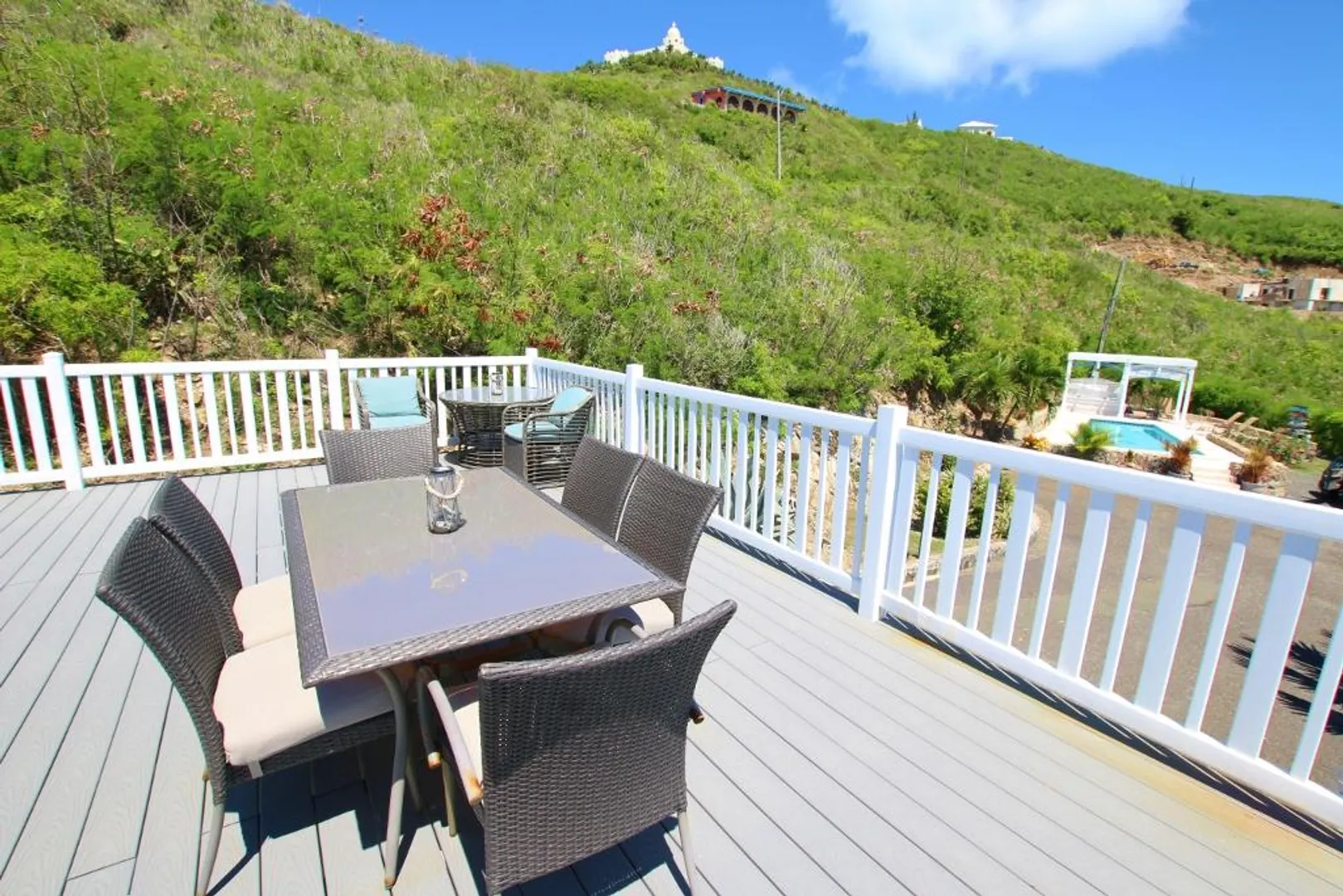 Sweet 2/2 home overlooking Grapetree Beach with a spacious 1 bedroom apartment below. Both have great views! Kitchens and 1 bath remodeled. Nice pool area with gazebo. Walk to the beach! Gated and nicely landscaped. Totally Solar (6000 watts) with 24 KW battery backup. New gas appliances. Workshop. Furnished.