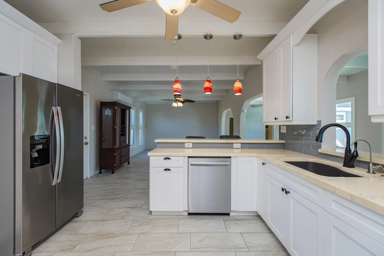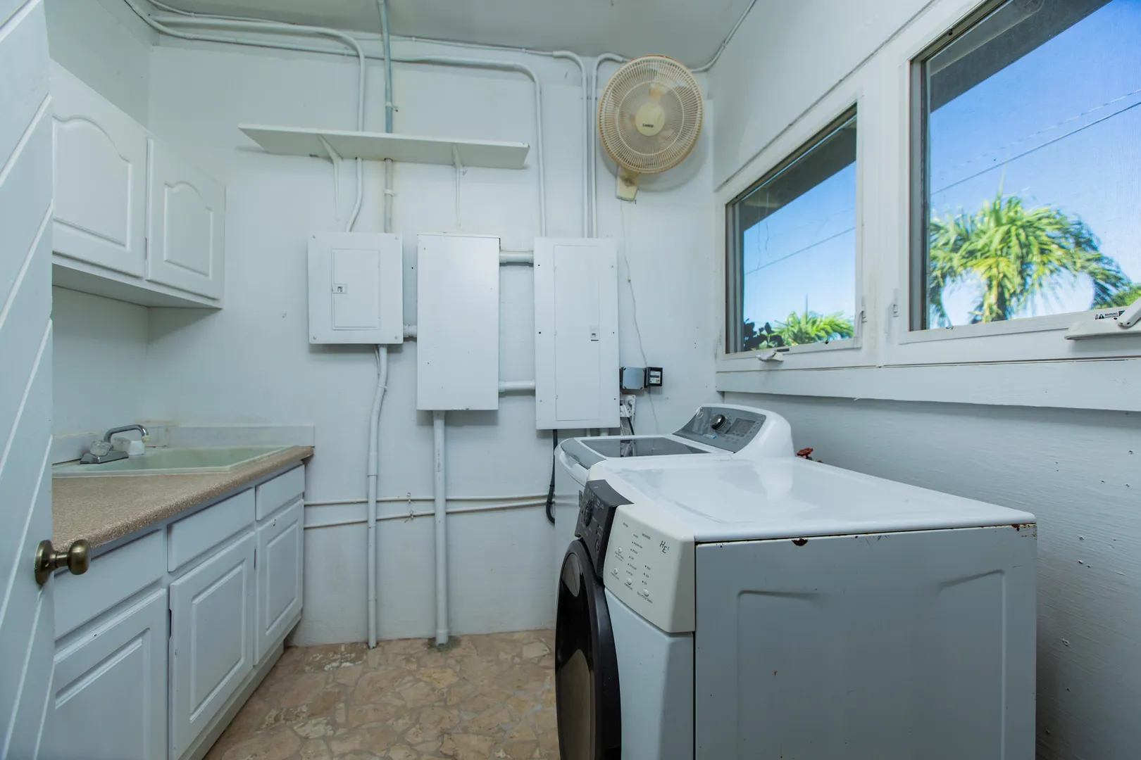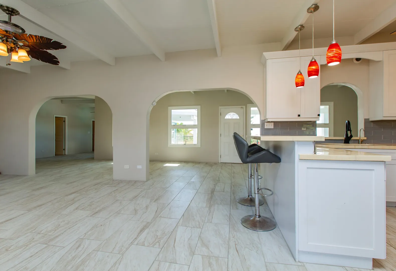 THE perfect East End family home or Caribbean getaway! 3 bedrooms, 3 bathrooms in main, 1 bedroom/1 bathroom apartment/mother-in-law/guest suite attached, HUGE yard, open kitchen and living room, laundry room, large main bedroom suite with sitting room, pool with powder coated aluminum railings w/ Trex drink rail, Trex pool deck, solar hot water, 22KW propane generator, well pump house, fruit trees, wireless remote alarm system, split A/C's, epoxy kitchen & bath countertops, tons of extra storage space, South shore Caribbean Sea views from pool deck all located in a private residential neighborhood, just minutes from downtown Christiansted.