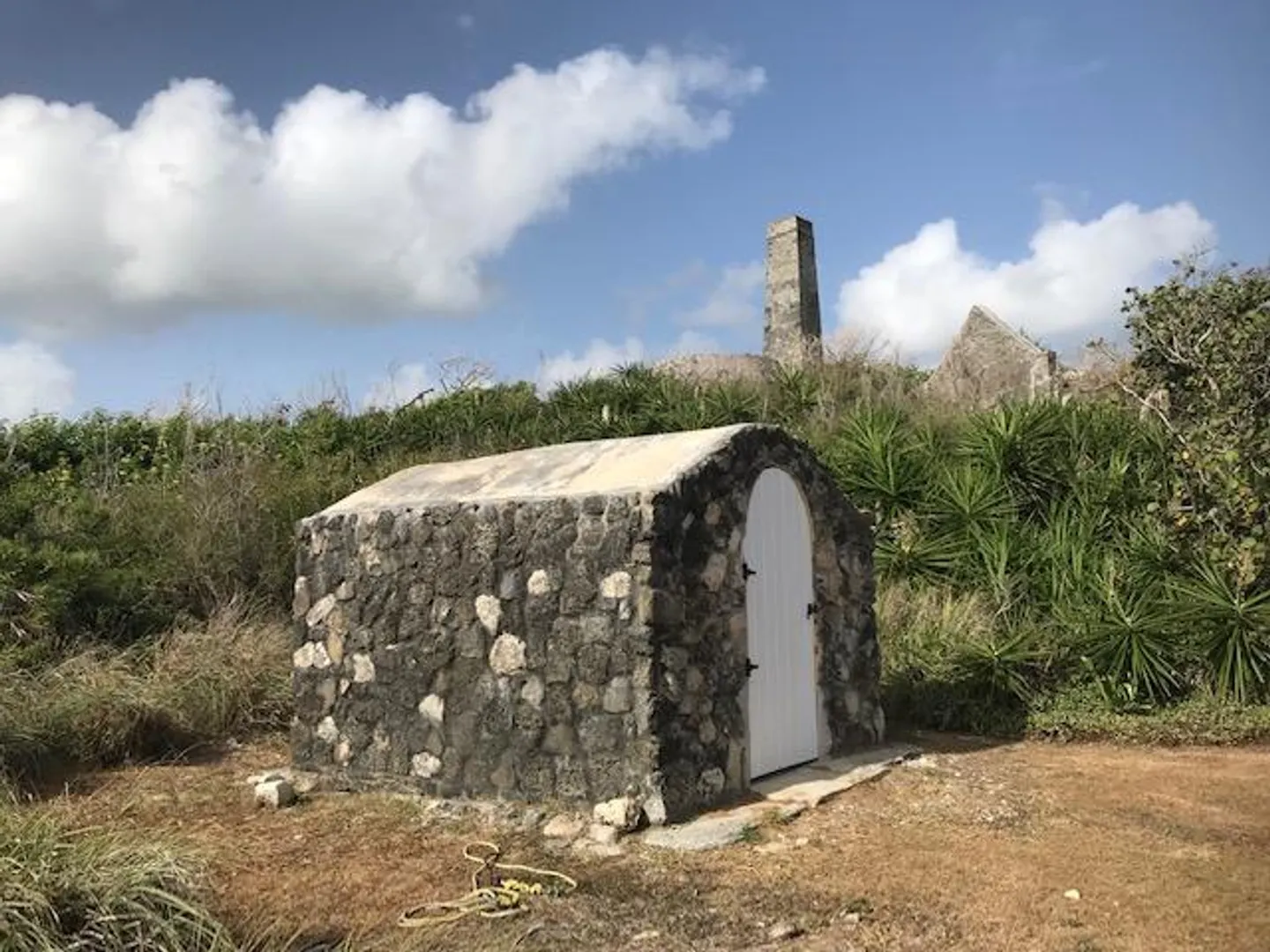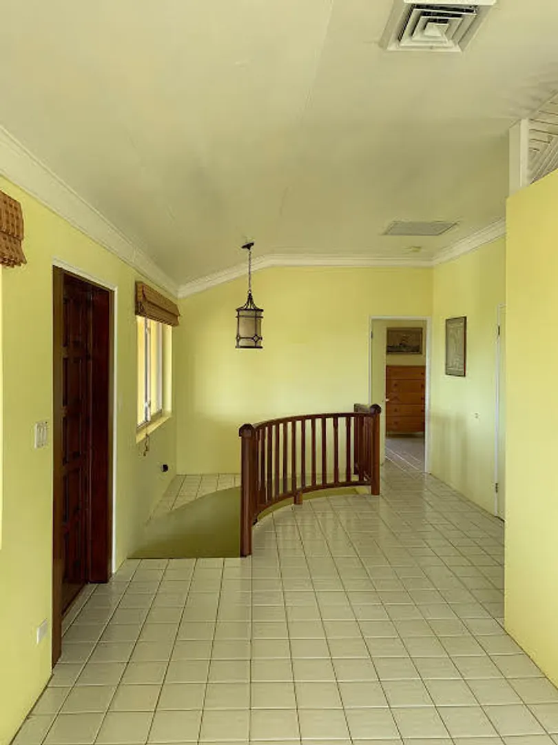 This stately two story home located in the popular gated beachfront community of Judith's Fancy has many historic components and ruins incorporated into the home and landscape including delightful Danish brick pathways and the traditional ''welcoming arms'' staircase.
