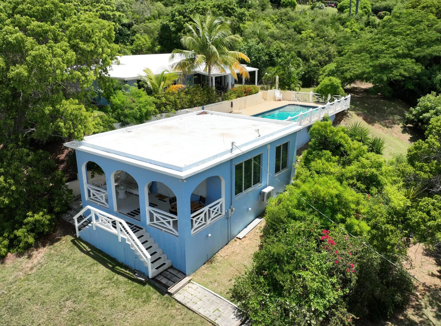 Enjoy gentle Caribbean breezes and gorgeous Buck Island views from this 2-bedroom, 2-bathroom island-style home and 1-bedroom, 1-bathroom freestanding cottage. Situated on an approximately .64 acres, the property offers mature landscaping and an inviting outdoor area perfect for year-round entertaining, quiet dinners, and morning coffee on the gallery. Cool off in the refreshing pool and relax in the sun while lounging on the large pool deck. The main house features central air and the cottage has an AC mini split. Both have a generator with a manual transfer switch. The salt chlorinator makes maintaining the pool a breeze. Located in Cotton Valley, this steel-frame constructed home and guest cottage is the perfect place to live your Caribbean dream.