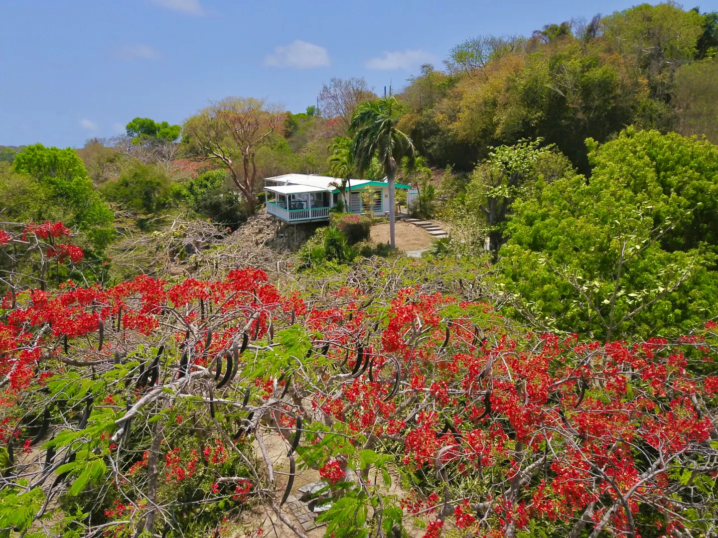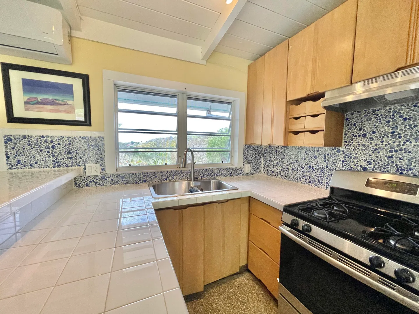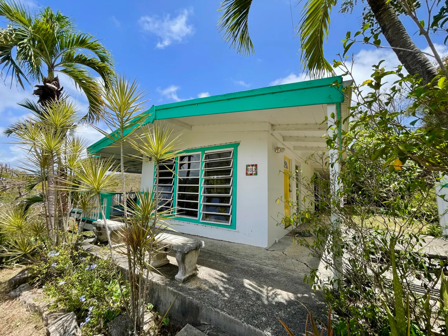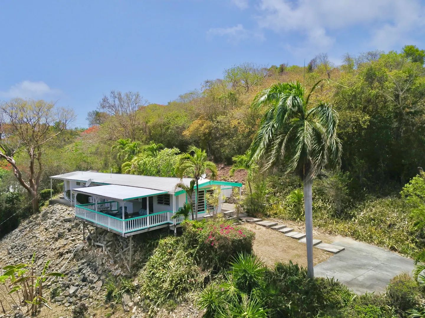Charming three bedroom house on a 0.88 acre lot with mature landscaping including some beautiful Flamboyant trees with bright red flowers. The home is well laid out with terrazzo floors flowing throughout. The living/ kitchen area is laid out as an open space with access to the outdoor deck. The kitchen has stainless steel appliances and the countertops and backsplash was recently updated. You can enjoy the views of the green rolling hills from the outdoor covered deck, the perfect spot for a cup of coffee in the morning or dinners at night. At the far end of the house you'll find three bedrooms, all have sliding doors to provide egress and light. The house is perfect for someone wanting privacy, a place to garden and even comes with a chicken coop.