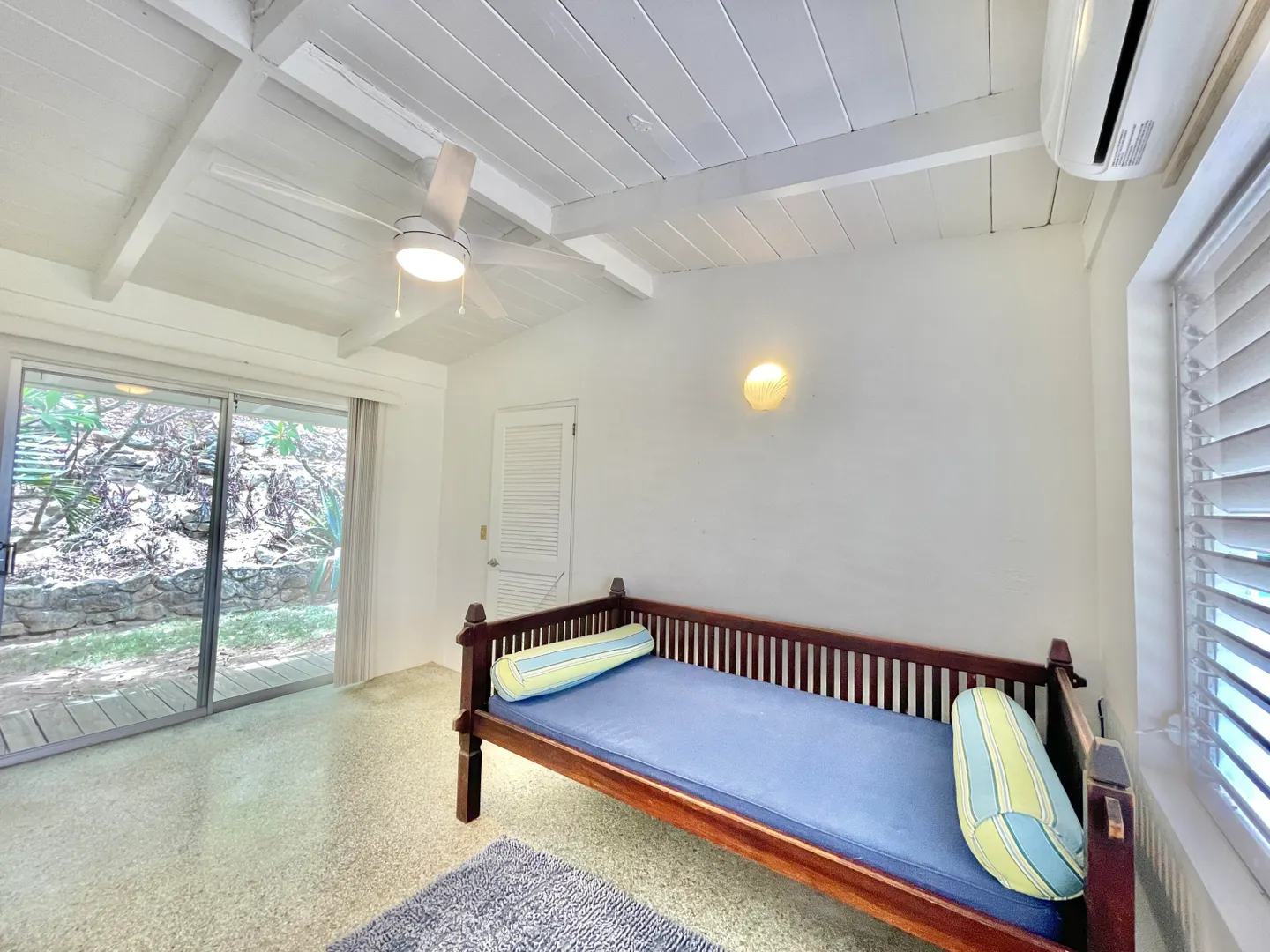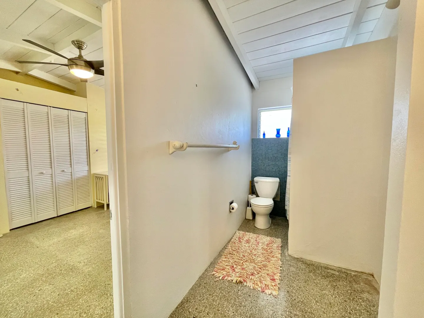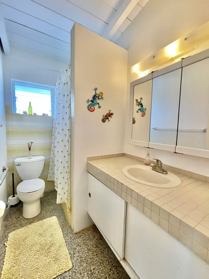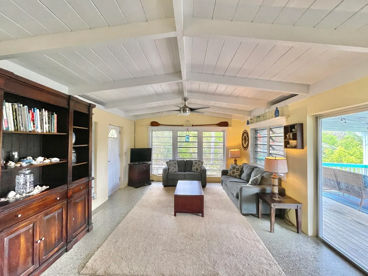 Charming three bedroom house on a 0.88 acre lot with mature landscaping including some beautiful Flamboyant trees with bright red flowers. The home is well laid out with terrazzo floors flowing throughout. The living/ kitchen area is laid out as an open space with access to the outdoor deck. The kitchen has stainless steel appliances and the countertops and backsplash was recently updated. You can enjoy the views of the green rolling hills from the outdoor covered deck, the perfect spot for a cup of coffee in the morning or dinners at night. At the far end of the house you'll find three bedrooms, all have sliding doors to provide egress and light. The house is perfect for someone wanting privacy, a place to garden and even comes with a chicken coop.