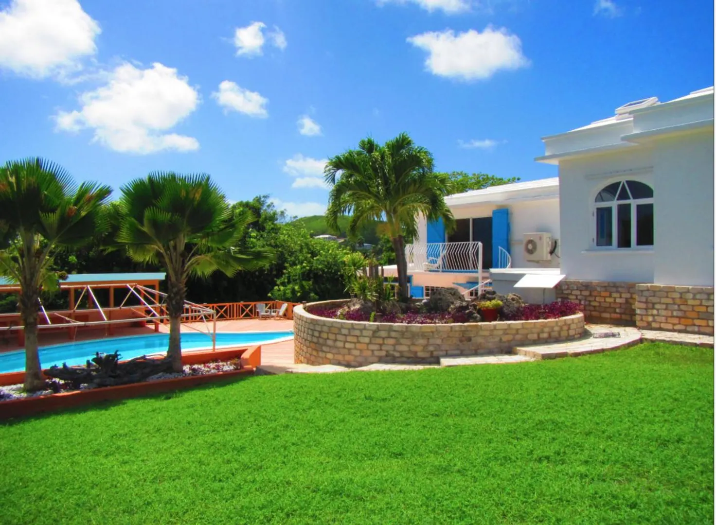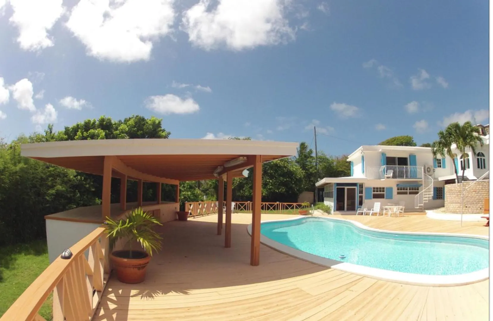 Amazing location, next door to Judith's Fancy Ruins, huge yard, terrific entertainment area around the pool and covered patio area. Patio is lighted for entertaining, extremely large picnic table for family and parties. Inside very large great rooms, granite kitchen counter tops, beautiful tiled floors, lots of space. Easy dreamy lsland living.