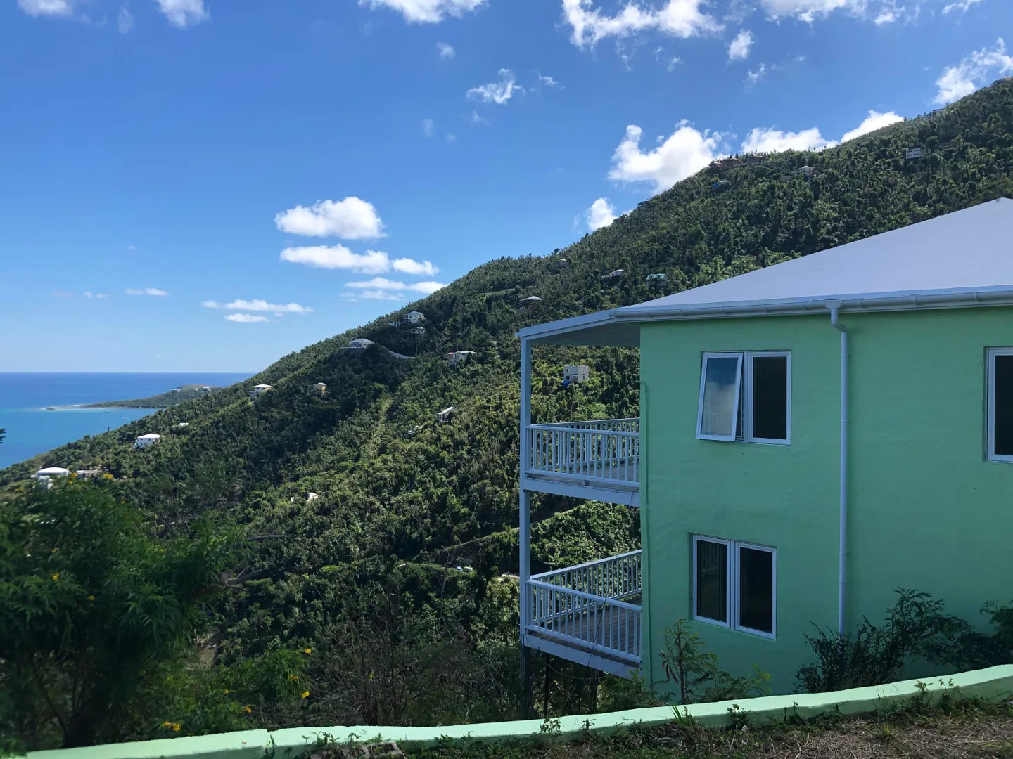 This is an all masonry home with panoramic views of Coral Bay and beyond. Internal staircase to bedrooms bellow with lower and upper covered deck spaces.