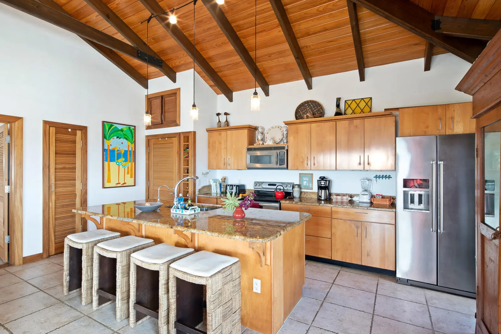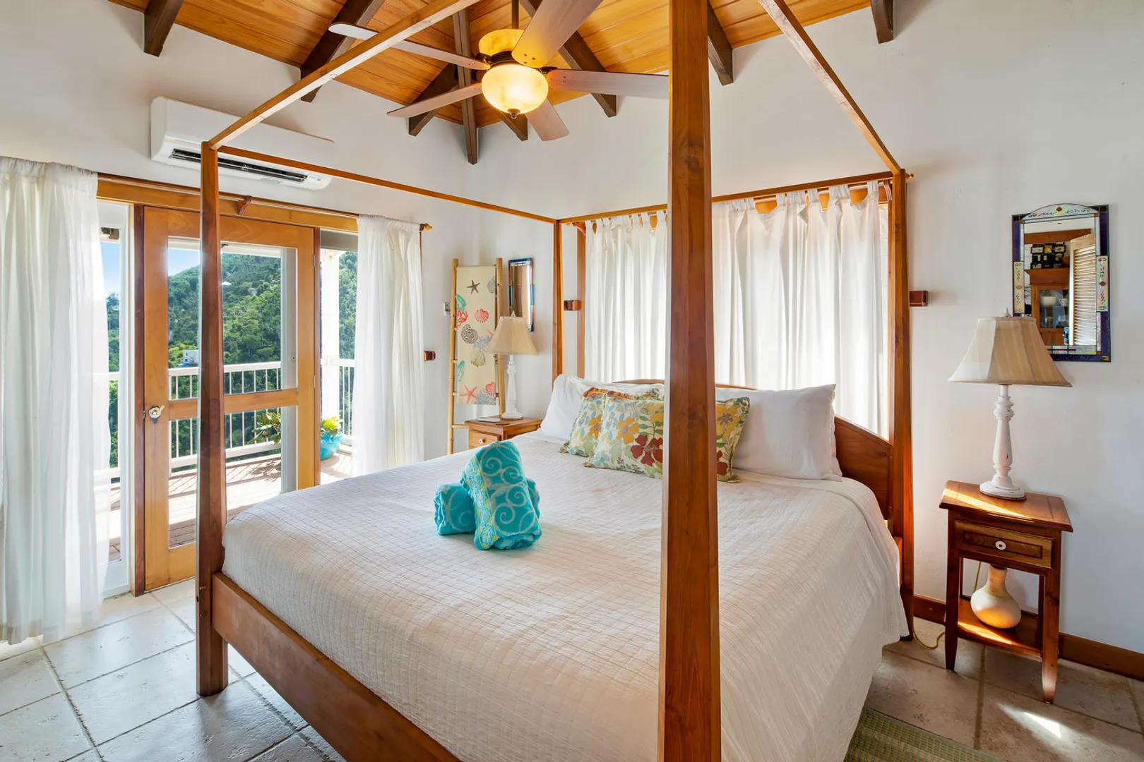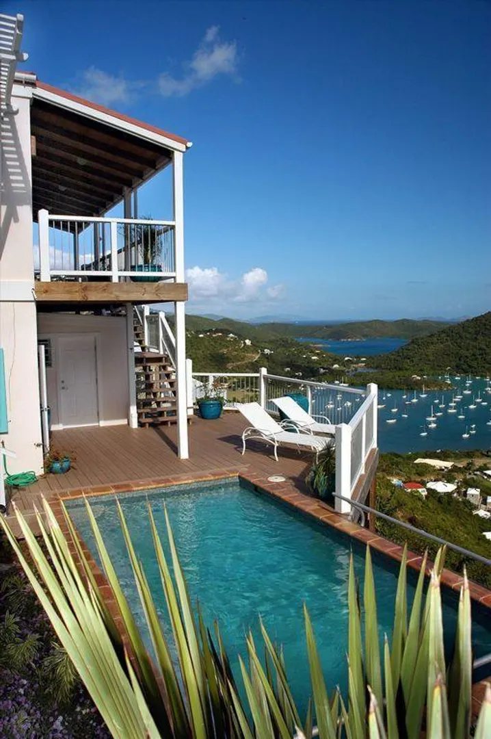 Pink Horses - Professionally designed, 2 bedroom villa located in Coral Bay. An arched entry leads to the outdoor kitchen area with open and covered porches facing the spectacular views. Inside is a comfortable living area and upscale kitchen with breakfast bar. Two bedrooms with baths en-suite are located on separate levels ensure guest privacy. A breezy sun drenched patio and dipping pool complete the picture.