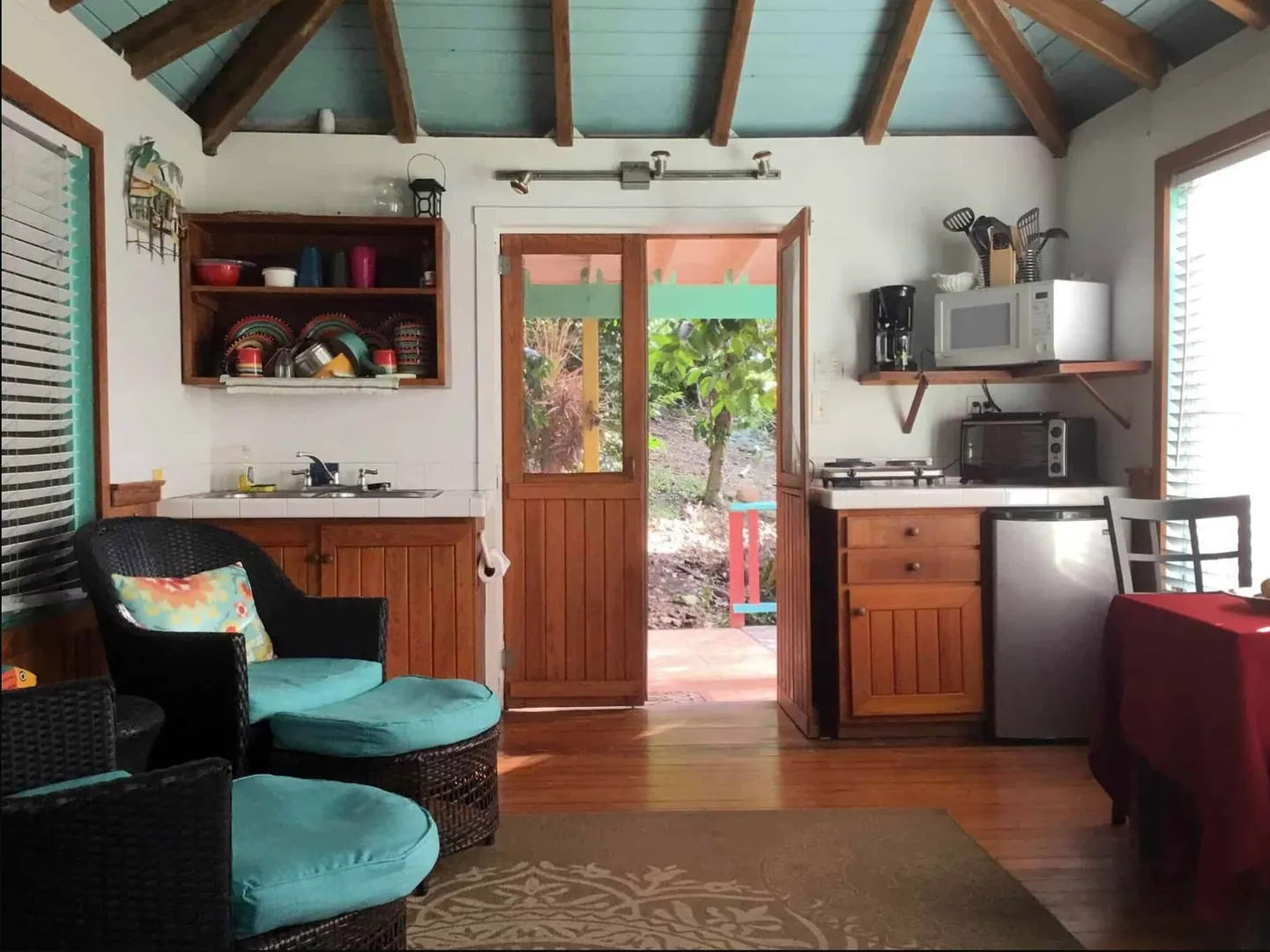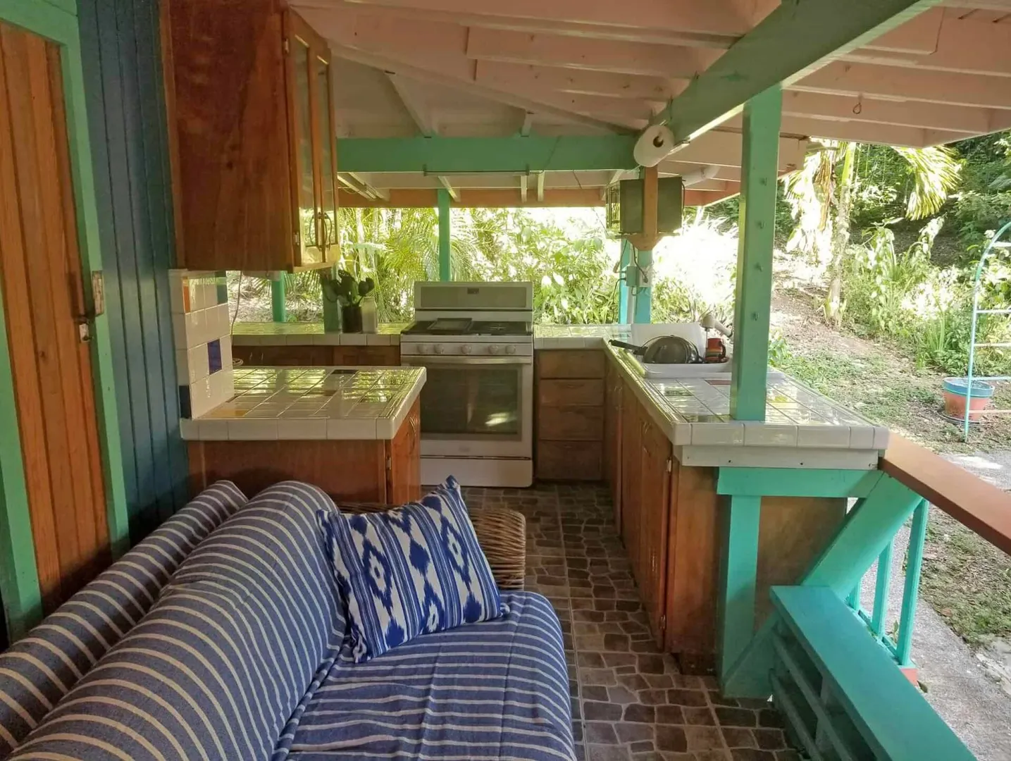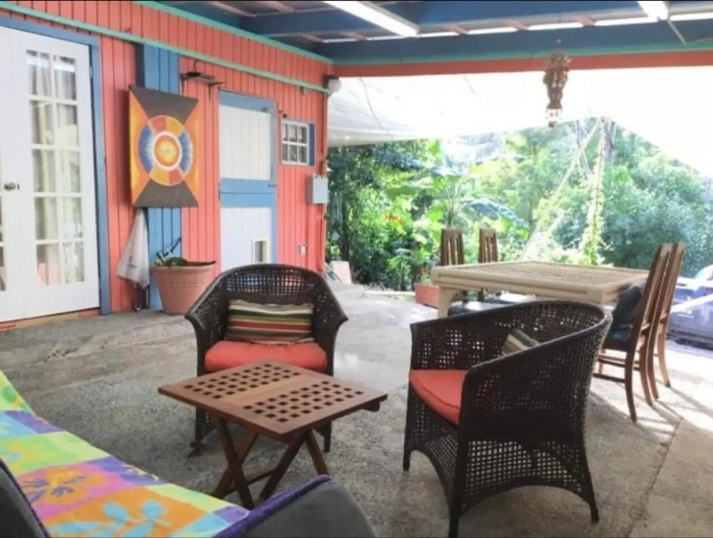 Peaceful Cottages, situated on a private, fenced-in location on Gift Hill. Short drive from Cruz Bay. The compound has two large studio cottages and a one bedroom Keepers Cottage. Successful short term rental. Live on property and rent out the cottages for additional income, or enjoy the entire property privately...the possibilities are many.The Keepers Cottage has a Living/kitchen, bathroom/shower, bedroom, and a workshop (which can covert to small bedroom). Also, a covered workshop at the rear. A second kitchen is located in one of the cottages. Each cottage has outdoor living areas and decks. All surround a peaceful garden area.