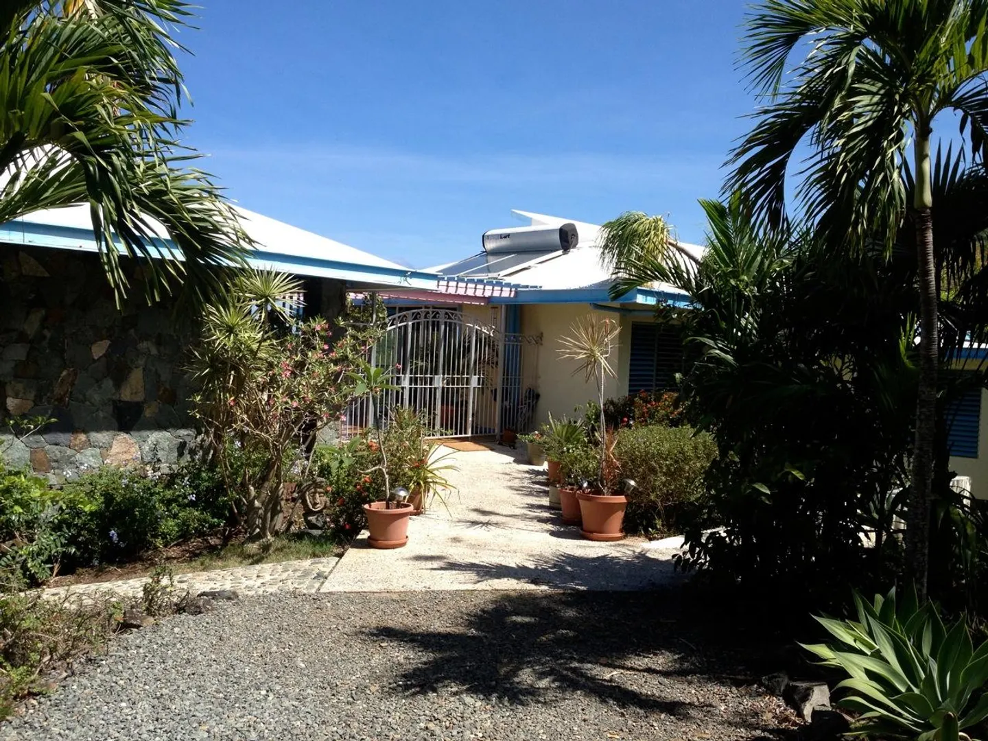 "ENIGHED GARDENS" is a well designed masonry home with stone accent walls in a lovely gated garden setting with spectacular panoramic views of sunsets over Pillsbury Sound to St. Thomas and the island chain. Expansive decks plus plenty of room to add a pool. Separate guest wing for ultimate privacy. Den/office could be 5th bedroom. Flexible floor plan encompasses a one bedroom apartment plus separate studio caretaker's quarters. Convenient to town beaches restaurants and stores. This home is a gem with unbelievable potential. Its being sold "as is" so new owners can move in now but eventually update to add their own decorating flair. Buyers and Seller shall split the Stamp tax evenly.Note: the previous lot 10-6 was reconfigured due to an encroachment on back bound by Sirenusa. The Parcel designations are now 10-5, 10-6 Remainder and 11-1 Estate Enighed. A "bow tie" land trade eliminated the encroachment and the resulting total acreage remains the same.