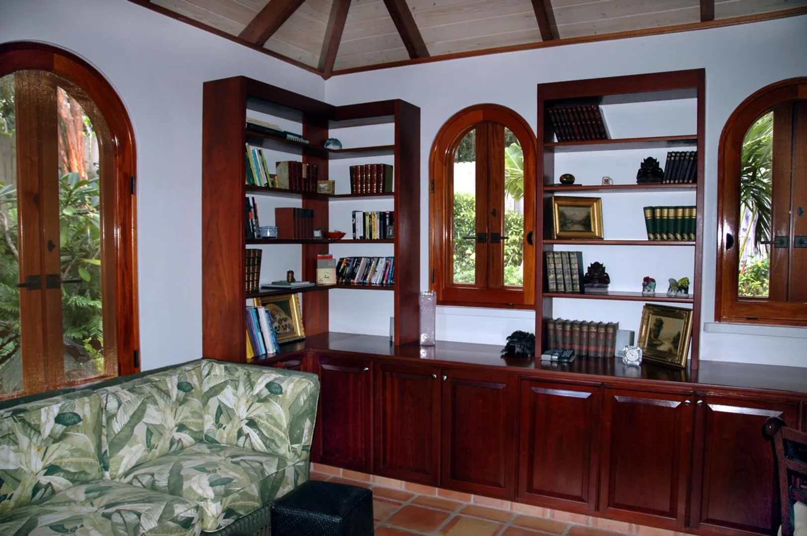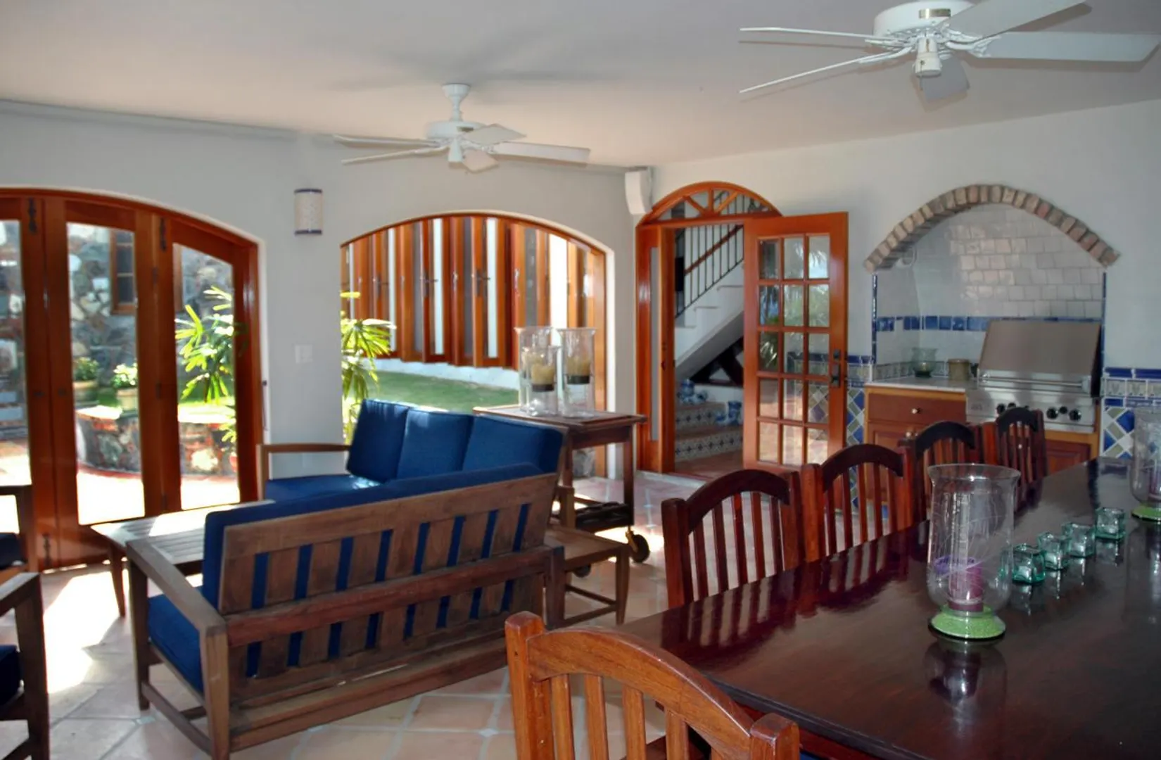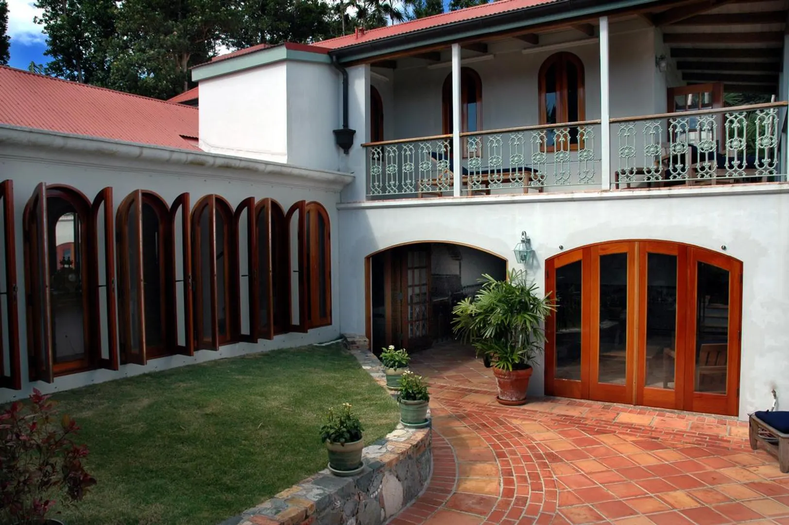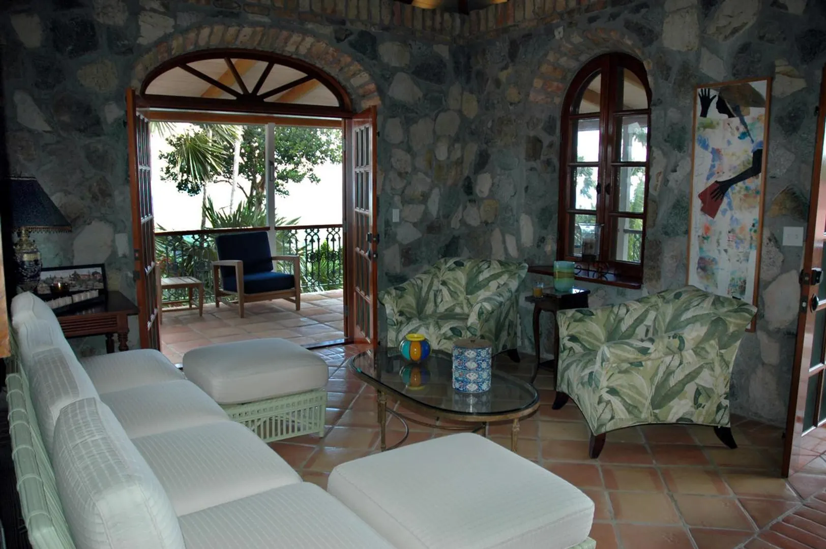 Bordeaux Mountain House enjoys a spectacular mountain top location with cooling breezes, exceptional views, privacy and tranquility, yet this custom designed villa is only a short ride from Cruz Bay, Coral Bay and the north shore National Park Beaches. This gated estate residence features an elegant stone and masonry main house plus a large guest house all in a lush tropical setting with abundant indoor and outdoor living space, an in-ground pool and oversize spa all on level terrain with easy access and ample parking. See SUPPLEMENT and DOCUMENTS for more details.NOTE: THIS SUPPLEMENT ALSO AVAILABLE AS PDF DOCUMENT SUITABLE FOR PRINTING. CLICK ON DOCUMENTS LINK TO VIEW. Bordeaux Mountain House: 10-8-4 Carolina Additional features, benefits and amenities... Custom designed by the builder as his family's private, gated compound - this home has a warmth and appeal that sets it apart from the typical vacation villa. Wooded site, gentle terrain, offers tranquility and privacy with expansive views of Coral Bay, the east end of St. John, the Sir Francis Drake Channel and many of the British Virgin Islands, all from an elevation of nearly 1000 ft. Conveniently located in the center of the island, about 15 minutes from Cruz Bay, 10 minutes to Coral Bay and about a 10-15 minute drive to the National park beaches on the north shore. Beautiful hand crafted native stone work, accented with Chicago brick, is used tastefully throughout much of the main house and for the lower level of the guest cottage. Gourmet kitchen with Viking gas stove, polished granite counter-tops, stainless steel appliances, custom cabinets, microwave, built-in wine cooler. Second great room with dining and living areas on the lower level adjacent to the pool deck. Custom mahogany doors, windows and cabinetry throughout the main house. Stone hearth in the upper great room is a fully functional fireplace for cool winter evenings. Wraparound covered verandahs with decorative wrought iron railings. All rooms in the main house, guesthouse, pool, sundeck and outside areas are wired for sound (Bose speakers). AM/FM, satellite radio, 6-disc CD player and Ipod connection available. Heated pool and spa with expansive tile deck cool to the touch and low maintenance. Fully equipped den/office/media room could be converted into another bedroom. Separate guest cottage with two bedrooms up and full bath; Lower level recreation room could become another full sized bedroom. Addition of full bath on existing slab is quite feasible.