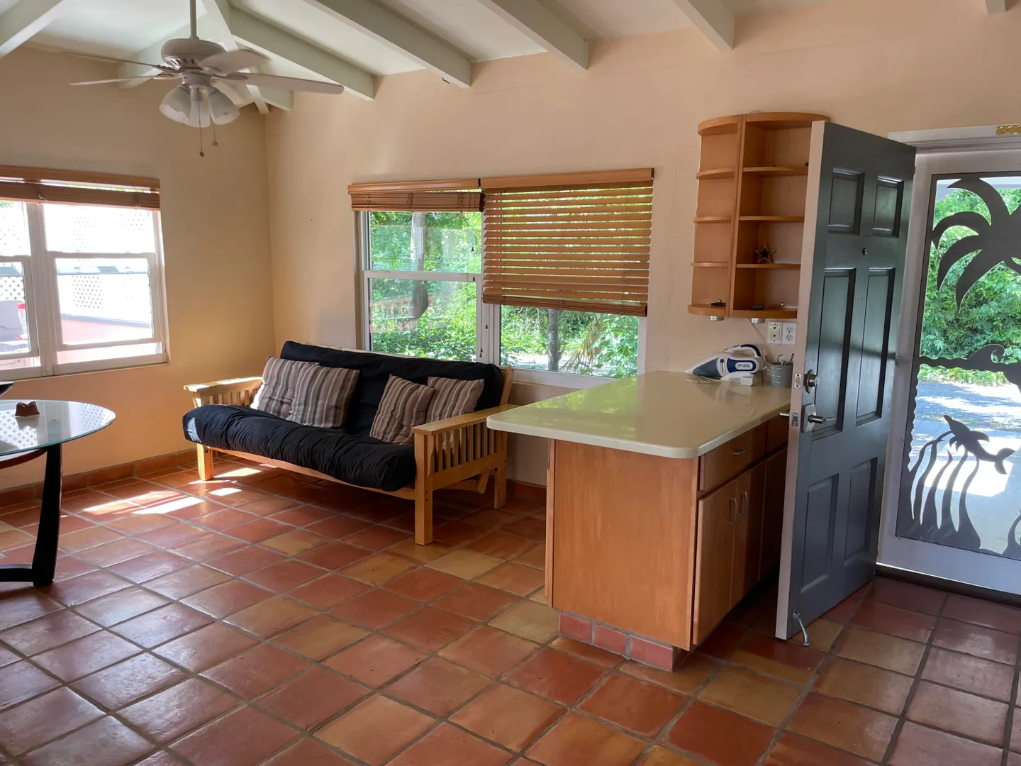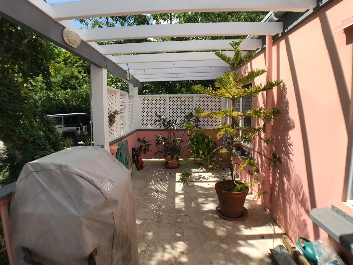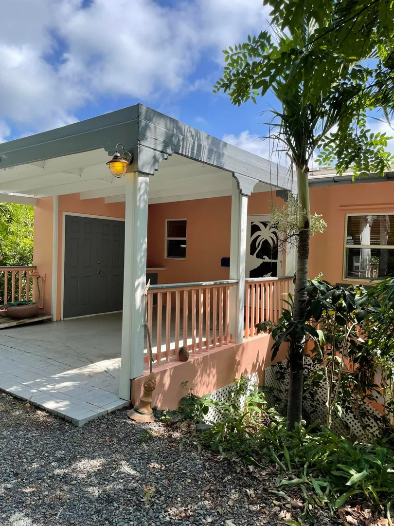 This picture perfect jewel box of a home has been modernized, updated and lovingly cared for by the owner, and it shows! Located just a short walk from the Chocolate Hole beach on a street with no through traffic, the peaceful setting on a large wooded and lushly landscaped lot is pristine. The solid masonry one bedroom home has a flexible layout for creation of a second bedroom as well as conversion of the nearby storage shed into an additional living unit. Covered, screened and open porches wrap the front and side for comfortable outdoor living and dining. Freshly painted with 36 solar panels, net metered power and a diesel backup generator it is move in ready.