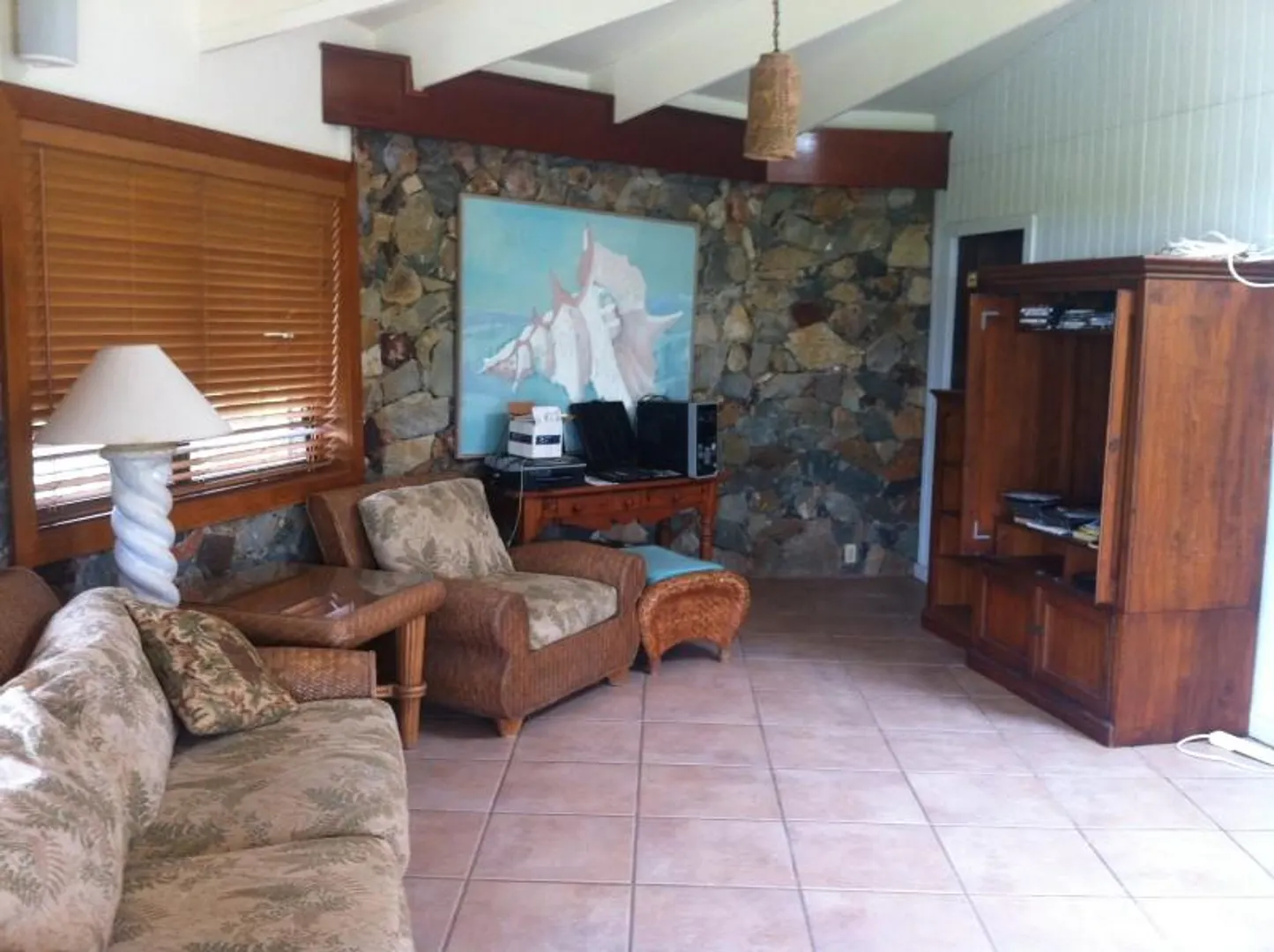 Income producing 2 unit in Chocolate Hole. Flexible layout allows for 2 large units (4x3.5 and 1x1) or 2 units plus servant's quarter. Offers a large flat yard with mature trees, great gardening spot, lots of wildlife with plenty of room for expansion. Walking distance to Chocolate Hole Beach. Charming island stone incorporatedthroughout, including outdoor shower in private master suite. Skylight in spacious upper level great room surrounded by numerous sliding glass doors make it bright and airy for your entertaining pleasure. Large covered tiled decks surround this octagonal three story home. 12'x24'storage shed with water collection on property. Buyer to pay stamp tax.