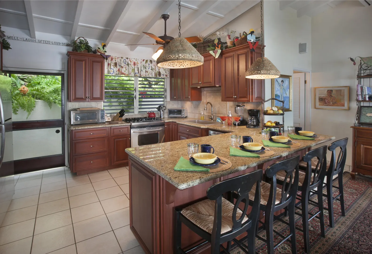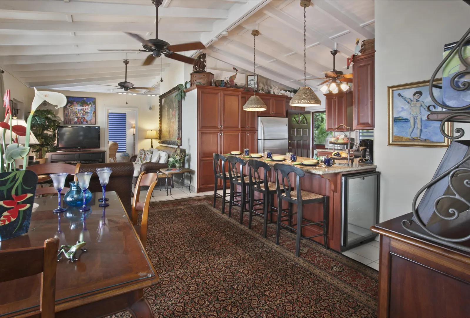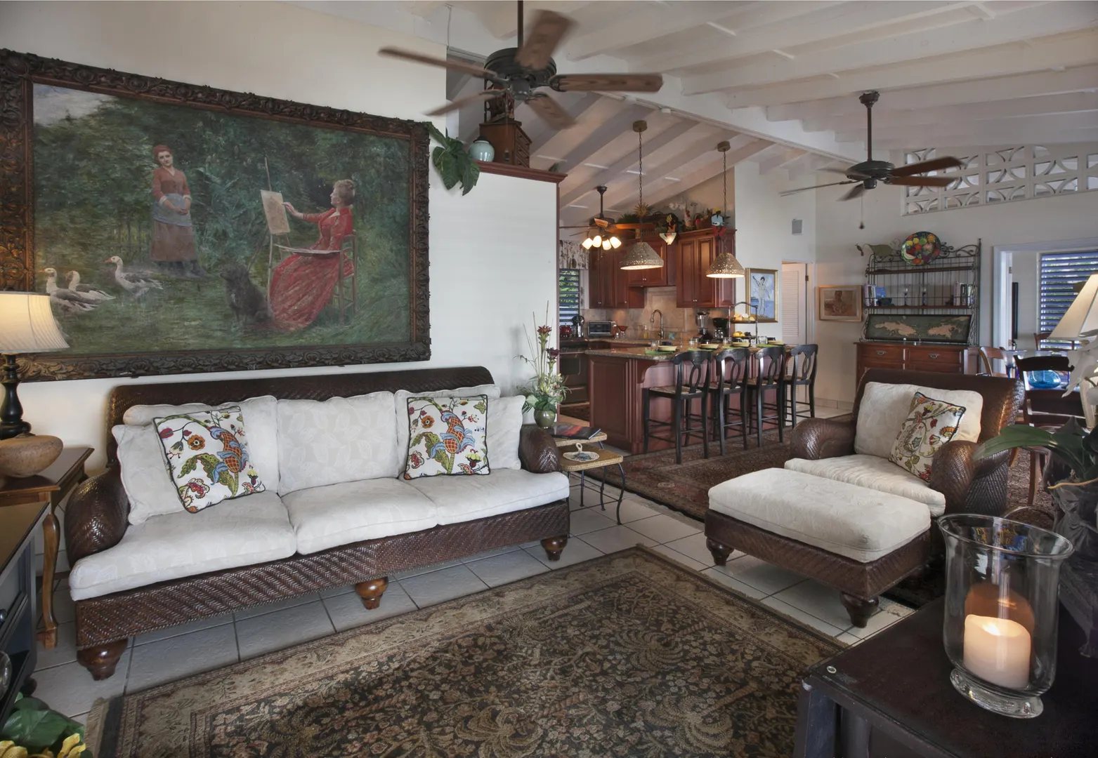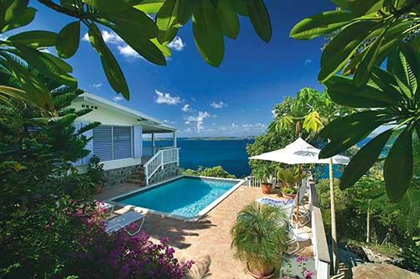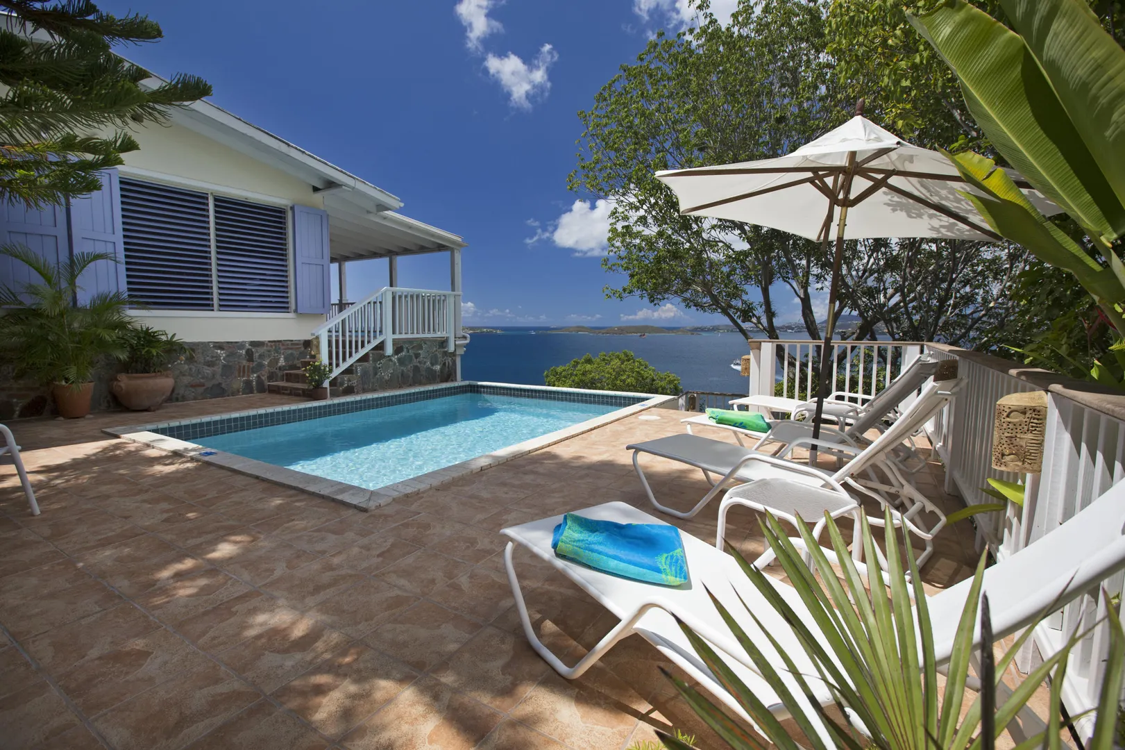 SeaCruz is a fabulous short term rental villa which overlooks the Caribbean Sea and St. Thomas with stunning sunsets and ocean views. A spacious gourmet kitchen with custom cabinets & granite counter tops. Tastefully remodeled marble bathrooms and a tiled & covered grand veranda perfect for outside entertaining. Large hardwired generator & extensive tropical landscaping. The inviting 13'X17' swimming pool & surrounding tiled decks offer gorgeous 180 degree vistas of Pillsbury Sound to St. Thomas. The lower charming two bedroom/one bath apartment features a tasteful gourmet kitchen with custom cabinetry and is beautifully appointed with many special features. One of the lower bedrooms has been converted to an office. SeaCruz has a very impressive short term rental history.
