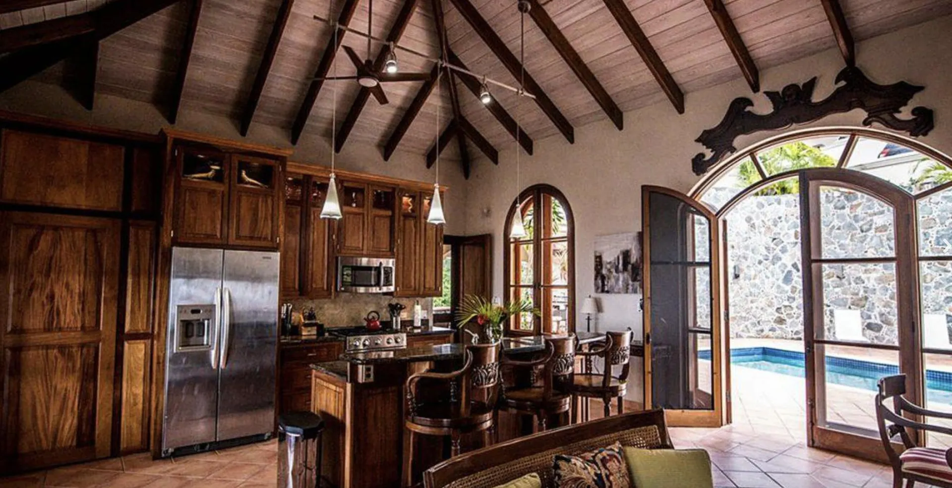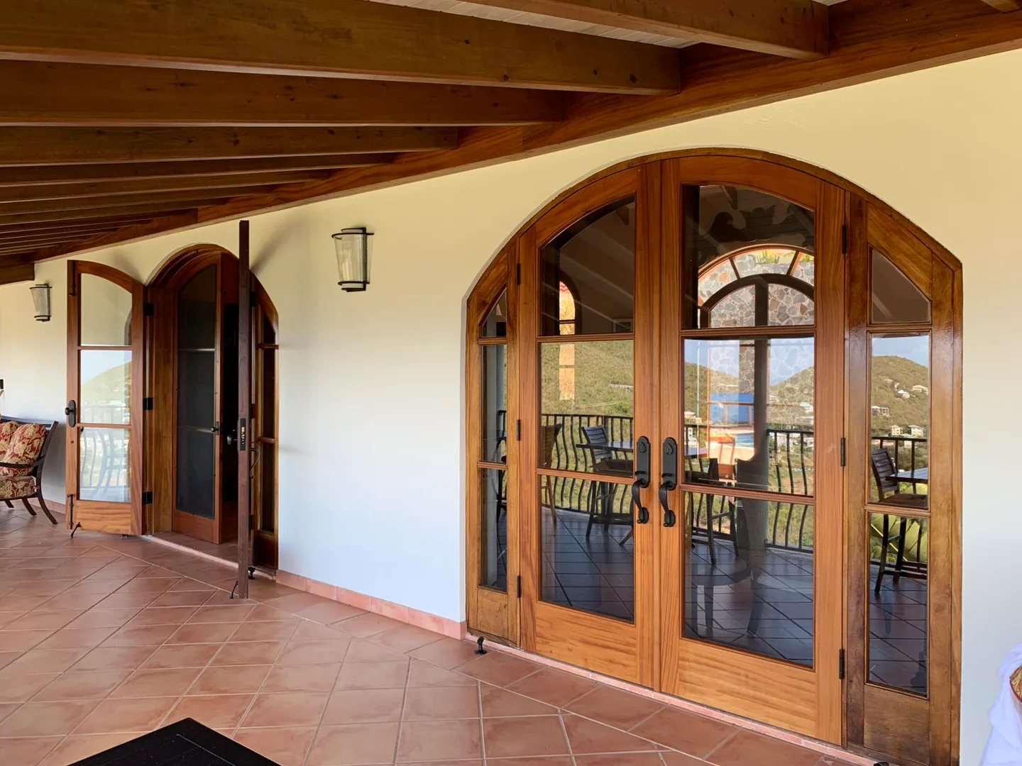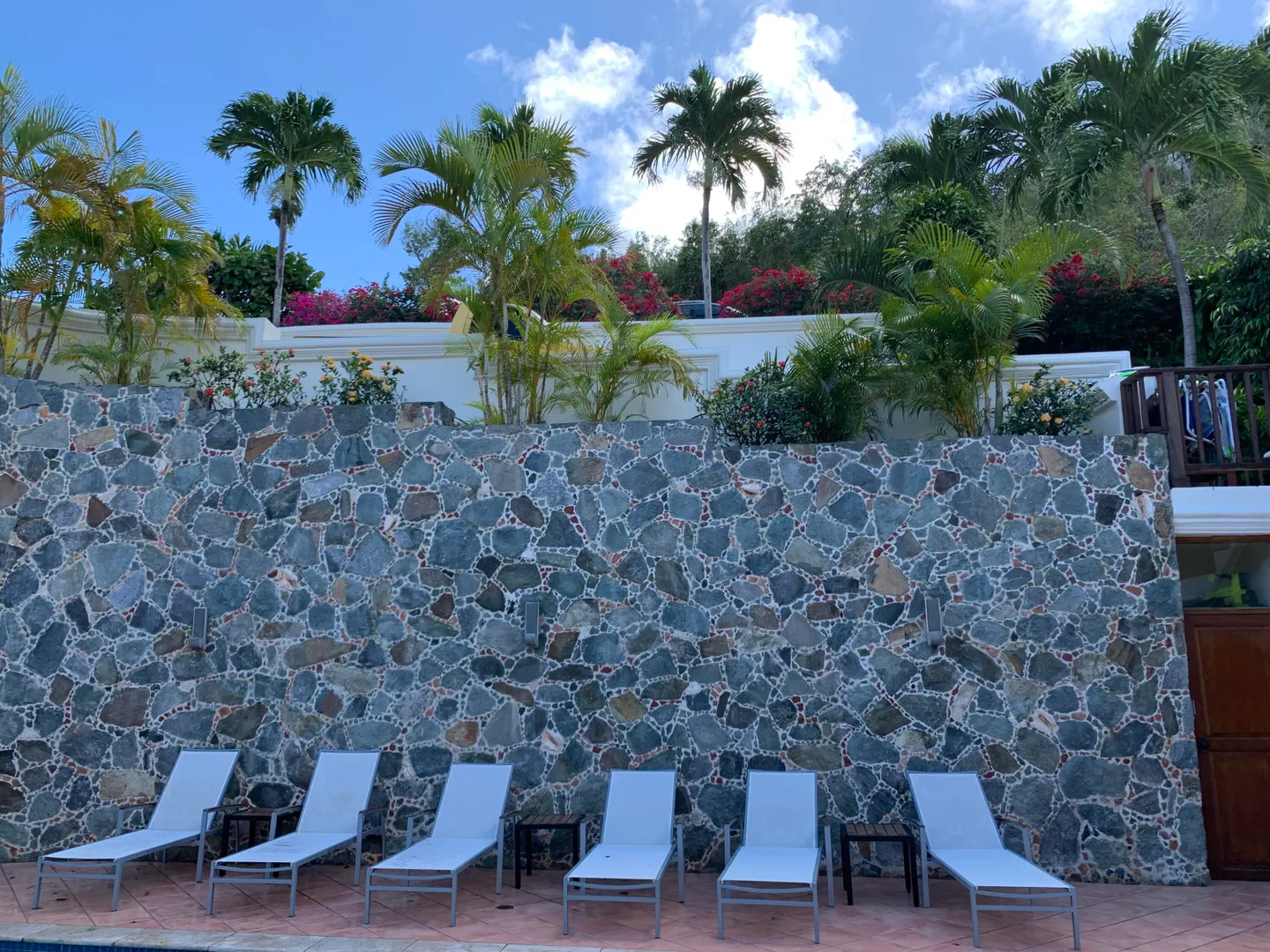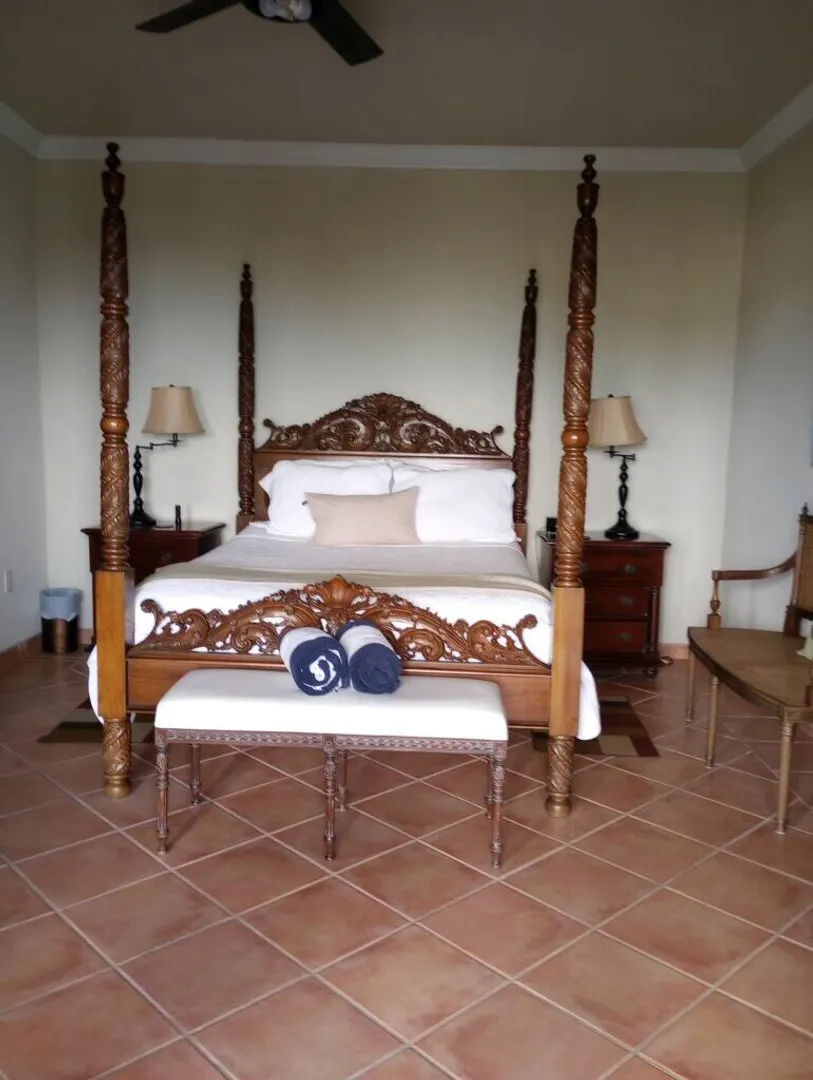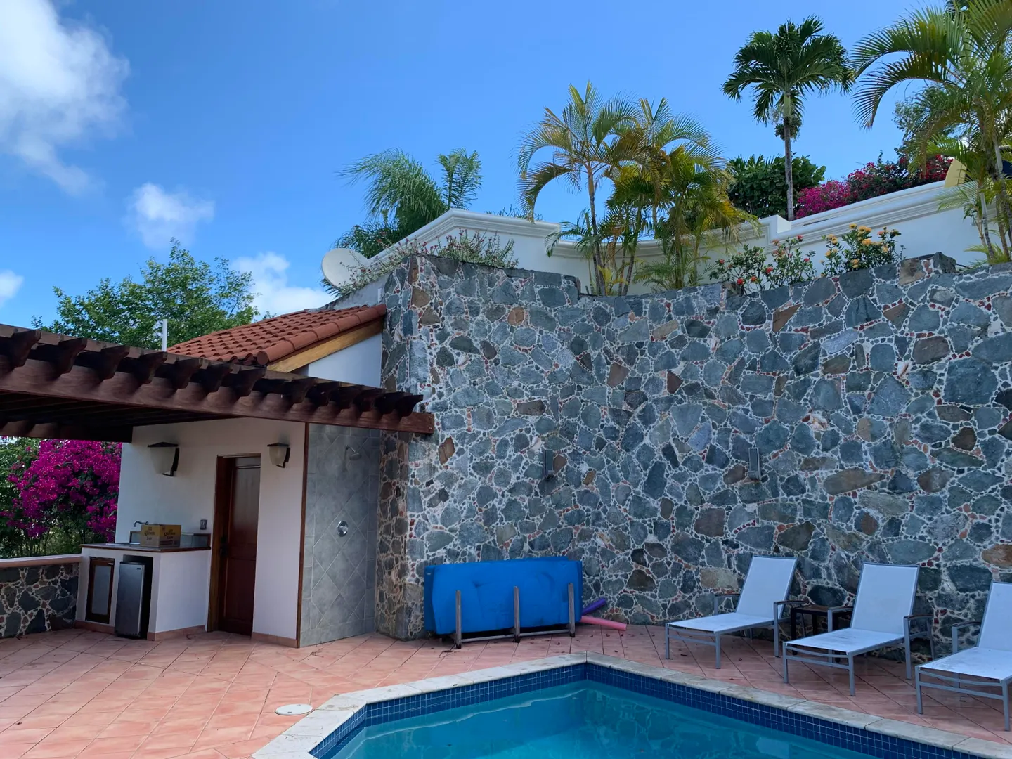 Solid masonry two story pool villa with panoramic ocean and island sunset views. High quality construction with custom mahogany doors, windows and cabinetry throughout. Four very private master suites on two levels accessed by interior staircase, face the views. Spacious covered verandas on both levels, hot tub and sun deck face the views to the West for spectacular sunsets! Covered, breezy dining pergola, pool and patio on main level offer a respite from the afternoon sun. Paved access roads and underground utilities. Plenty of room for additional units or separate guest house with it's own access.
