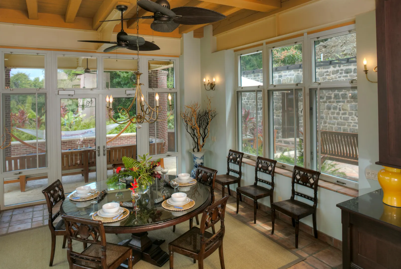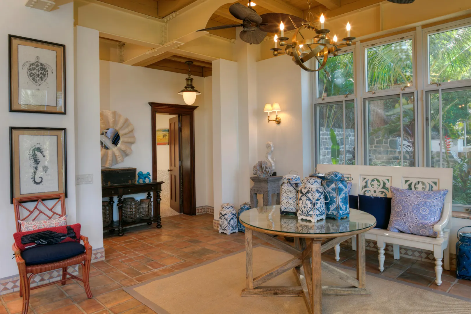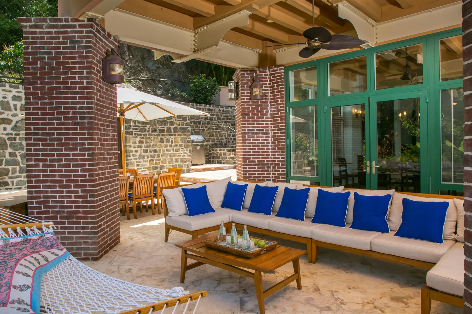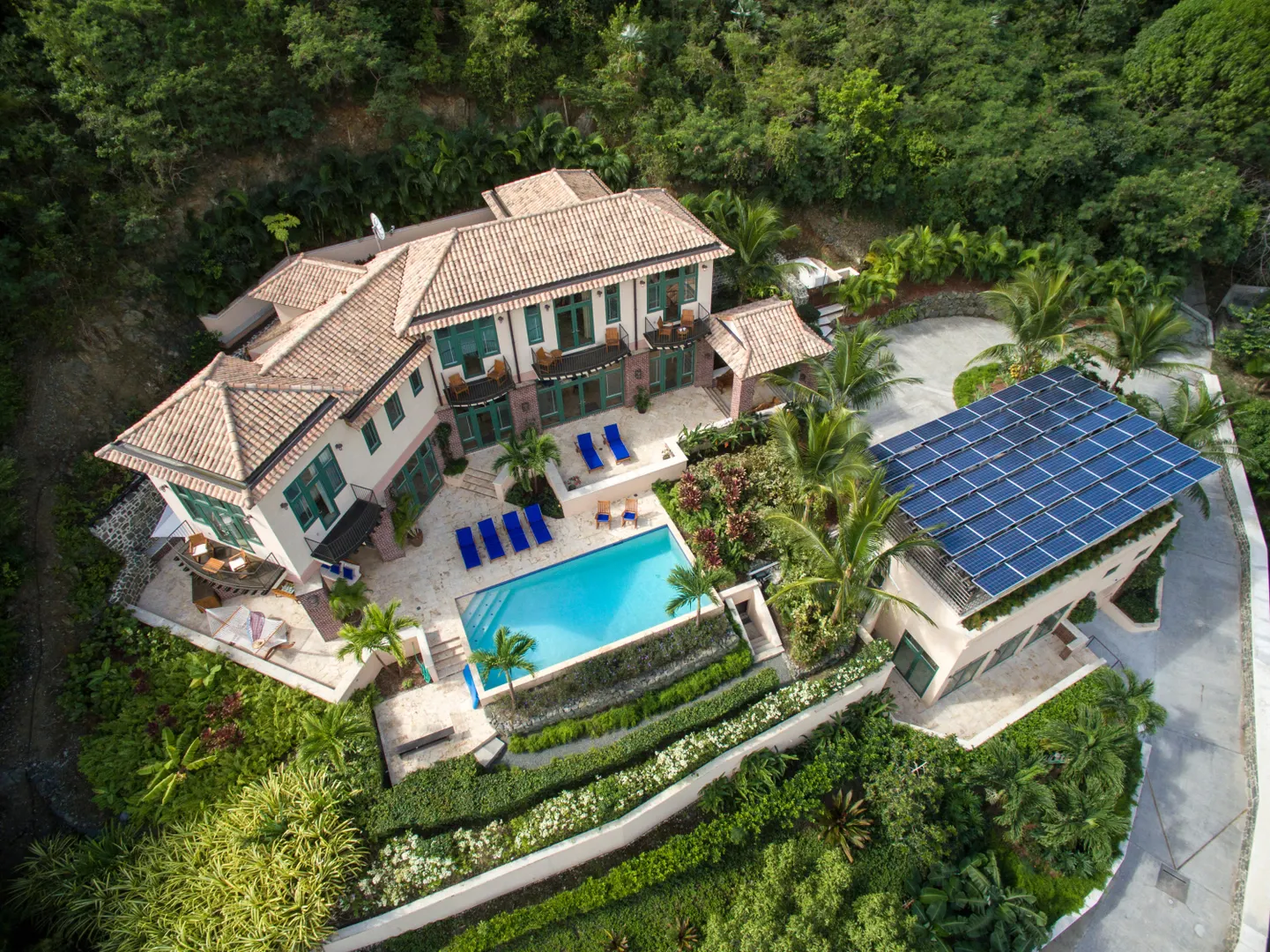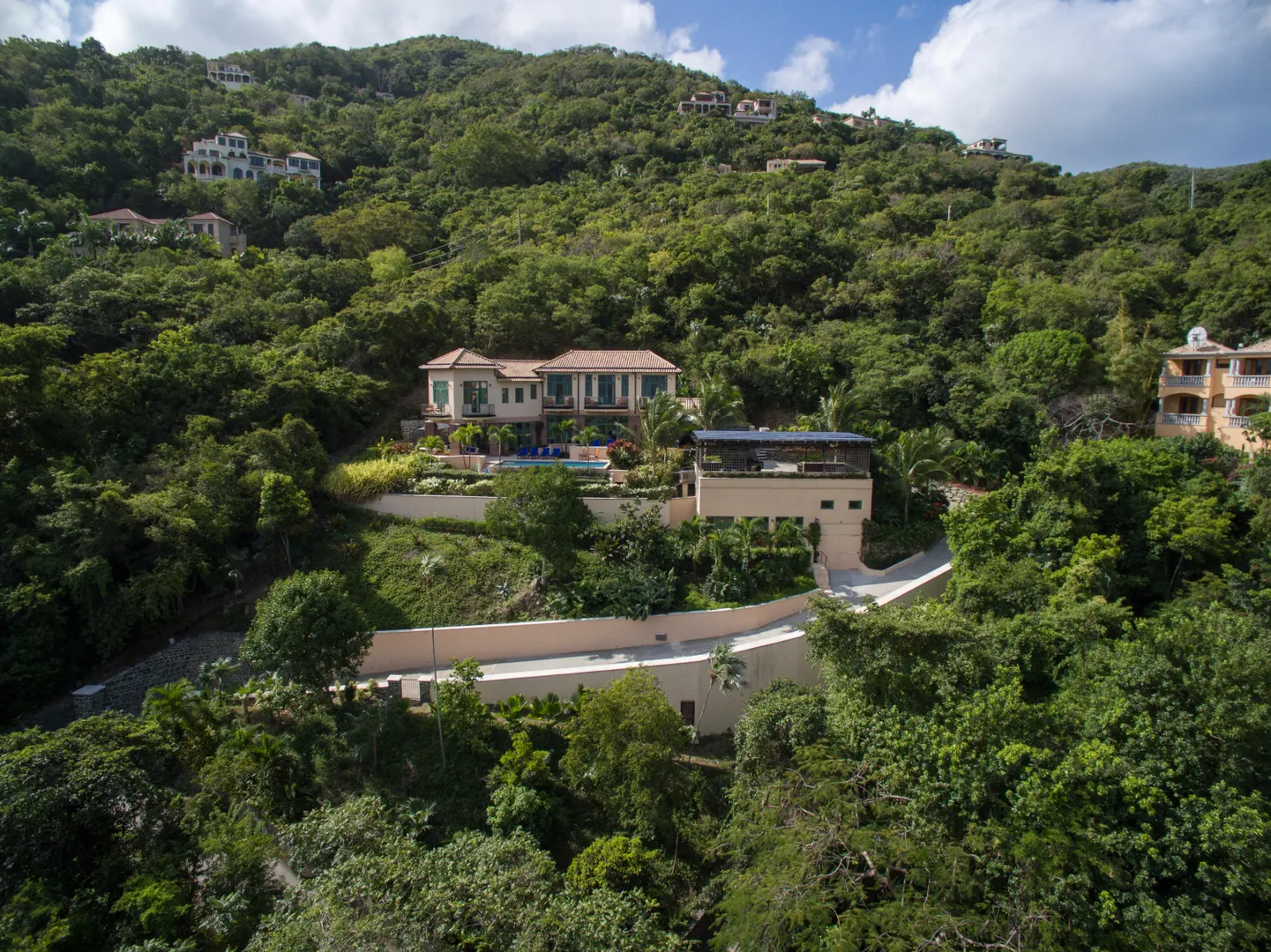 Welcome to your oasis on the North Shore. Just a short walk to the exclusive deeded access white sandy beach in the gated neighborhood of Peter Bay. Enjoy days relaxing in the comfortable outdoor lounge areas surrounding the large heated pool w/ stunning water views to the BVI. After sunning at the beach or pool enjoy the central AC, dish TV and fully loaded chef's kitchen. The main house has 4 BR, 4.5 BA inside and a full bath by the pool. There is a very private separate apt 1 BR & 1 bath, covered carport, a 1 car garage, indoor boat storage and a generator. Beautiful landscaping comes w/banana, mango, lime, & coconut trees. New solar panels recently installed. The beautiful rugged post and beam construction is built to withstand any weather conditions.
