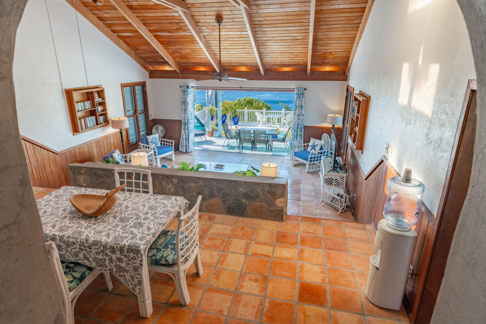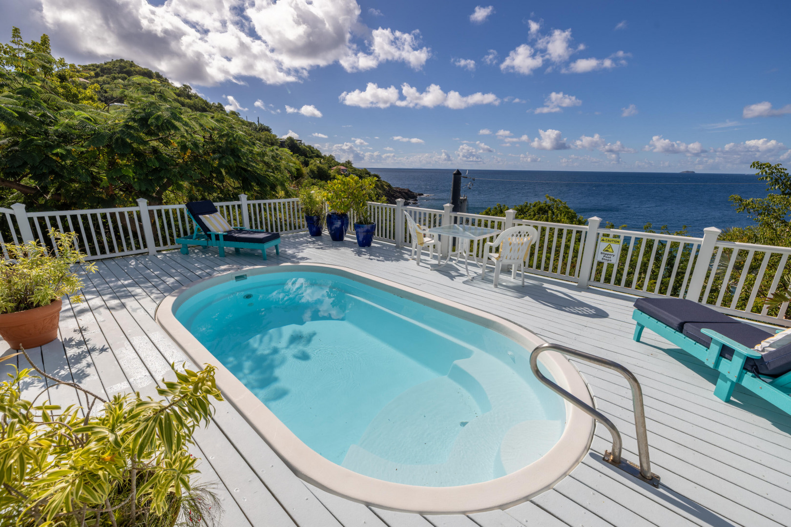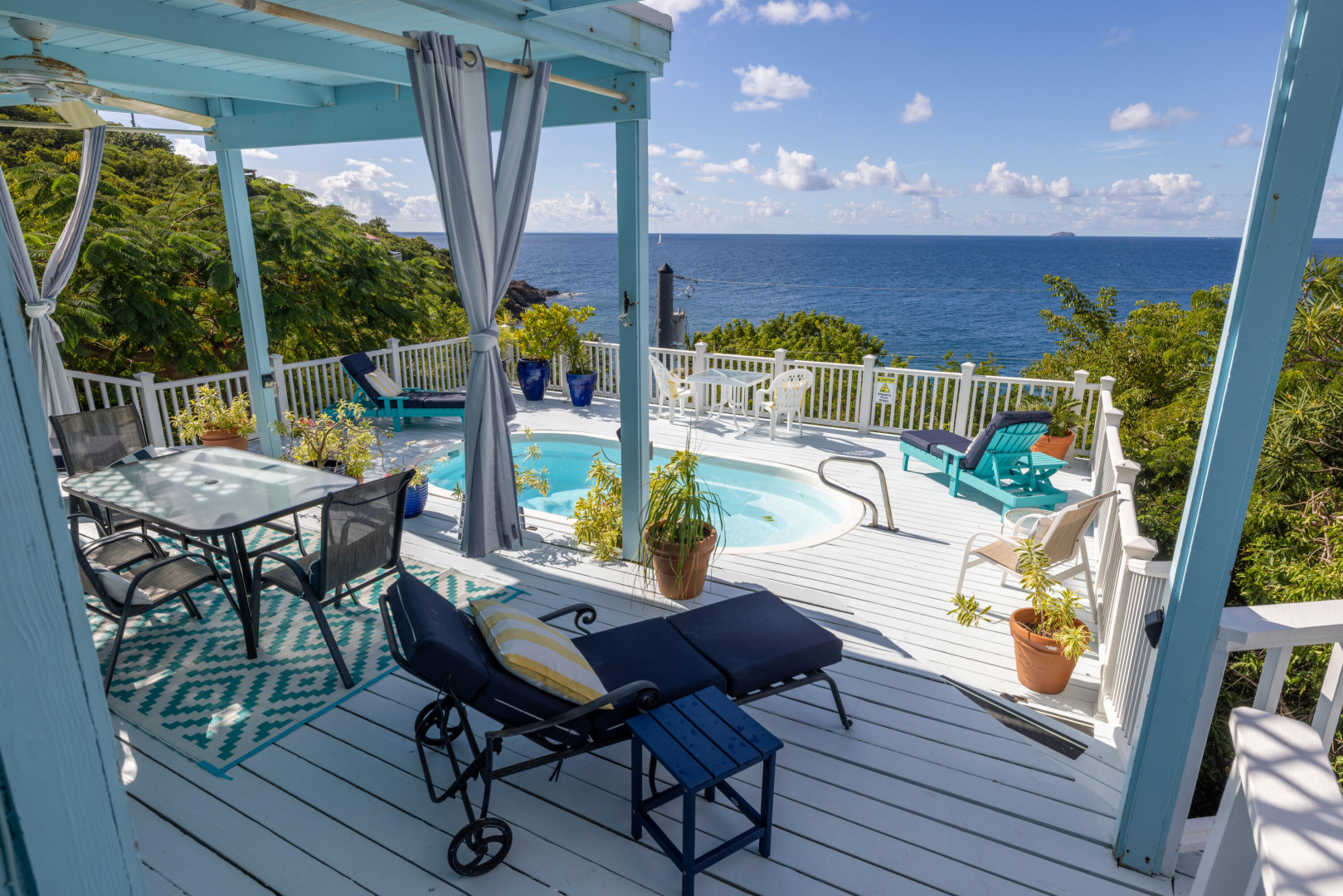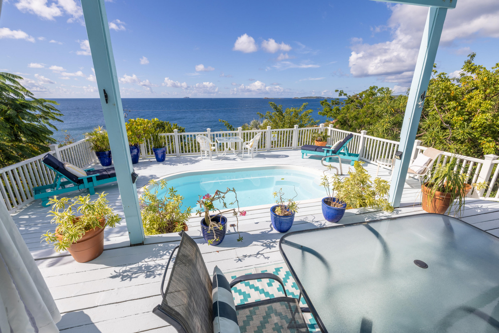 Enjoy the iridescent greens and blues of the Caribbean Sea from every area of this light and airy home. Hear the gentle lap of waves on the rocky beach nearby. This two bedroom home with pool and spa is sited on a corner lot for maximum privacy. Walk to two nearby beaches at Hart Bay and Chocolate Hole for excellent snorkeling, swimming and beach combing.