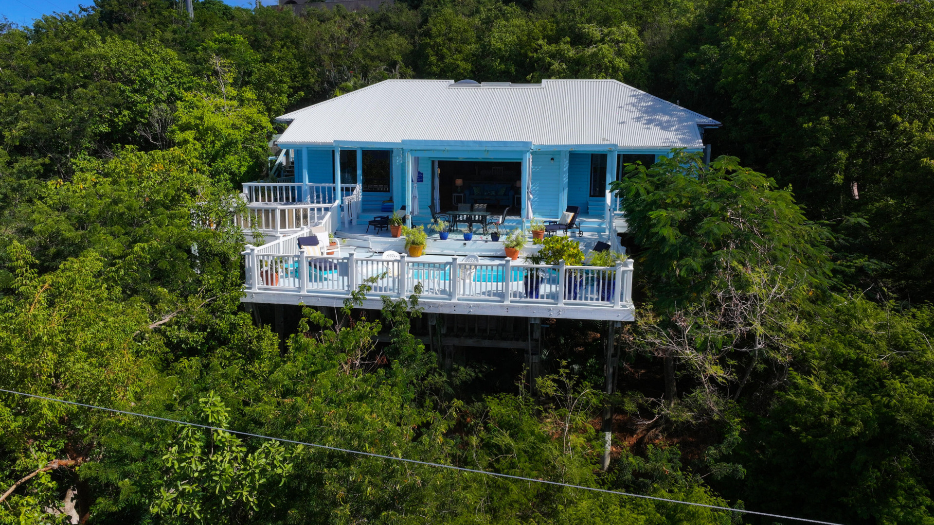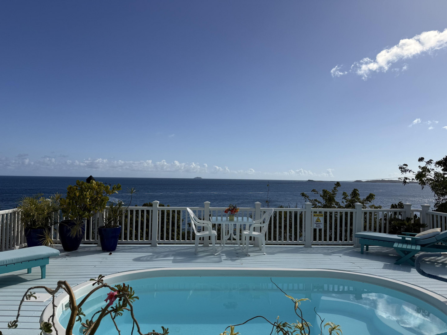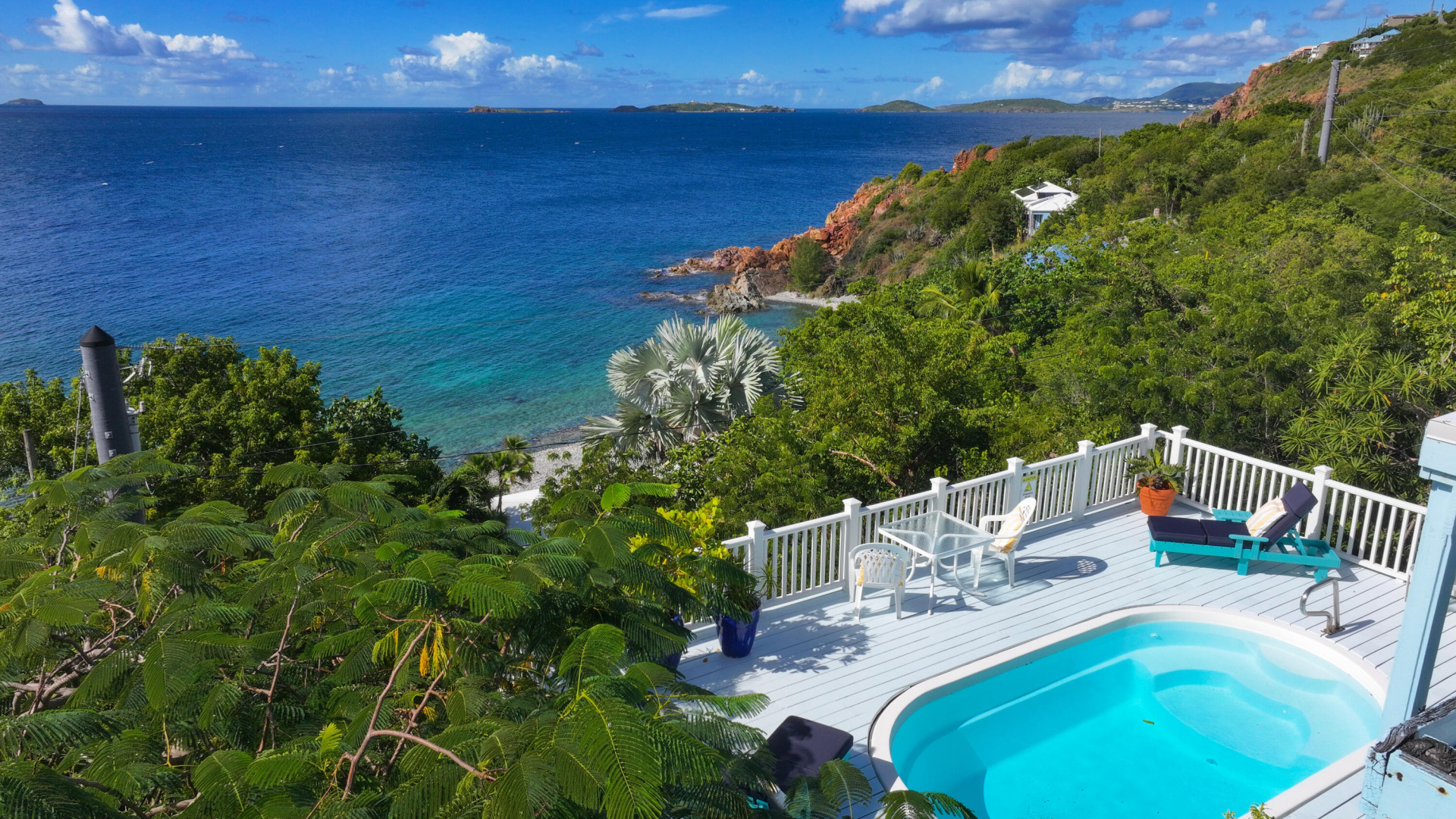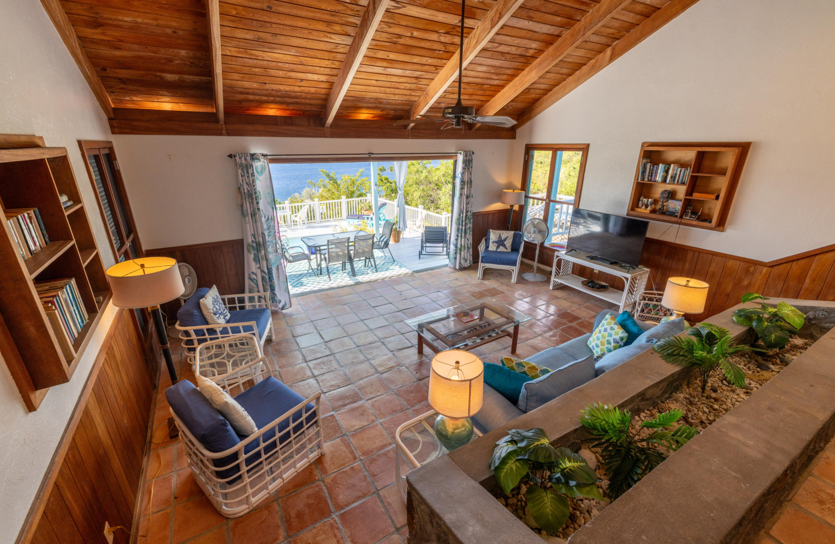 Enjoy the iridescent greens and blues of the Caribbean Sea from every area of this light and airy home. Hear the gentle lap of waves on the rocky beach nearby. This two bedroom home with pool and spa is sited on a corner lot for maximum privacy. Walk to two nearby beaches at Hart Bay and Chocolate Hole for excellent snorkeling, swimming and beach combing.