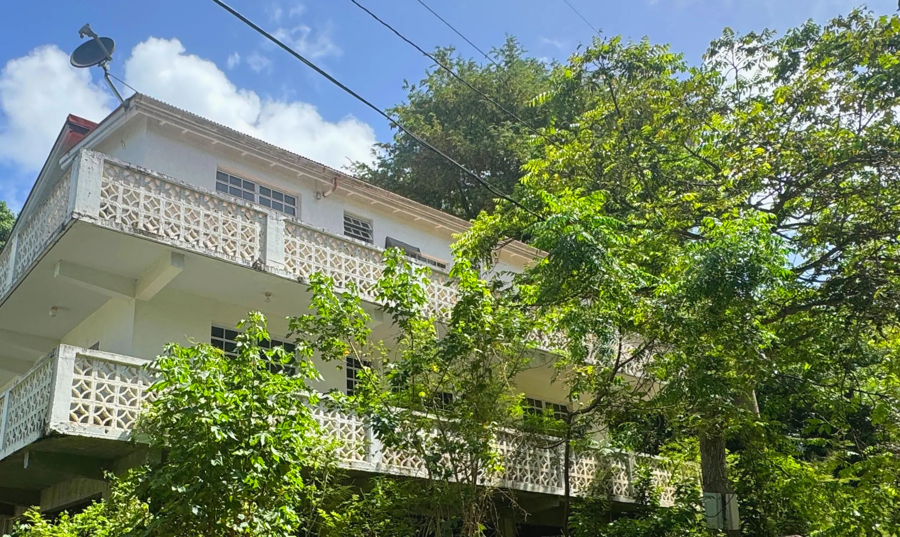 Rare opportunity to live, own rental property, or both, in Cruz Bay, St. John. Two story building in residential neighborhood within walking distance of Cruz Bay. 2 separate apartments each with 4 bedrooms and 2 baths, kitchen, living room, wide hallway, wrap around balconies, light and windows in every room. Tiled floors and bathrooms. Cathedral ceiling upstairs apartment. Short walk to Starfish Market and laundromat. Lush foliage. Live on both floors, live on one and lease the other, or lease both floors.This is a rare opportunity to own property in Cruz Bay, where there is a limited amount of residential property for sale.