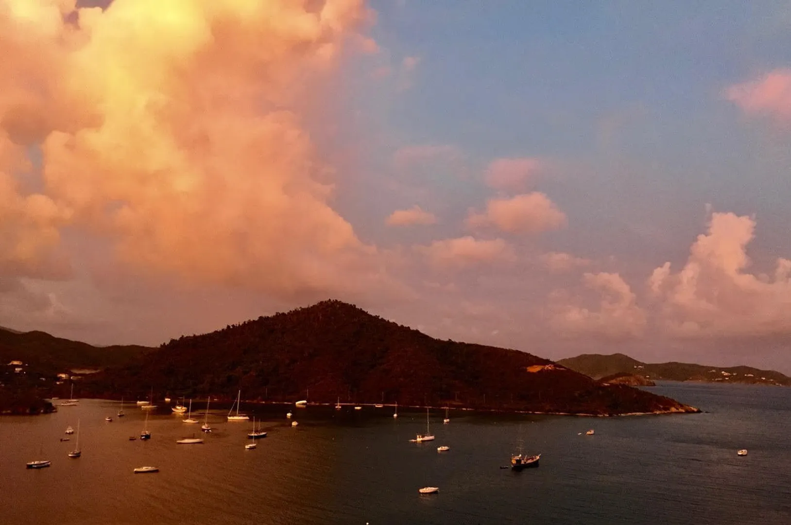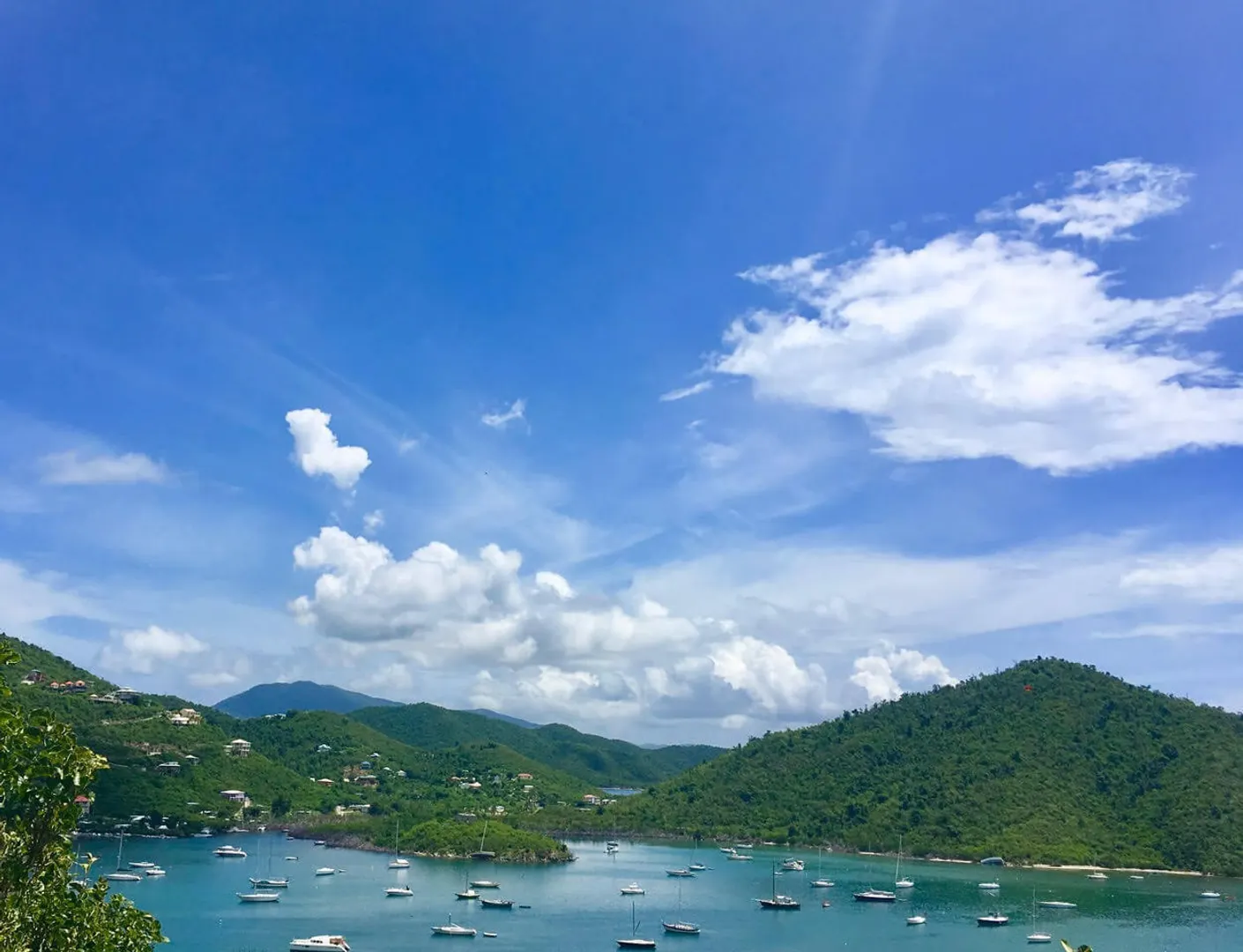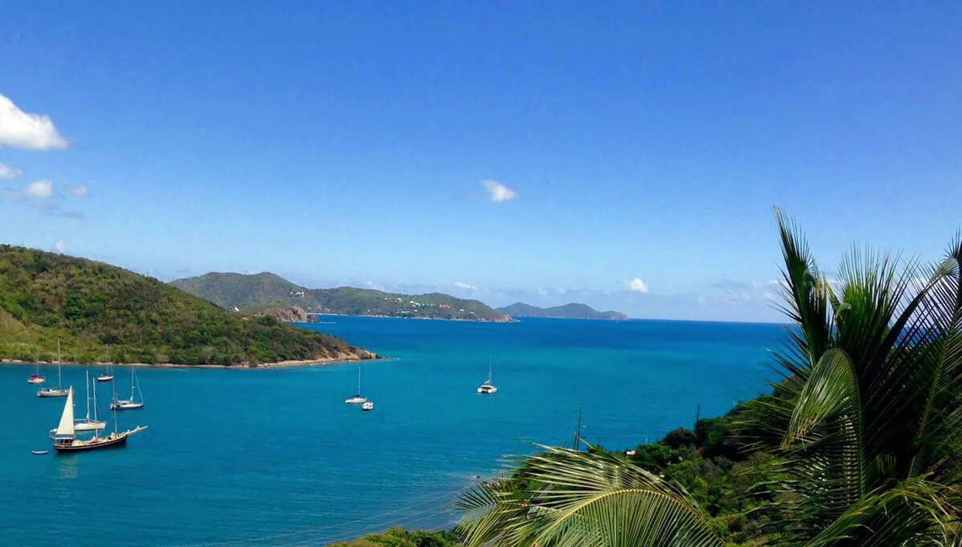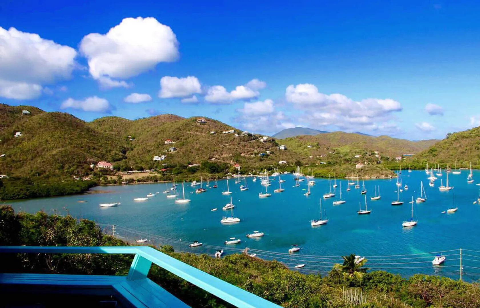 - View: British Virgin Islands, Caribbean, Down Island, East/sunrise, Harbor, Mountain, Panoramic, Valley