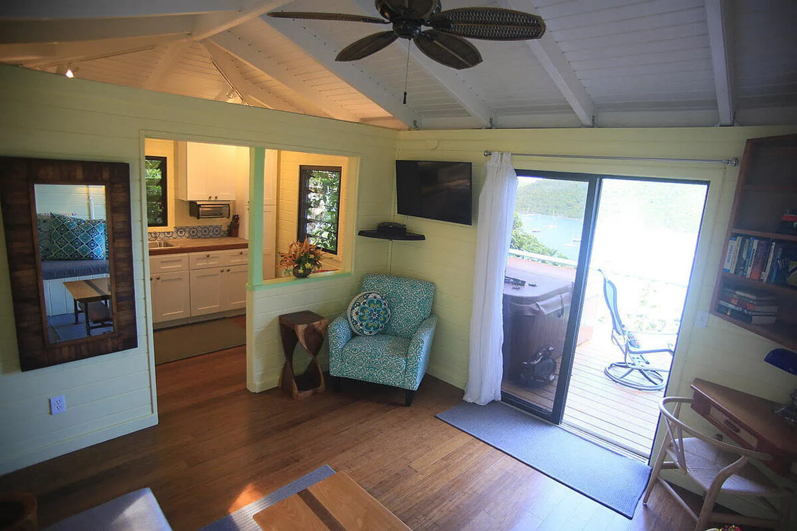 Two charming cottages, Tortuga and Lily, renting separately on 1/2 acre lot just above Coral Bay Harbor. Tortuga consists of 2 bedrooms and 1 bath, a private front patio accented with local stone work and tropical plantings along with a back deck with a hot tub offering great views of Coral Bay Harbor. Lily, a one bedroom cottage, tucked in and not far from Tortuga yet very private, also offers a hot tub deck, a tropical outdoor shower, hardwood floors and cute built-in's. Both cottages offer air-conditioned bedrooms and separate washer and dryer. The structures are nicely connected withlandscaped foot paths. Off-street parking and nice privacy fence further compliment these cottages. Buyer to honor allconfirmed rental reservations. Buyer and Seller to split stamp tax.