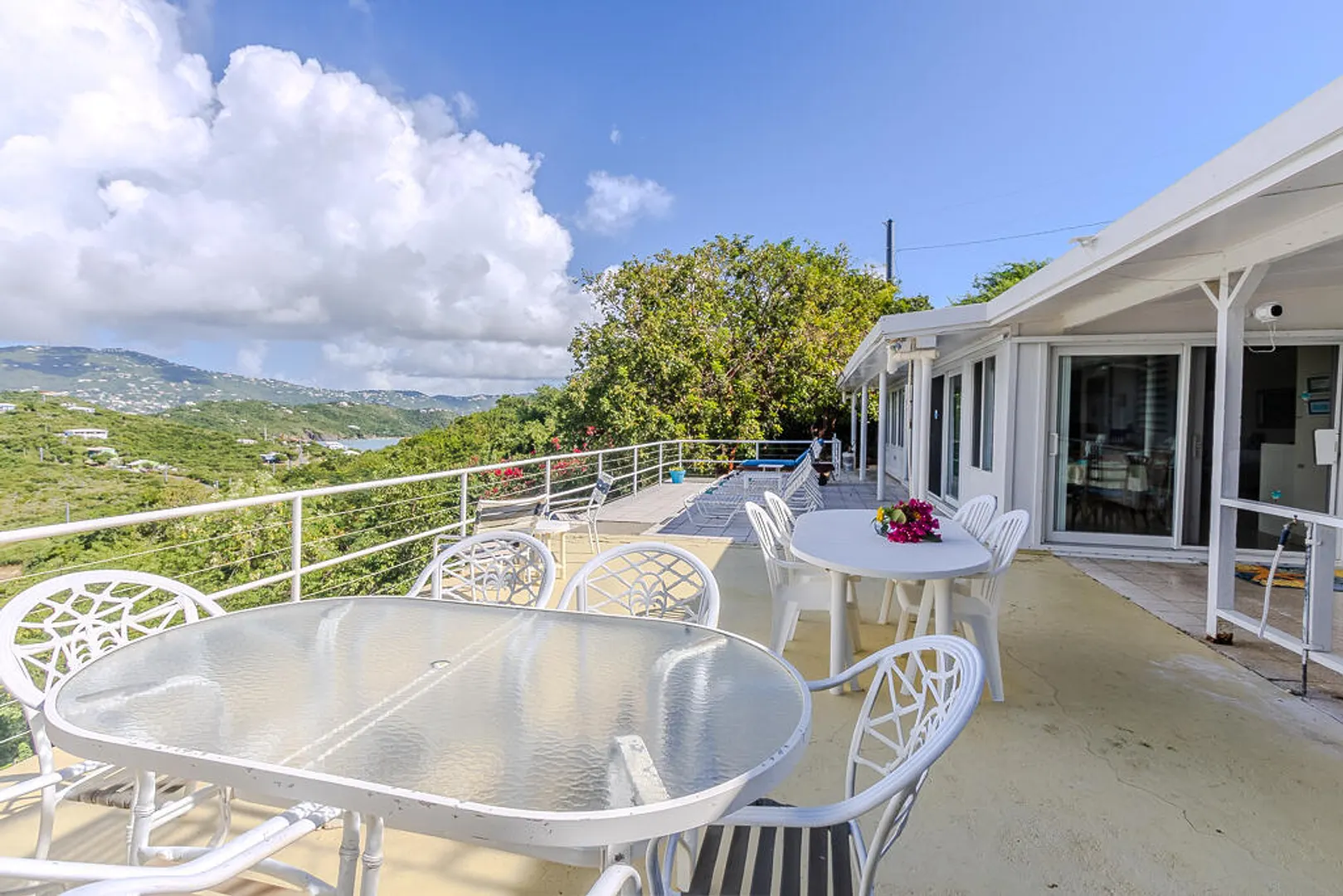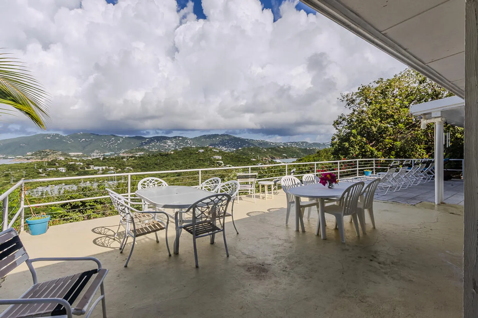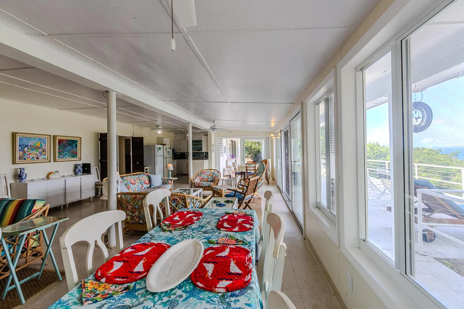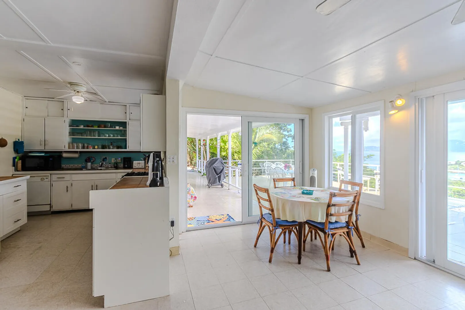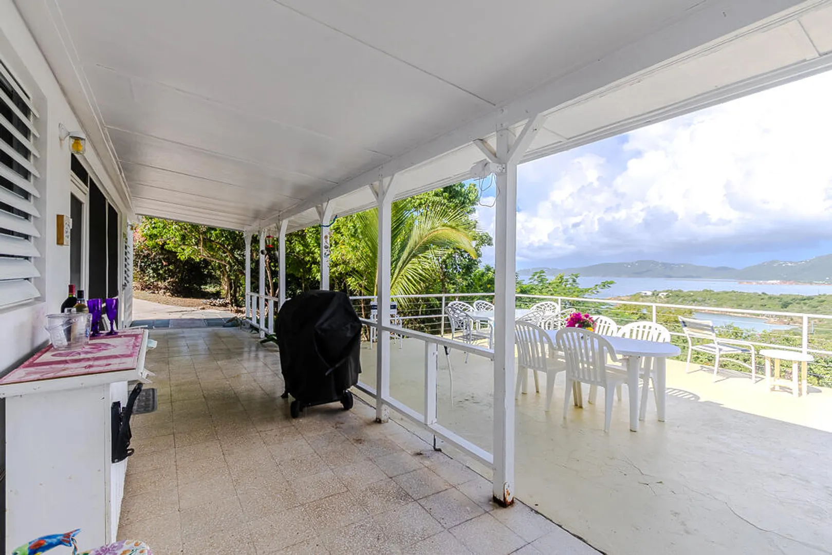 Nestled on the serene Water Island, Casa Blanca is a 4-bedroom, 3-bathroom retreat that blends rich history, versatility, and relaxed island living--an exceptional value on one of the Caribbean's best-kept secrets. Originally built as a U.S. Army barracks, the home carries a distinctive sense of character while being thoughtfully adapted for modern comfort.Enjoy sweeping views both day and night, with beautiful vistas and the glowing lights of St. Thomas in the evening. The expansive main living area opens seamlessly to a large deck--an ideal setting for hosting unforgettable gatherings, sunset dinners, and easy island entertaining.All living spaces are conveniently located on one level, including a private screened-in suite with its own separate entrance, offering flexibility for guests or extended stays. A covered carport provides direct access through the fourth bedroom, a practical and much-appreciated feature for everyday island life.