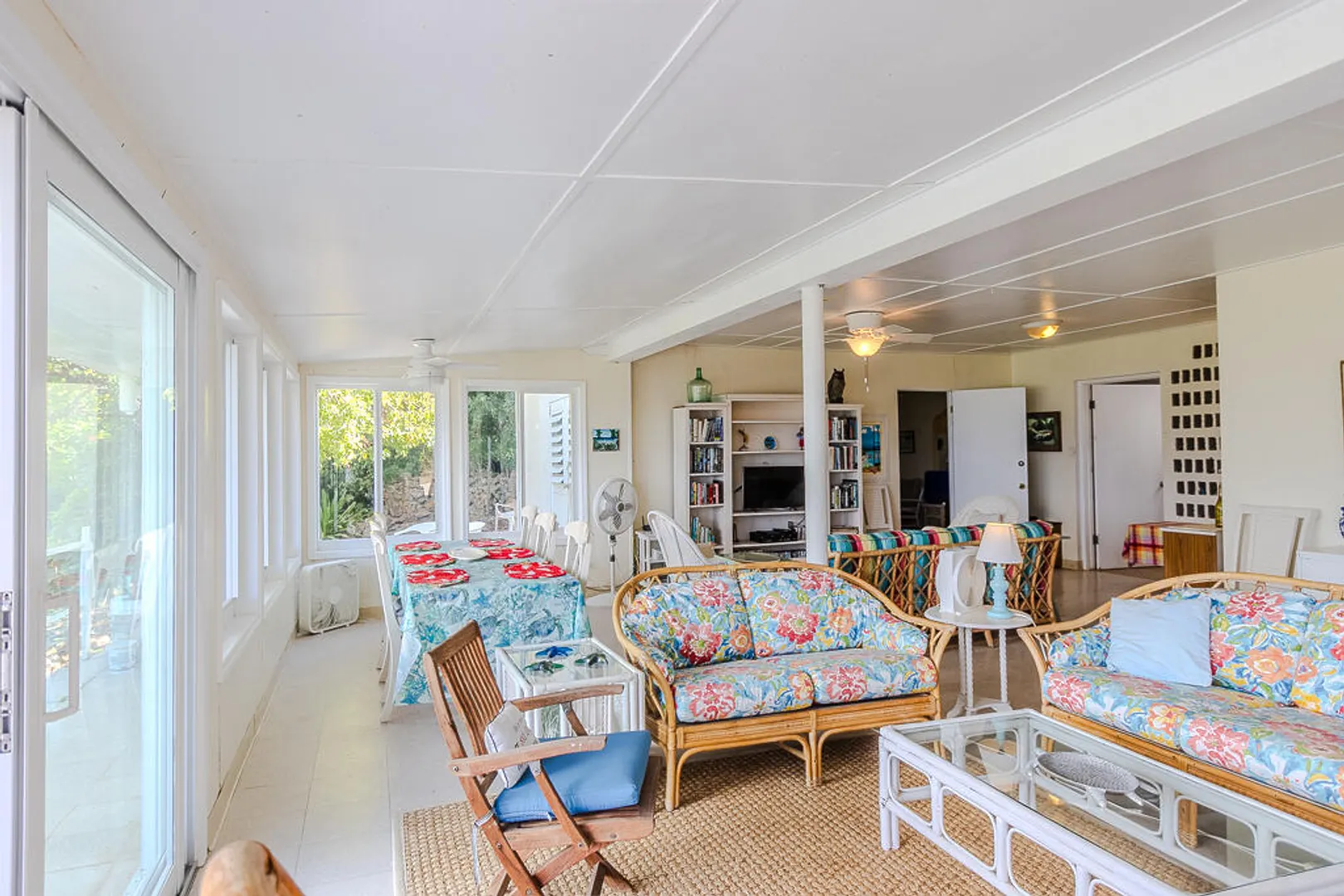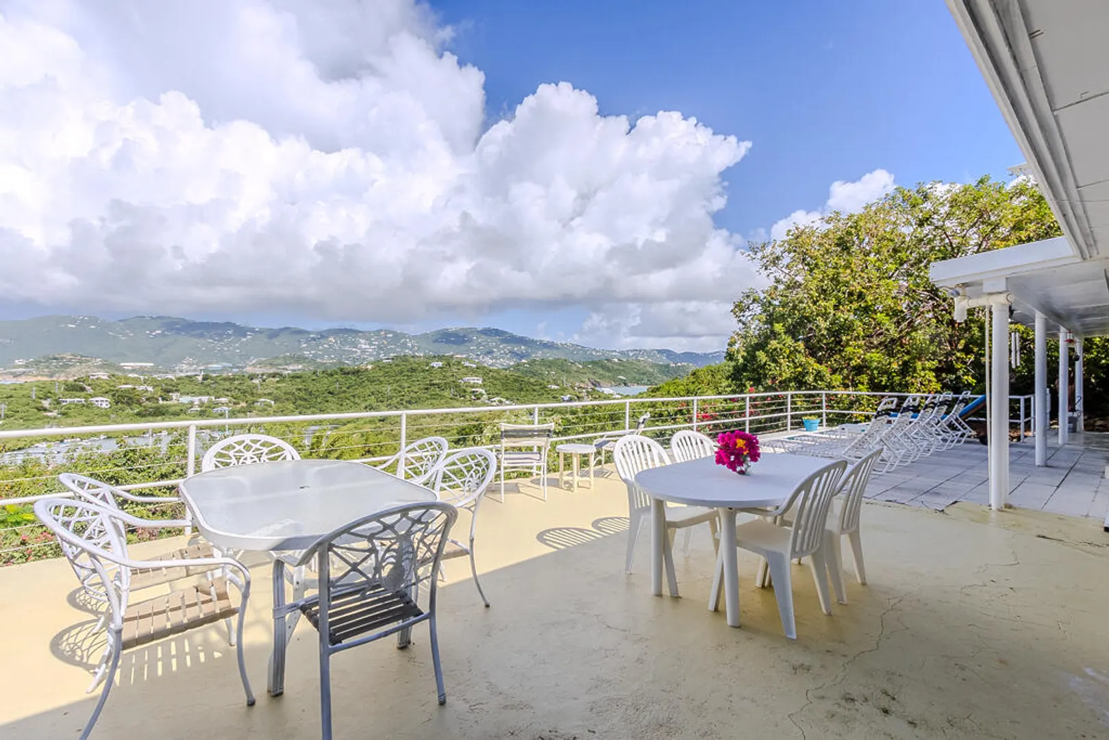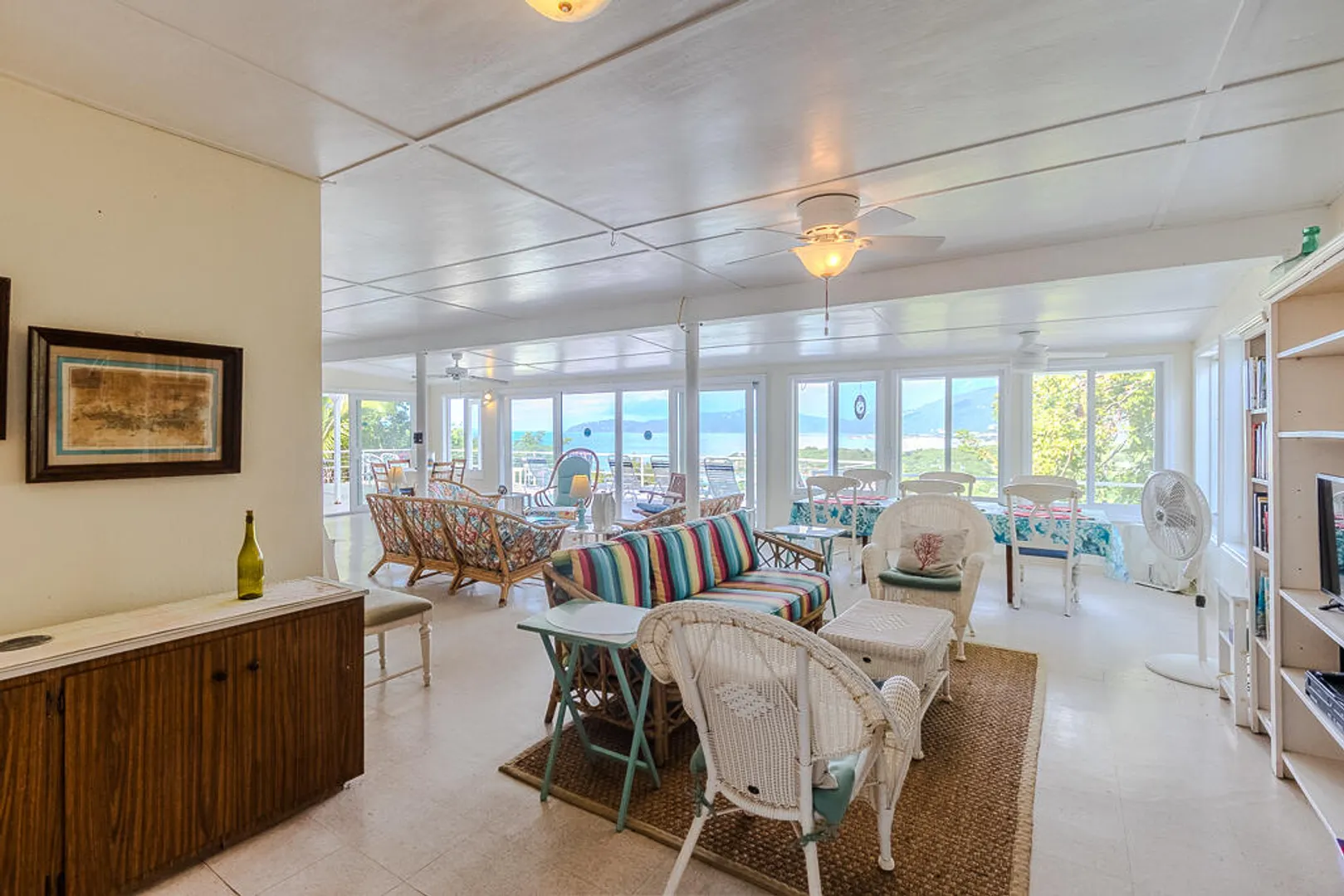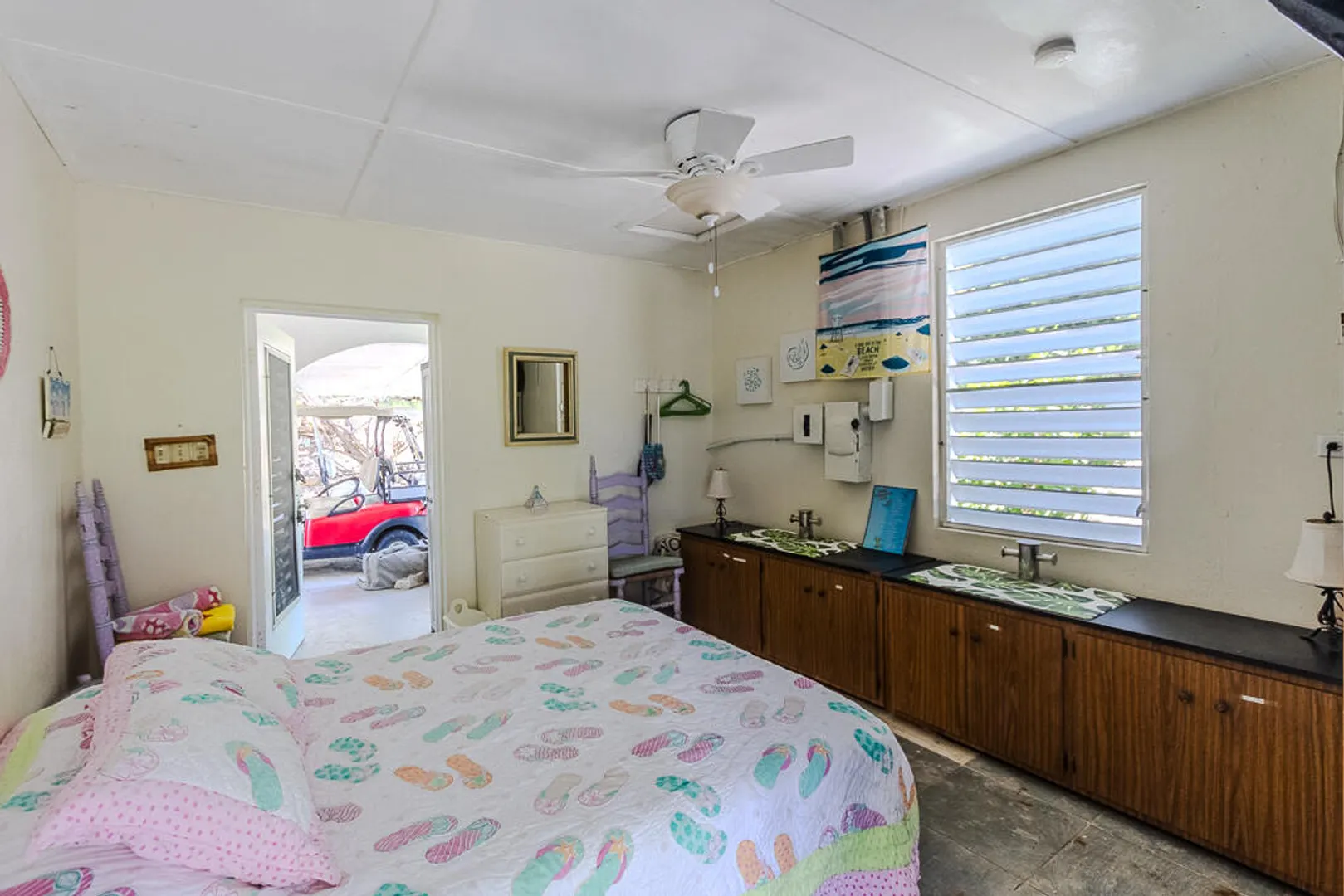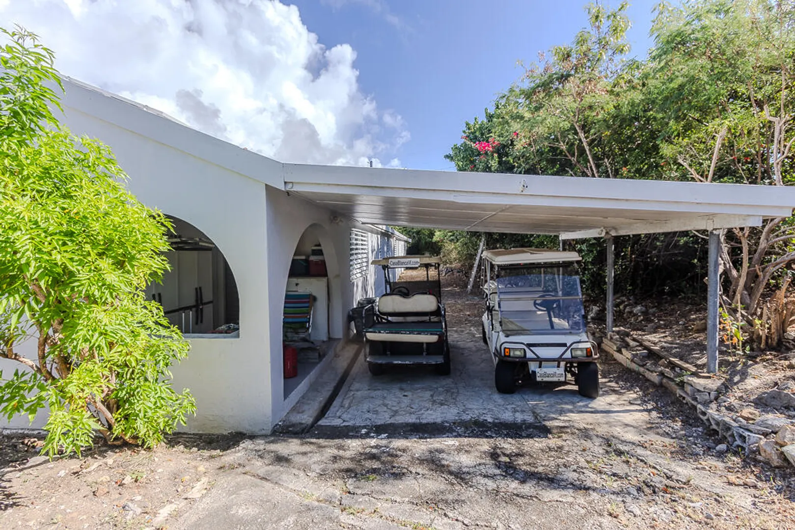 Nestled on the serene Water Island, Casa Blanca is a 4-bedroom, 3-bathroom retreat that blends rich history, versatility, and relaxed island living--an exceptional value on one of the Caribbean's best-kept secrets. Originally built as a U.S. Army barracks, the home carries a distinctive sense of character while being thoughtfully adapted for modern comfort.Enjoy sweeping views both day and night, with beautiful vistas and the glowing lights of St. Thomas in the evening. The expansive main living area opens seamlessly to a large deck--an ideal setting for hosting unforgettable gatherings, sunset dinners, and easy island entertaining.All living spaces are conveniently located on one level, including a private screened-in suite with its own separate entrance, offering flexibility for guests or extended stays. A covered carport provides direct access through the fourth bedroom, a practical and much-appreciated feature for everyday island life.