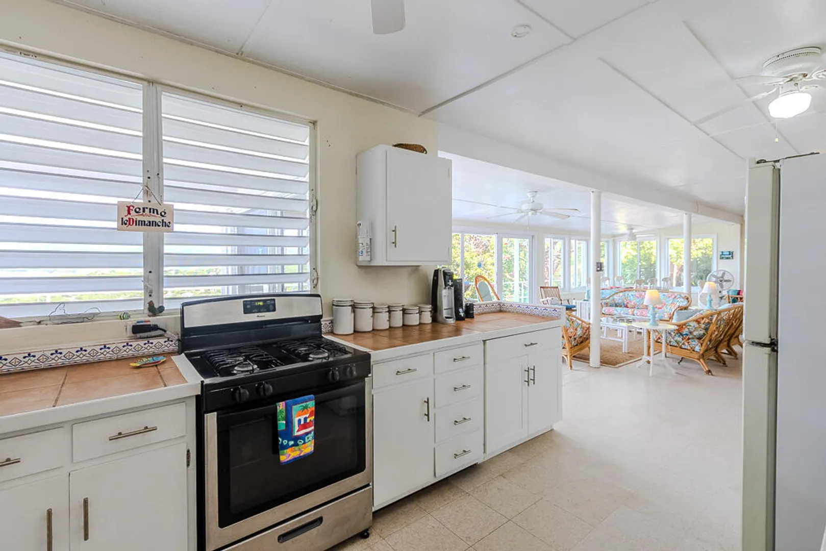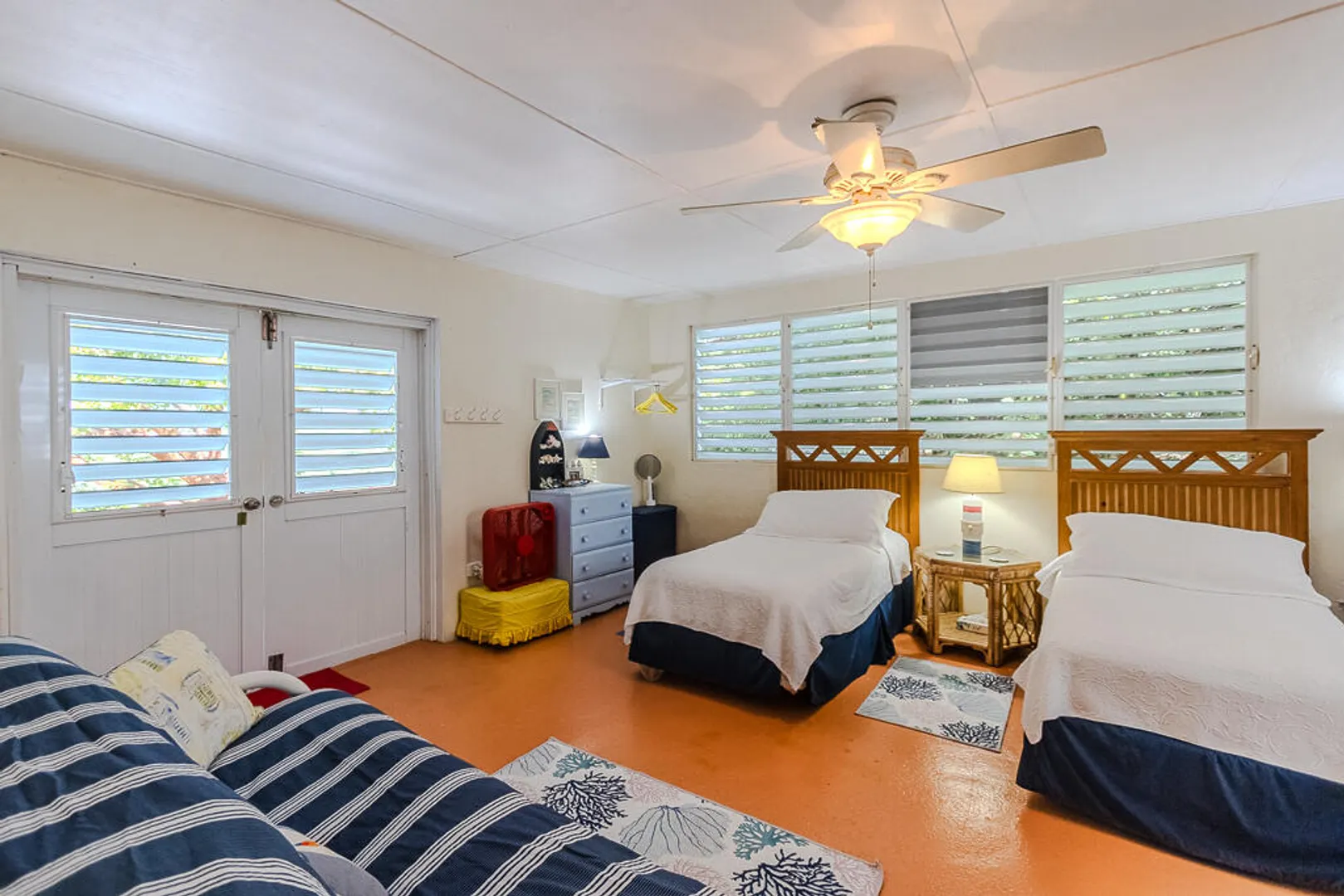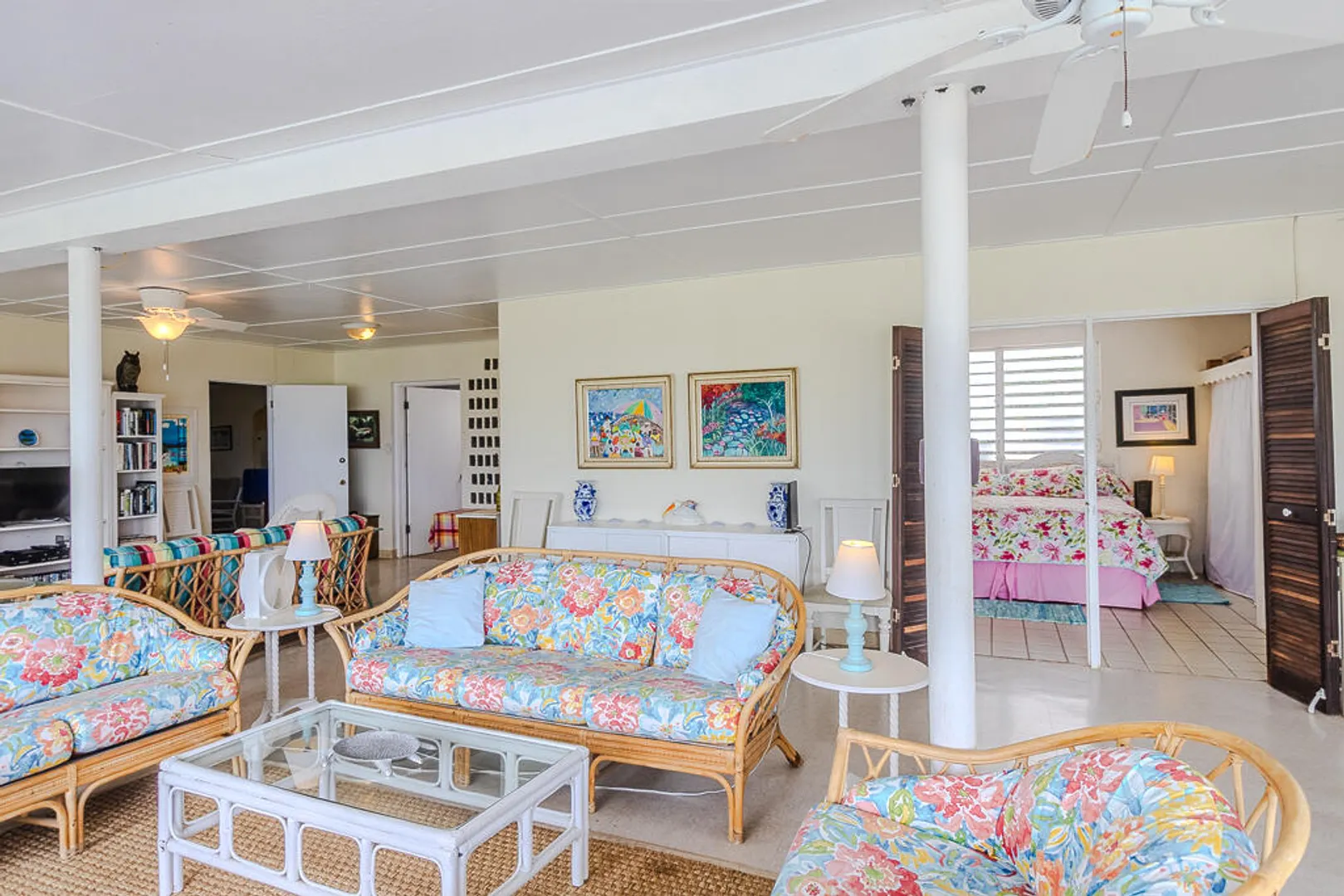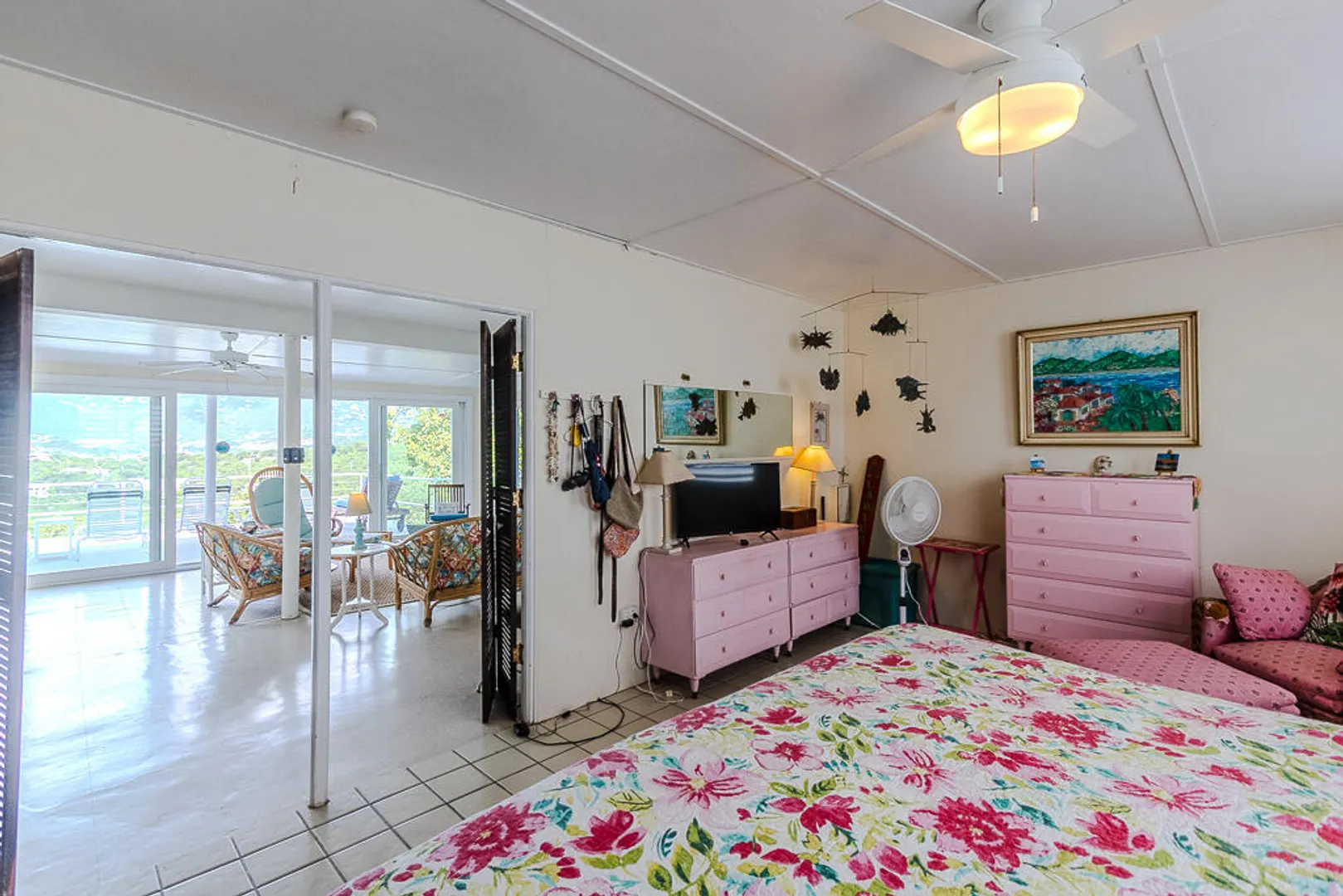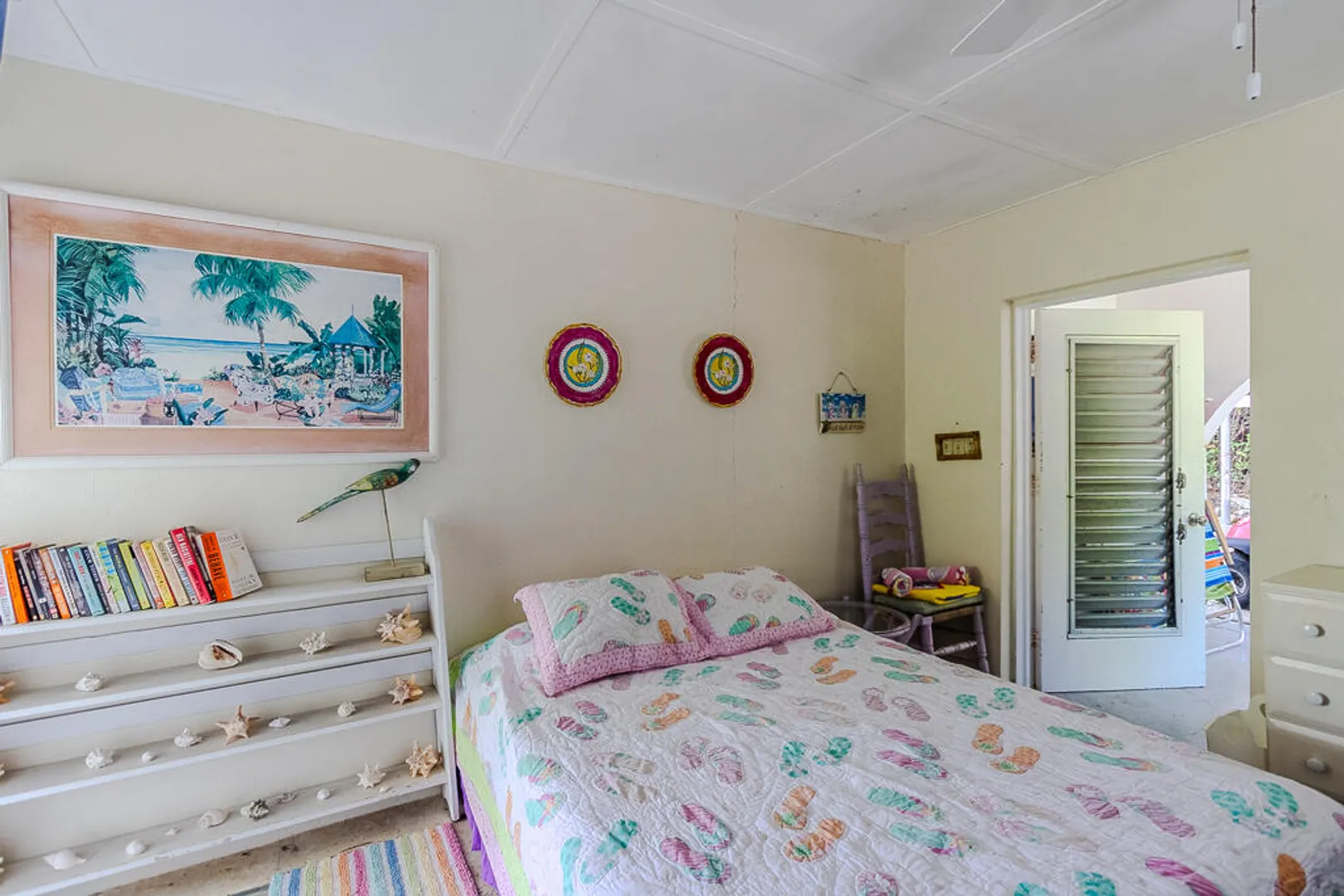 Nestled on the serene Water Island, Casa Blanca is a 4-bedroom, 3-bathroom retreat that blends rich history, versatility, and relaxed island living--an exceptional value on one of the Caribbean's best-kept secrets. Originally built as a U.S. Army barracks, the home carries a distinctive sense of character while being thoughtfully adapted for modern comfort.Enjoy sweeping views both day and night, with beautiful vistas and the glowing lights of St. Thomas in the evening. The expansive main living area opens seamlessly to a large deck--an ideal setting for hosting unforgettable gatherings, sunset dinners, and easy island entertaining.All living spaces are conveniently located on one level, including a private screened-in suite with its own separate entrance, offering flexibility for guests or extended stays. A covered carport provides direct access through the fourth bedroom, a practical and much-appreciated feature for everyday island life.
