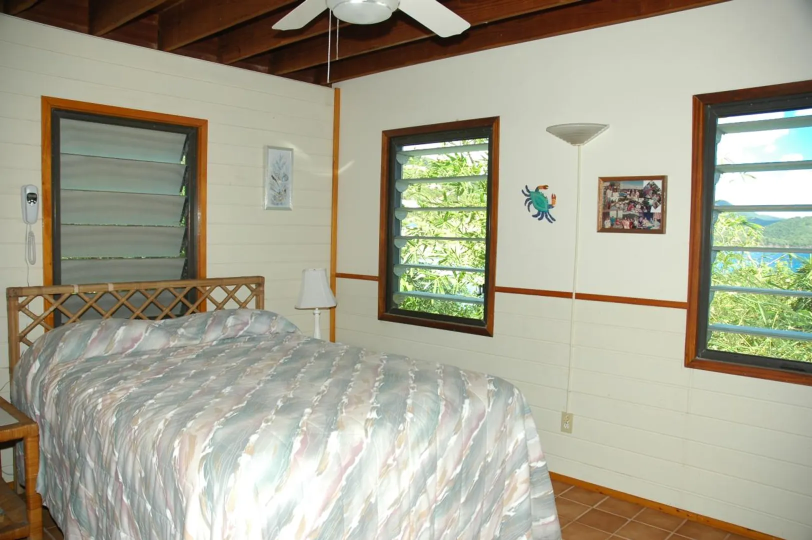 ''POINCIANA'' This clasic Caribbean home sits high on the wonderful 1.25 acre lot with sweeping views of Hart Bay, Ditleff Point and beyond. Breezes, sun and moon rises and walk to the beach make this a very special island home. Topo map shows plenty of room on this gentle lot for expansion or just enjoy this popular rental as it is. Tons of potential.