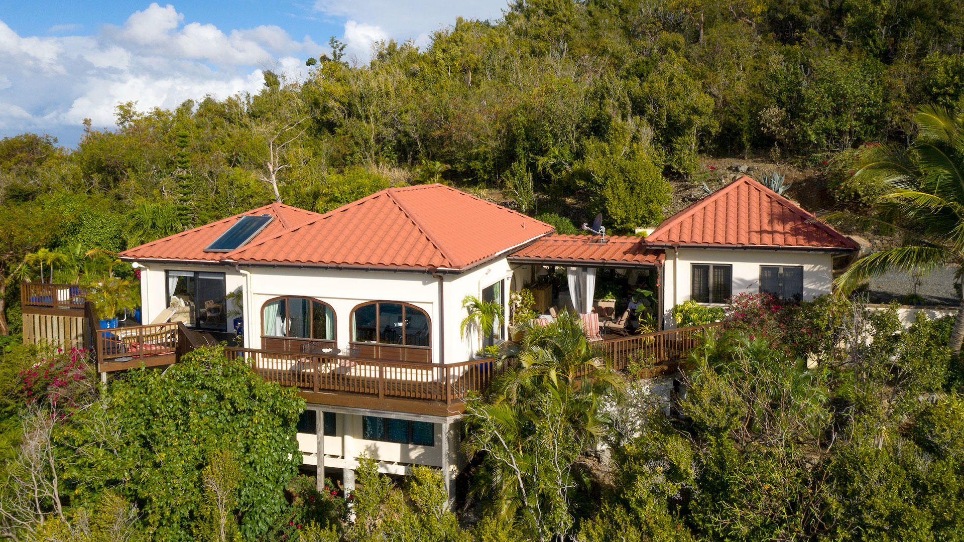 Villa di Pace, ''House of Peace'', rests on the lush hillside of sought after Boatman Point. Tranquil touches and ever-present trade winds accentuate the comfort of this well-maintained masonry home. Enjoy outdoor dining in this cozy setting, offering stunning views of the sunrise and sunset. Beautiful herringbone brick pathways lead you about this three bedroom private, tropical oasis. Paved roads, underground utilities, and sounds of the waves on the shoreline below make this property truly one of a kind. Being nearly an acre, the opportunity to further expand presents itself for the adventurous type.