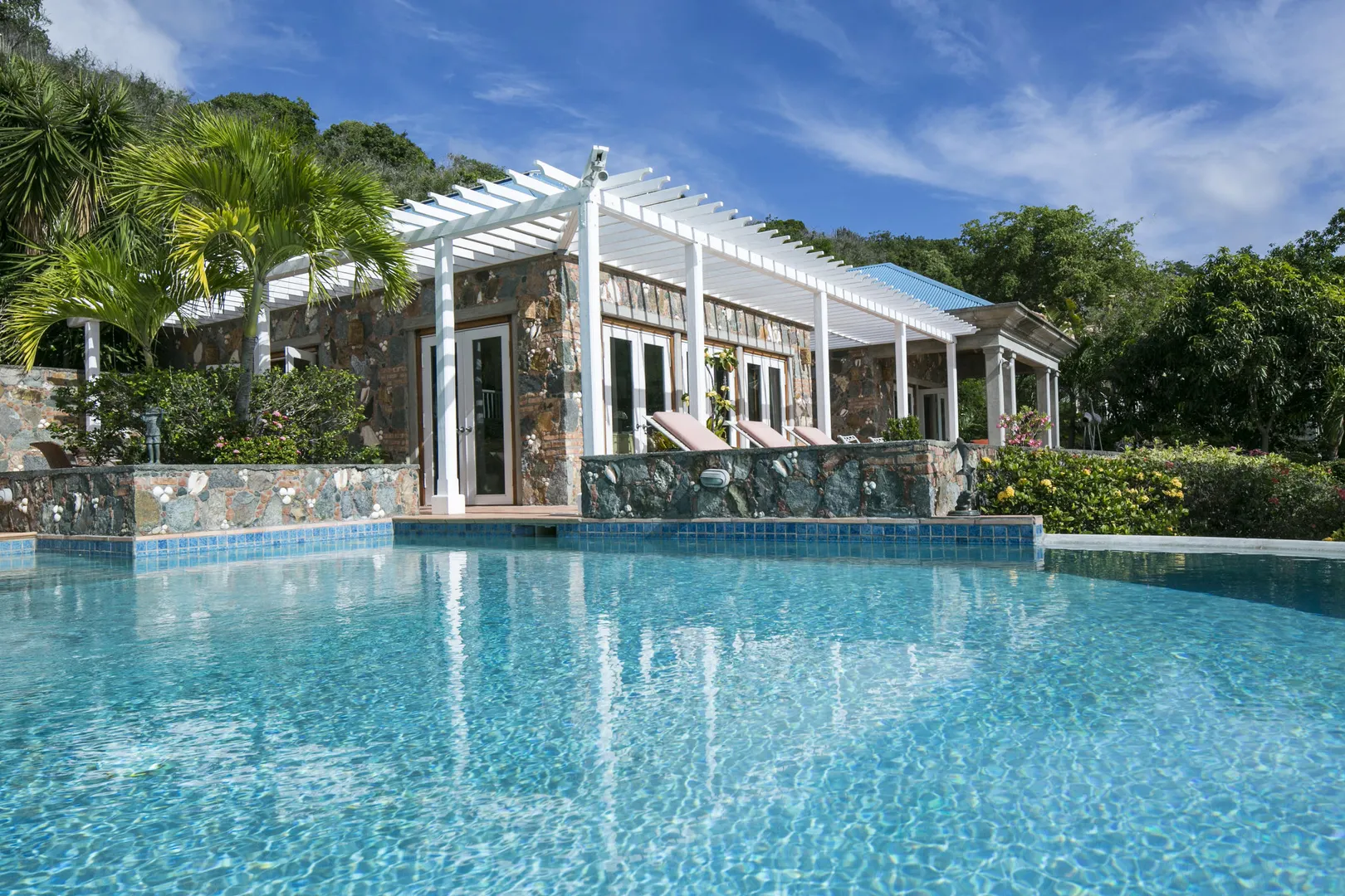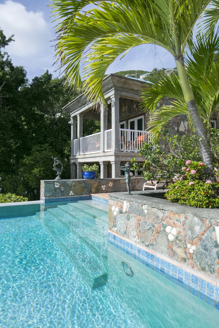 ''CARNIVAL BEACH HOUSE'' A beautifully constructed villa on the beach at Klein Bay. A gracious mixture of stone and mahogany make this beachfront pool villa a ''Caribbean Classic''. A 3 bedroom X 3.5 bath villa designed and built by noted St. Johnian Glen Speer, Carnival Beach House is a wonderful treatment of a very special spot. The inviting pool deck and every room look onto Klein Bay and anchored boats. Evening cocktails and prime poolside time is a treat!Guests are insured privacy in a separate wing but share the pool deck and grounds leading to the fabulous swimming and snorkeling of Klein Bay. Keep kayaks or paddle boards by the beach for water fun! Extras include a large ''storm room'' with bathroom and possible kitchen facilities. Great for storage.