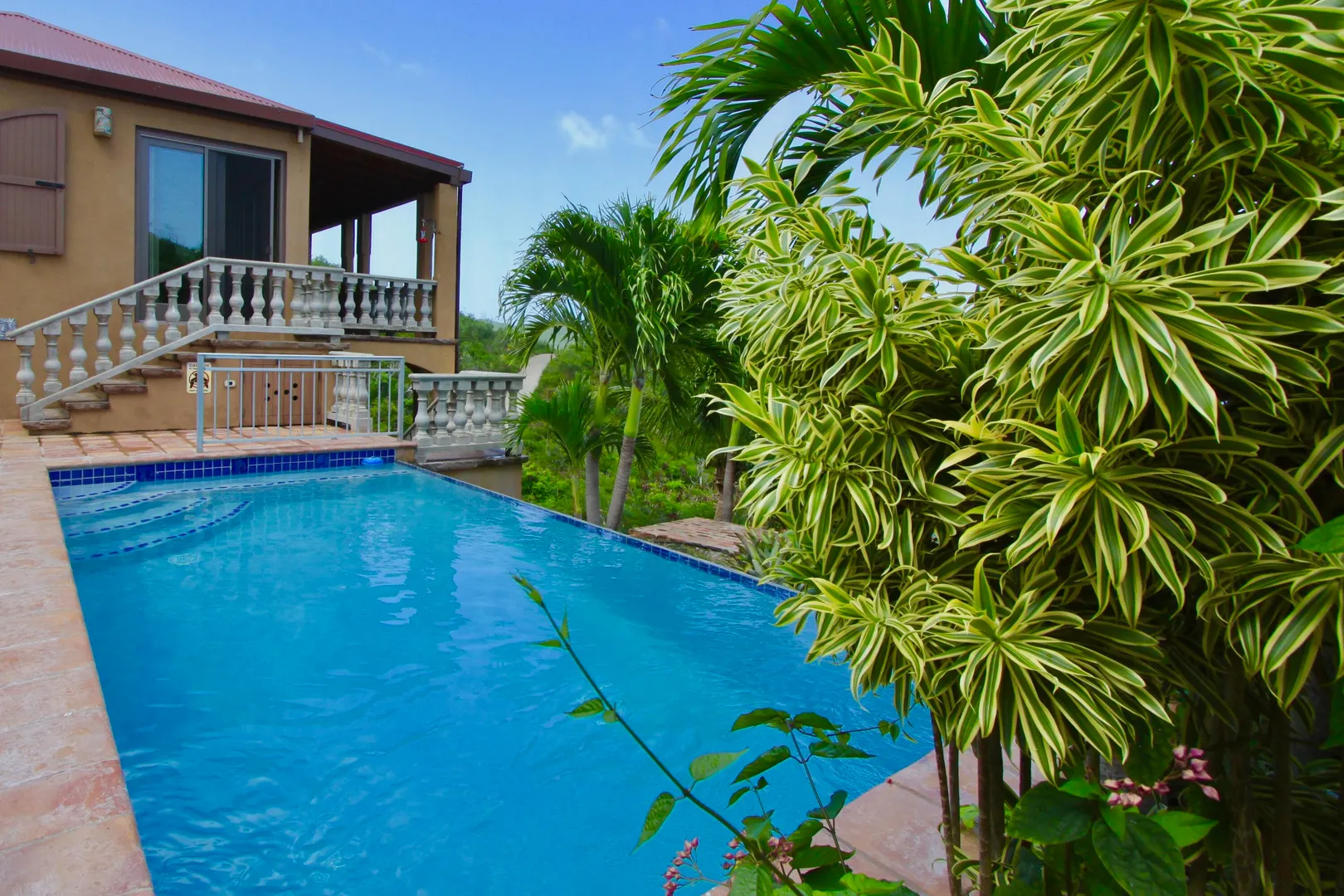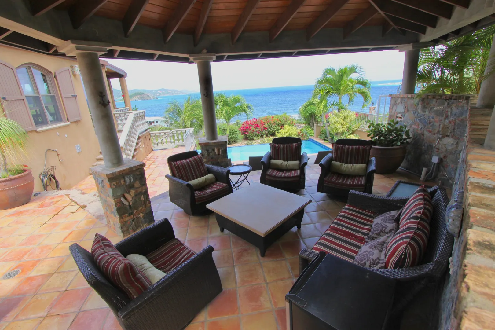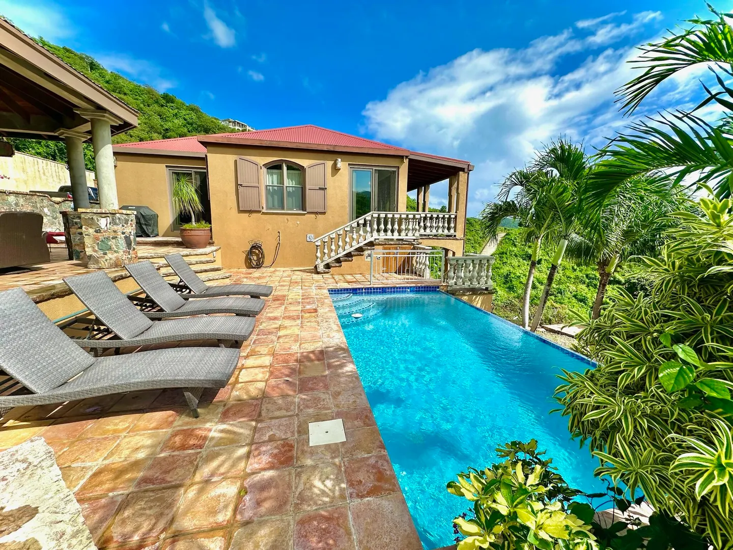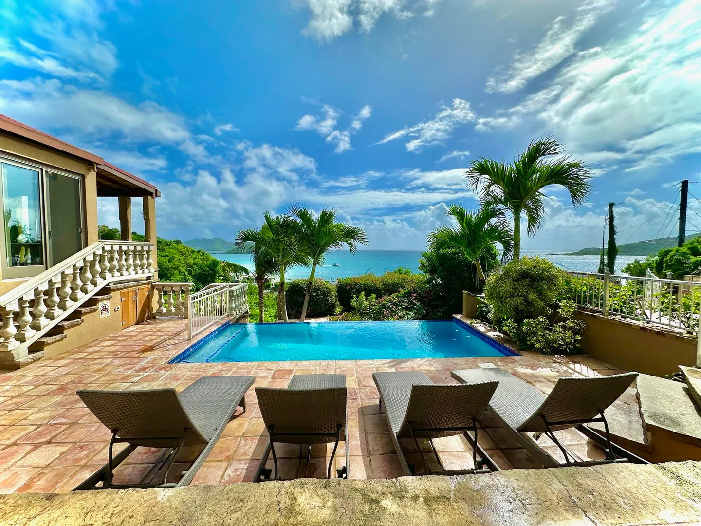 Listen to the waves crash just below from this private all masonry pool villa with big views over Coral Bay and beyond. 3 bedroom 3 1/2 bath St John villa rental with tons of space, infinity pool, private location and so much more! Expansive views from every room, stunning pool patio, gated privacy and luxury is everything you want in a St John Villa. Room to expand with plans for 2 more bedrooms for the ultimate private estate. Owner is professional concrete builder and overbuilt this home to be storm safe. !!PRICE REDUCED!!
