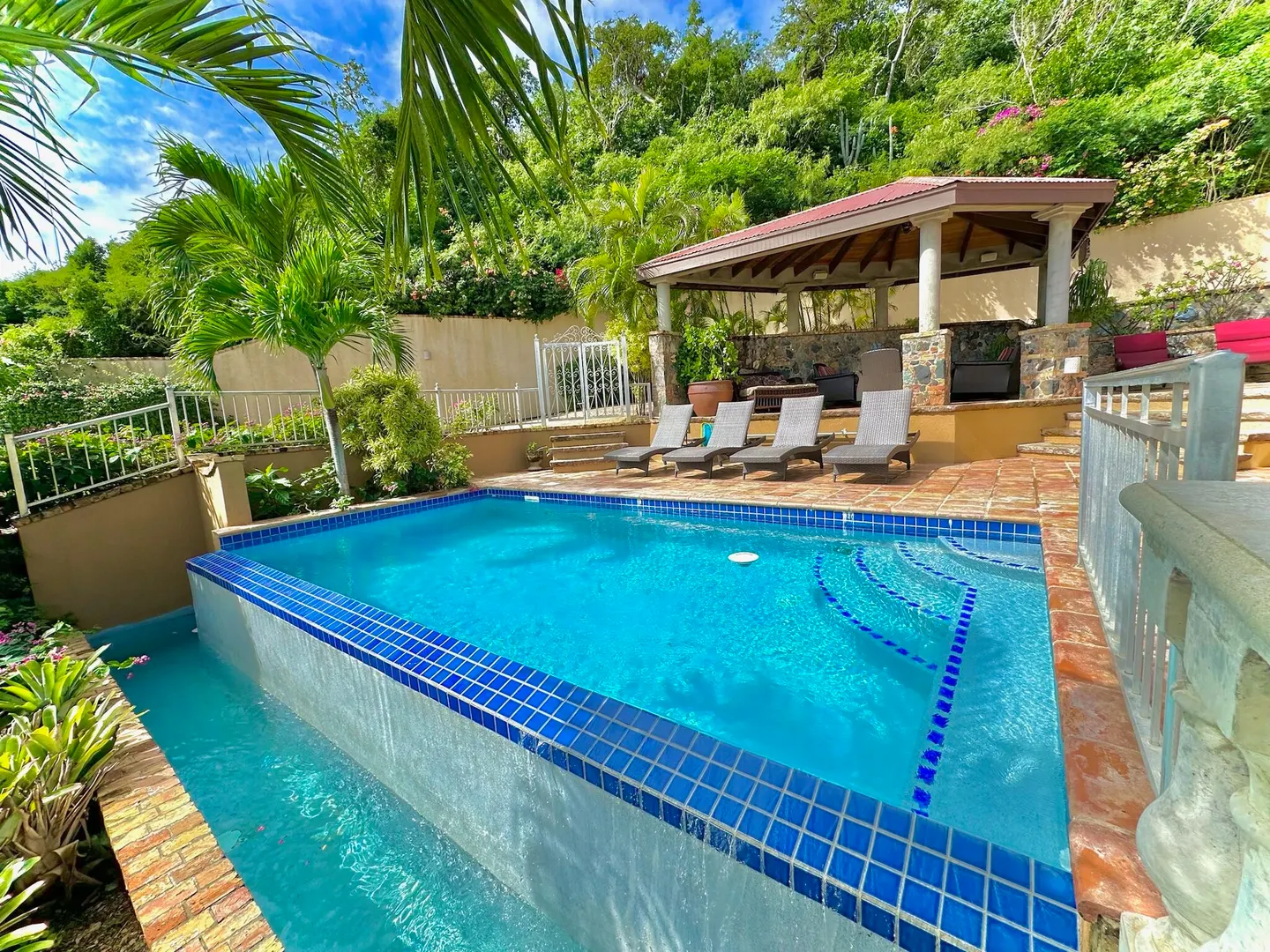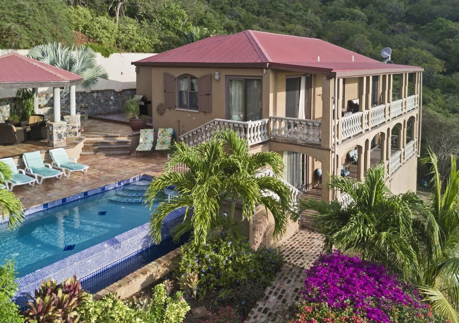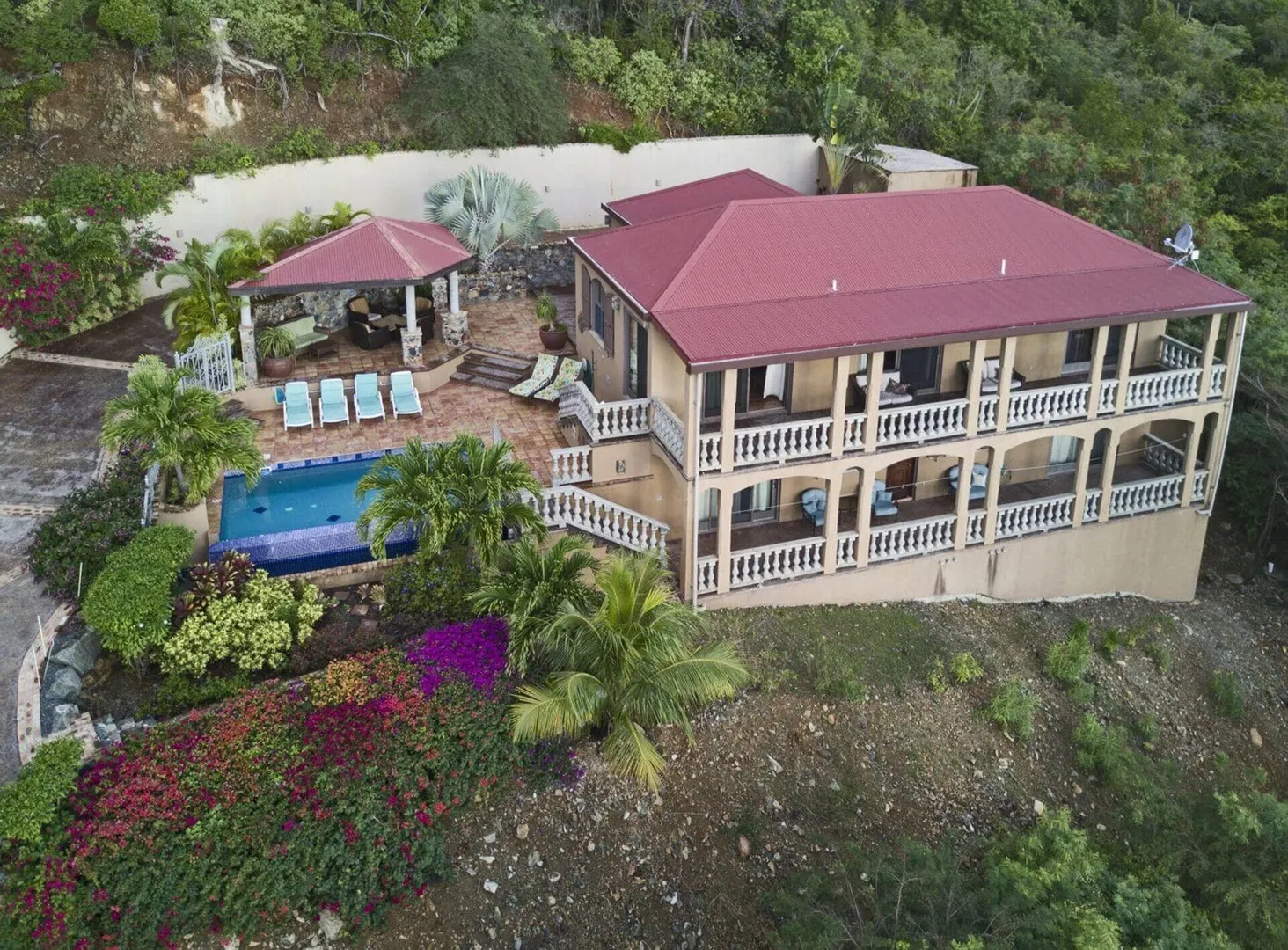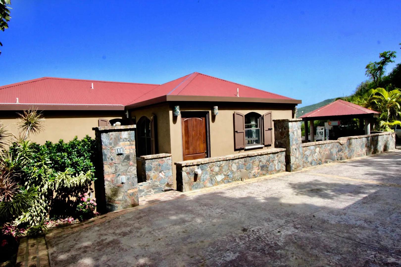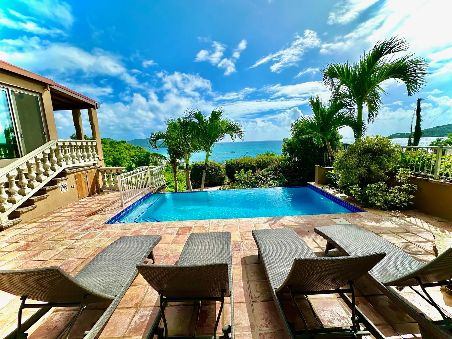 Listen to the waves crash just below from this private all masonry pool villa with big views over Coral Bay and beyond. 3 bedroom 3 1/2 bath St John villa rental with tons of space, infinity pool, private location and so much more! Expansive views from every room, stunning pool patio, gated privacy and luxury is everything you want in a St John Villa. Room to expand with plans for 2 more bedrooms for the ultimate private estate. Owner is professional concrete builder and overbuilt this home to be storm safe. !!PRICE REDUCED!!