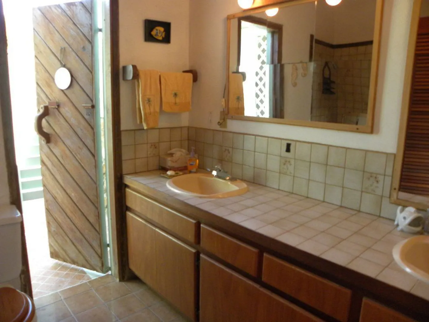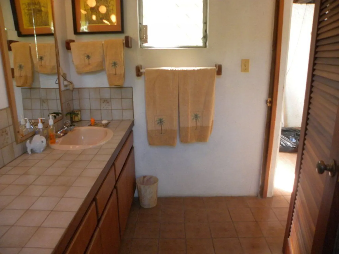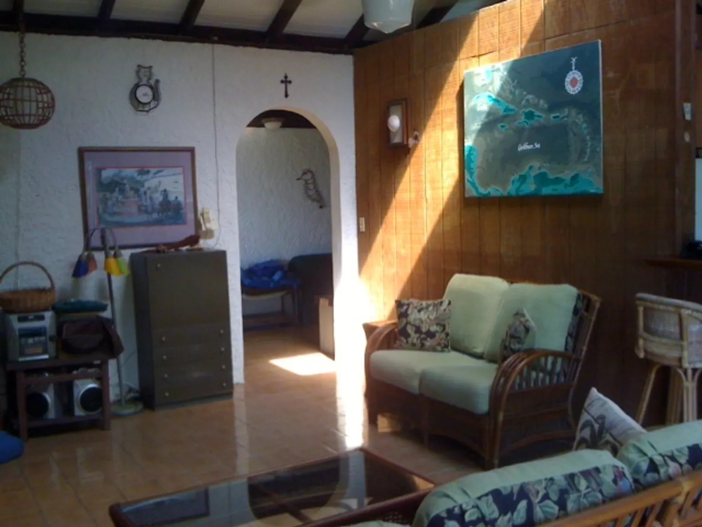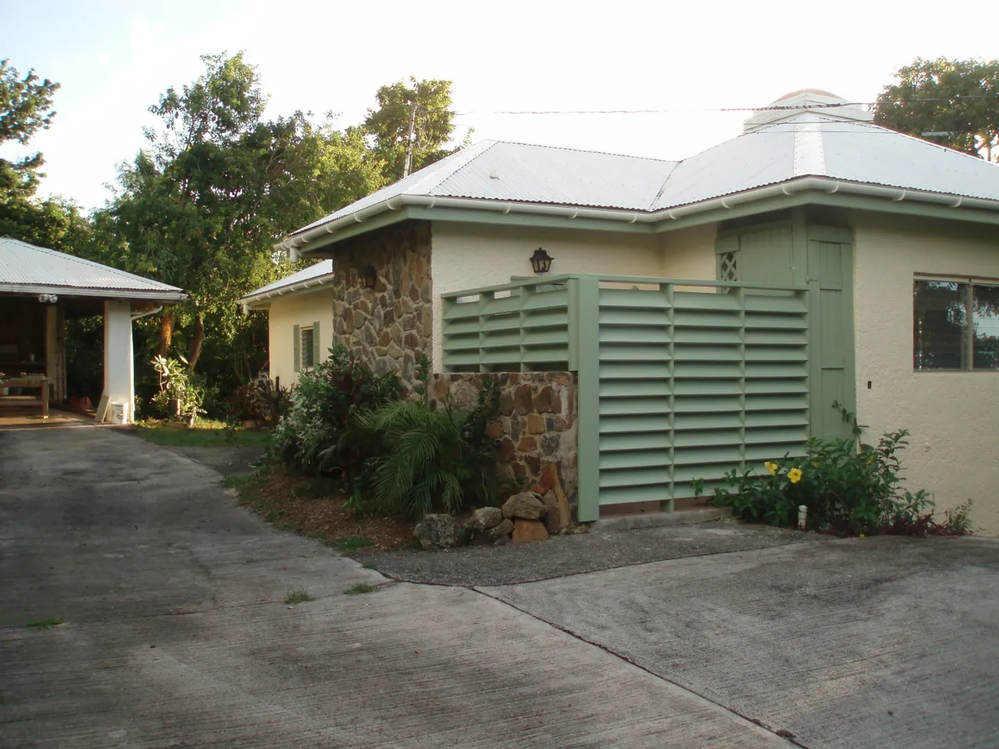 Best Buy in the Neighborhood! Located at the end of a cul de sac, this home is situated on an extra large (0.86 acre) gentle site to ensure maximum privacy and plenty of room for expansion. Incredible panoramic views overlooking Hart Bay, Chocolate Hole, sunset views of St. Thomas and St. Croix in the distance. A traditional masonry design with an arched entry breezeway with the master bedroom and bath on one side, & the living room, kitchen and covererd porch on the other. A spacious studio apt. with a new kitchen, with lots of storage, is located on the lower level. A carport with workshop is conveniently located near the entry of the home.