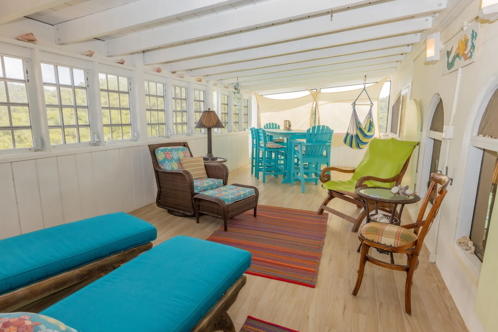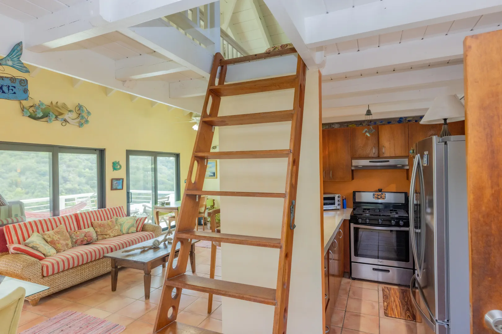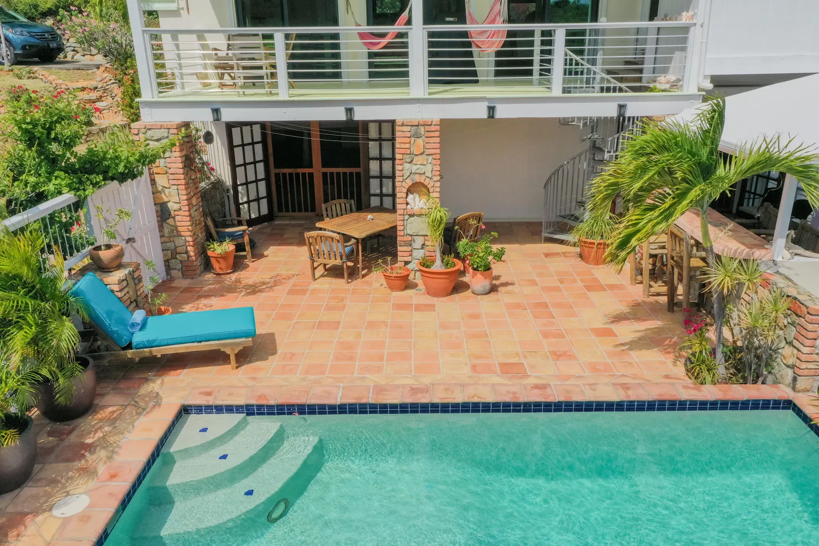 Take your pick of 4 beaches within walking distance from Villa La Sirena! Located in quiet Estate Mandahl, LaSirena offers 2 bedrooms & 3 baths plus a sleeping loft. Recent improvements include a beautiful new sun porch, new windows & doors, new roll down shutters, new a/c units & newly refinished kitchen concrete counter tops & appliances. The saltwater masonry pool is surrounded by a tiled deck & covered pool cabana/bar & lush landscaping. Bothupper & lower levels of La Sirena offer covered verandahs overlooking lush National Park lands. Many Caribbean touches throughout such as Saltillo tile, bricked finished windowsills, teak furniture, arched openings & hand painted murals. Property has been very well maintained & when previously short-term rented, it was a solid performer.
