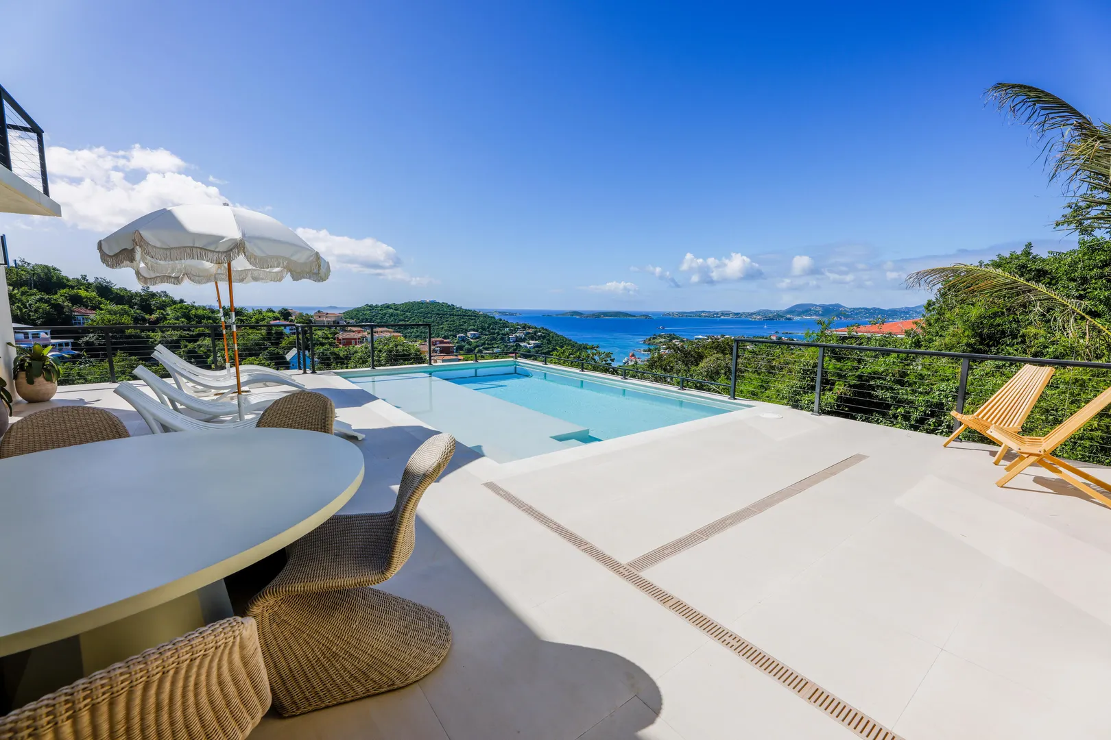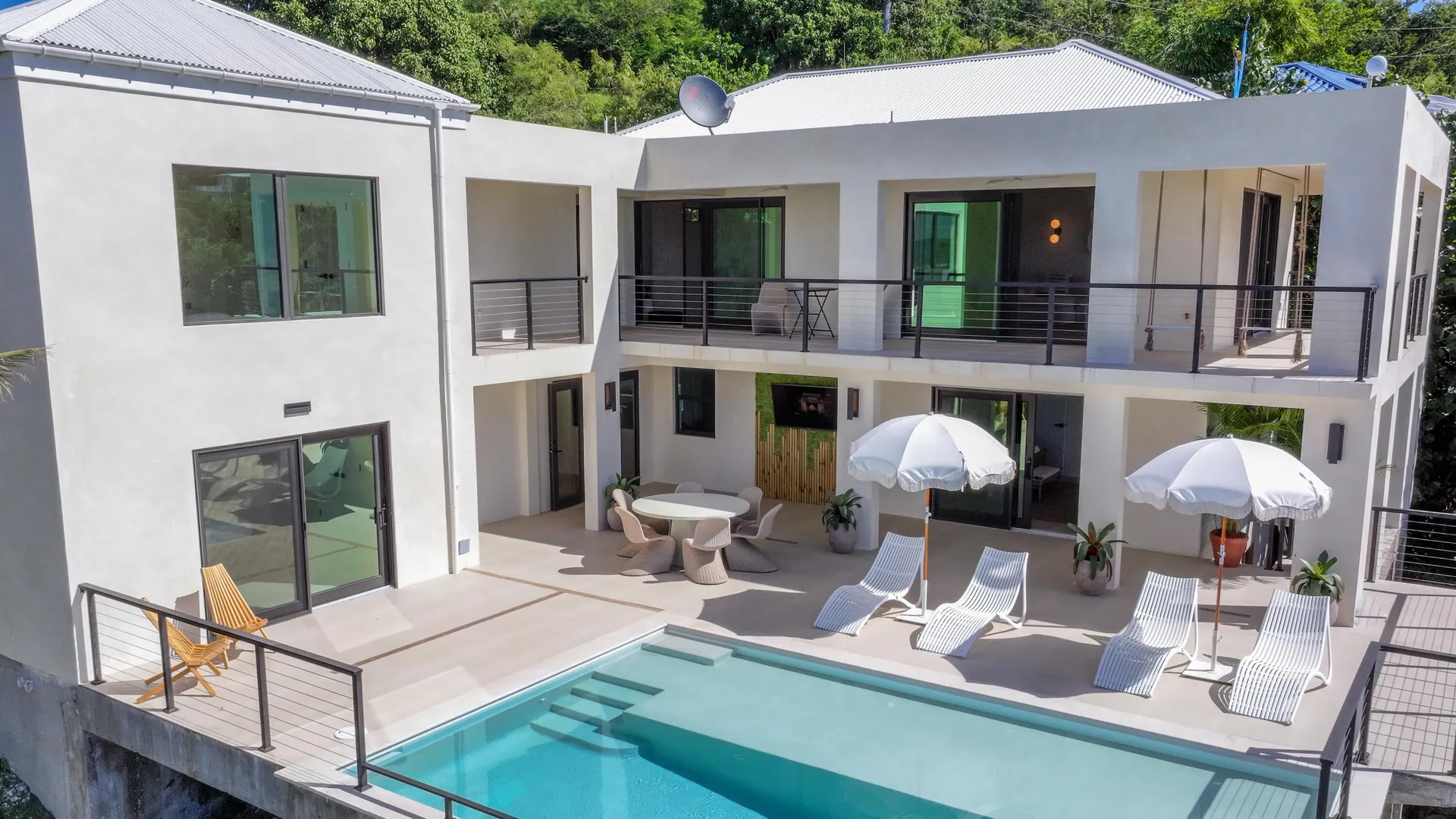 Nestled on a scenic hillside above Cruz Bay, SALTY ALIBI boasts panoramic sunset views and captures the essence of luxury living. This brand-new villa features 5 spacious bedrooms (4 kings + a bunk room), designer interiors, and breathtaking ocean vistas. Its proximity to vibrant Cruz Bay town creates an unparalleled oasis. With numerous rentals already secured for the upcoming season, this profitable investment property is truly exceptional. Enjoy low maintenance property with everything brand new, including solar panels and batteries for eco-friendly living. Salty Alibi proves to be a smart investment that pays for itself. Welcome to your dream home!