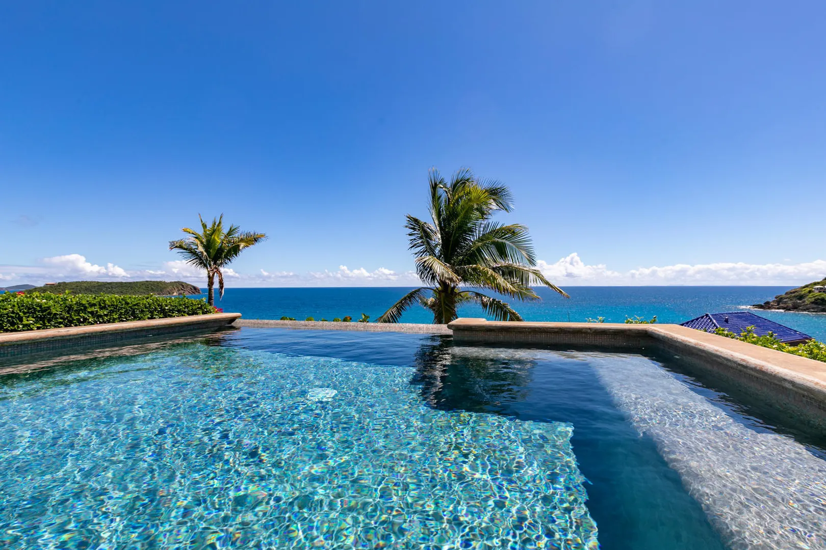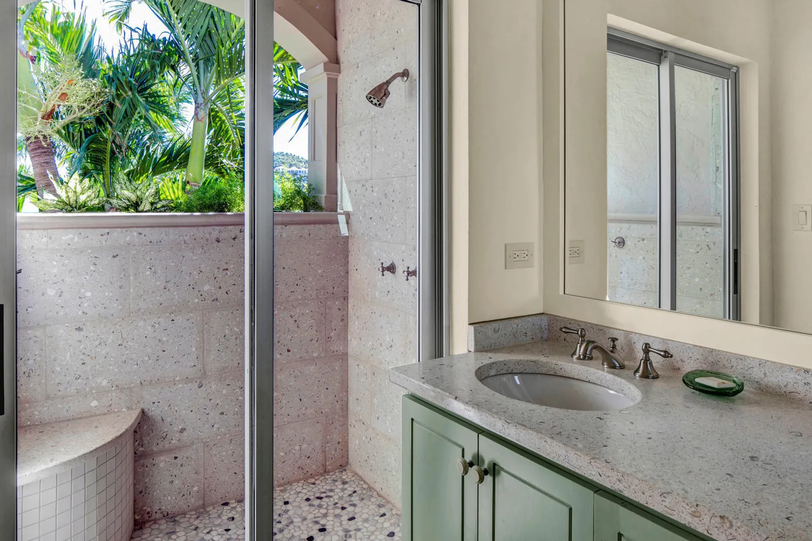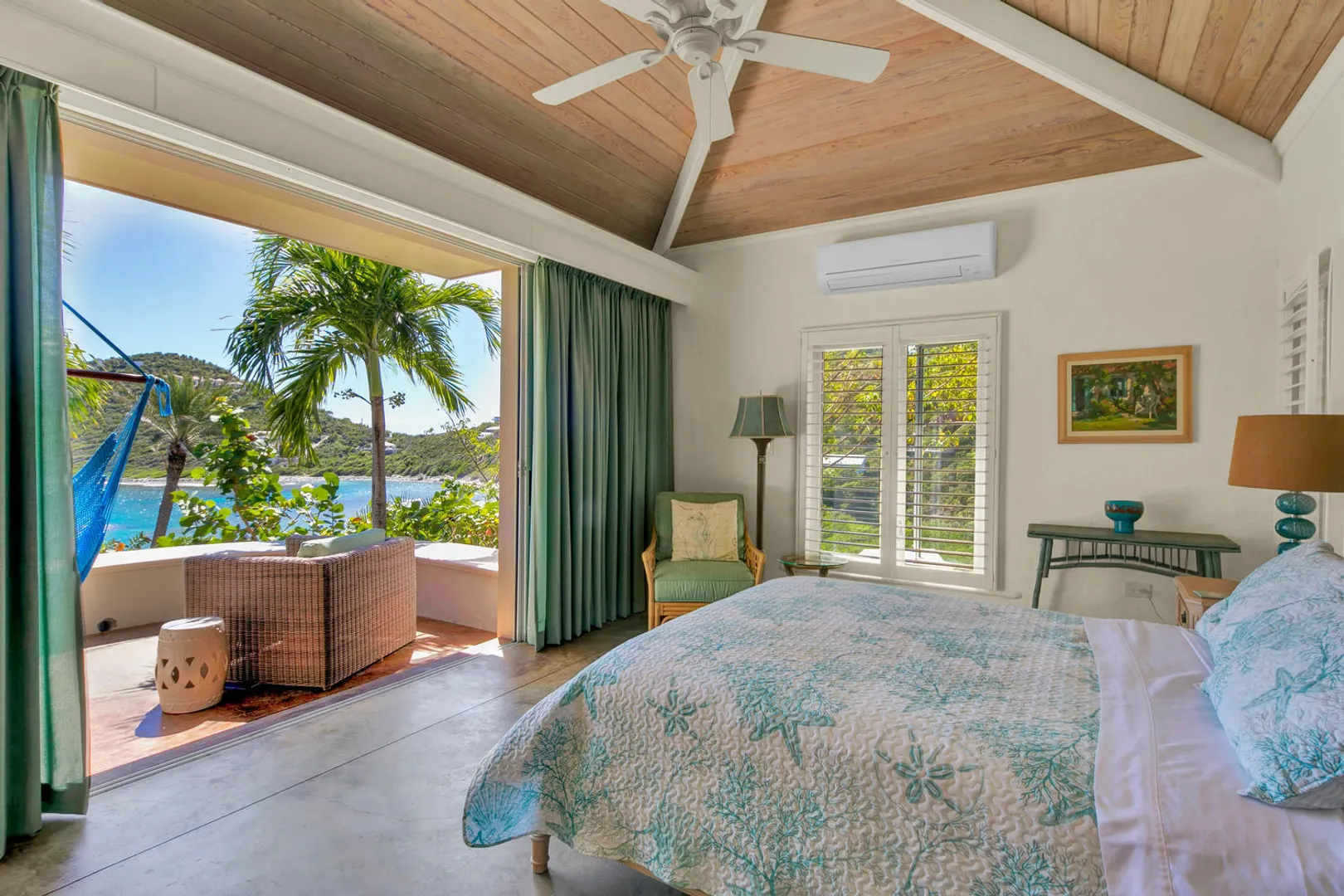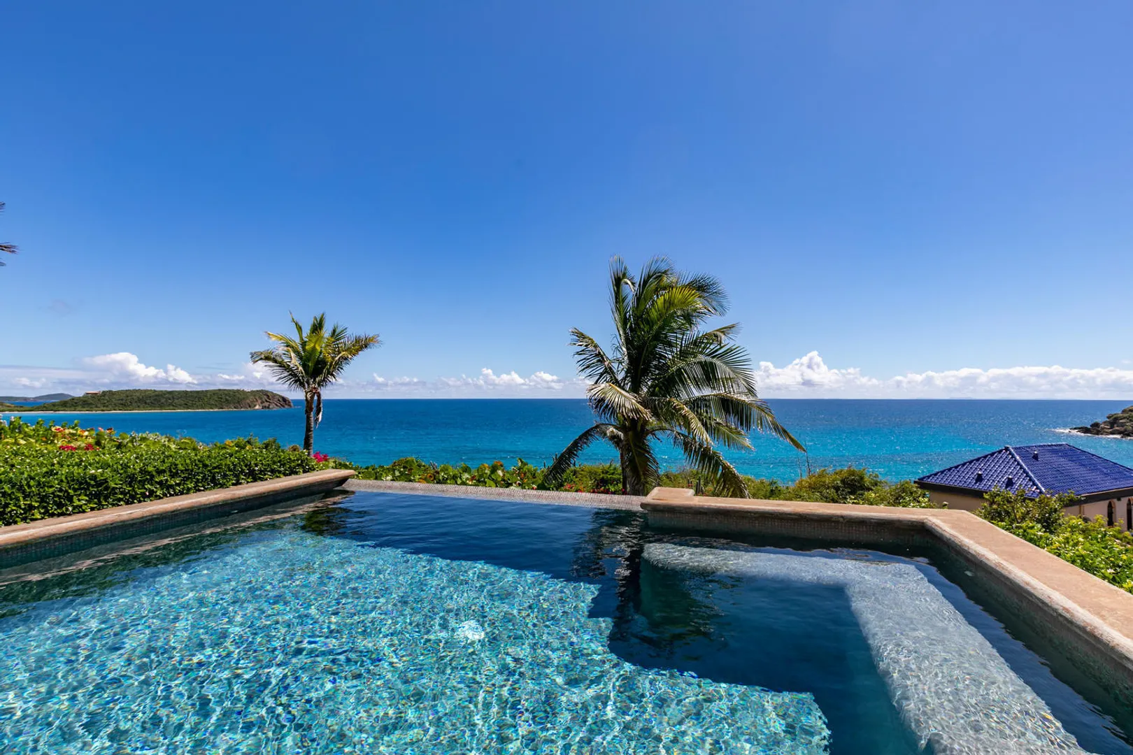 The living is easy year-round at Tango Mare, whose solid masonry construction, single-level design, and maintenance-free features make it a home of carefree comfort. Located five minutes from Cruz Bay, this four-bedroom, four-bath villa is close enough to town that shopping, dining, and bars are within easy reach, yet its location at the end of the road affords privacy and seclusion. The entire home is situated on one level, a rare find on hilly St. John. Tango Mare's floors are stained concrete, for a polished and refined look that requires no maintenance. Perhaps the best feature of this four-bedroom villa is its stunning views of Hart Bay to Rendezvous Bay and St. Croix in the distance. The home is perfectly situated toward the ocean vista, and great sliding pocket doors in the liviThe home is perfectly situated toward the ocean vista, and great sliding pocket doors in the living room and bedrooms make it easy to glimpse the beautiful turquoise waters from any room in the house. Waves often gently wash ashore in Hart Bay below, making for the most tranquil of soundtracks. Tango Mare is solid and hardy, designed and built to withstand abnormally high winds. The walls are reinforced with rebar and most are seven inches thick; the roof is 11 inches thick with two layers of rebar and accented with imported Italian tiles. Easy-to-close wood shutters protect smaller courtyard windows, while Armor Screens enclose ocean view openings for an extra layer of safety. Thirty two solar panels offset costly electricity bills. Tango Mare is enrolled in the net metering program, and there's a 32KW back-up generator, so you never have to go without current despite sporadic outages. There's air conditioning throughout the villa to keep you cool, though you might find the gentle trade winds do the trick all on their own. The home's current owner is an interior designer who's put her expert skills to use, maintaining a soothing, neutral palette throughout to allow nature's beauty to shine. You're sure to find yourself making ample use of the home's outdoor living areas. An infinity edge pool offers a seamless transition from the home to the sea below; it was resurfaced and new equipment installed in 2019. A covered outdoor living room with pool bar and outdoor dining room with built-in grill is an inviting space to enjoy St. John's balmy year-round weather. Inside, bathroom countertops and showers are finished with sustainable seastone made from shell fossils, perfectly complementing the island's landscape in a subtle, refined way. Each of the four bedrooms features its own private bathroom, outdoor shower, and private patio with ocean views. In the master, a newly installed bathtub is the perfect place for a relaxing soak as you gaze out over the south shore. Tango Mare is ideally set up to operate as a successful vacation rental, though it's just as easyand temptingto move in and make it your home.