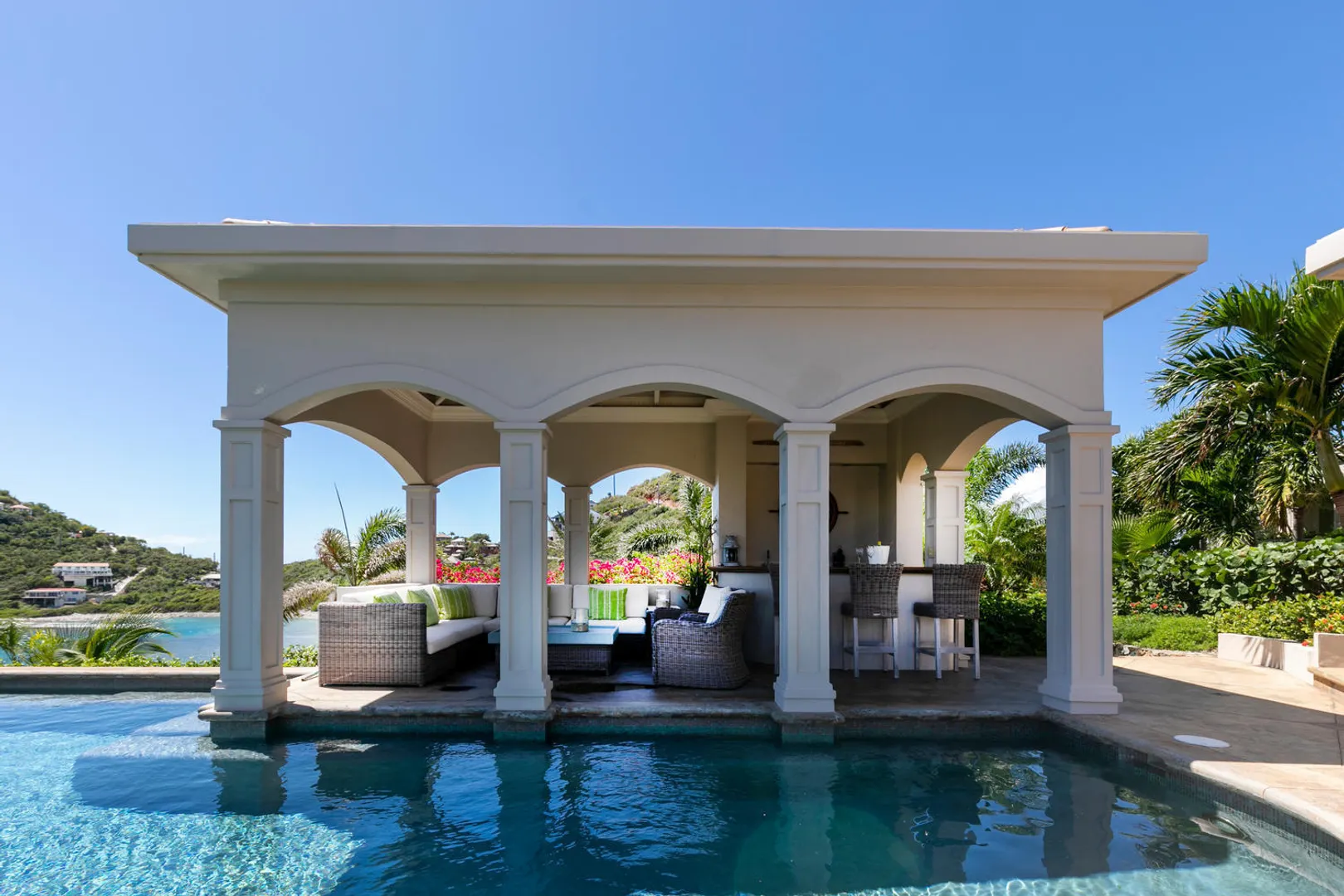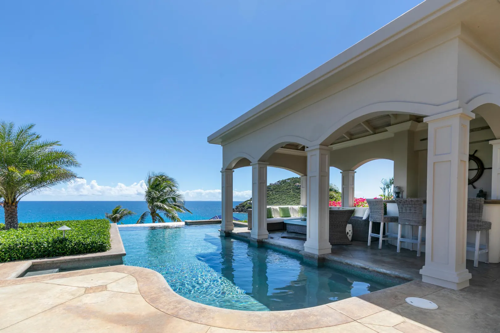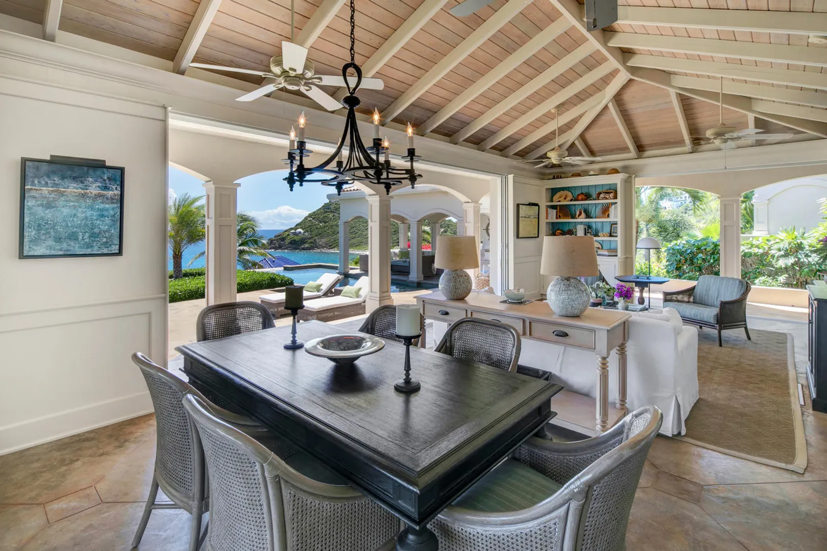 The living is easy year-round at Tango Mare, whose solid masonry construction, single-level design, and maintenance-free features make it a home of carefree comfort. Located five minutes from Cruz Bay, this four-bedroom, four-bath villa is close enough to town that shopping, dining, and bars are within easy reach, yet its location at the end of the road affords privacy and seclusion. The entire home is situated on one level, a rare find on hilly St. John. Tango Mare's floors are stained concrete, for a polished and refined look that requires no maintenance. Perhaps the best feature of this four-bedroom villa is its stunning views of Hart Bay to Rendezvous Bay and St. Croix in the distance. The home is perfectly situated toward the ocean vista, and great sliding pocket doors in the liviThe home is perfectly situated toward the ocean vista, and great sliding pocket doors in the living room and bedrooms make it easy to glimpse the beautiful turquoise waters from any room in the house. Waves often gently wash ashore in Hart Bay below, making for the most tranquil of soundtracks. Tango Mare is solid and hardy, designed and built to withstand abnormally high winds. The walls are reinforced with rebar and most are seven inches thick; the roof is 11 inches thick with two layers of rebar and accented with imported Italian tiles. Easy-to-close wood shutters protect smaller courtyard windows, while Armor Screens enclose ocean view openings for an extra layer of safety. Thirty two solar panels offset costly electricity bills. Tango Mare is enrolled in the net metering program, and there's a 32KW back-up generator, so you never have to go without current despite sporadic outages. There's air conditioning throughout the villa to keep you cool, though you might find the gentle trade winds do the trick all on their own. The home's current owner is an interior designer who's put her expert skills to use, maintaining a soothing, neutral palette throughout to allow nature's beauty to shine. You're sure to find yourself making ample use of the home's outdoor living areas. An infinity edge pool offers a seamless transition from the home to the sea below; it was resurfaced and new equipment installed in 2019. A covered outdoor living room with pool bar and outdoor dining room with built-in grill is an inviting space to enjoy St. John's balmy year-round weather. Inside, bathroom countertops and showers are finished with sustainable seastone made from shell fossils, perfectly complementing the island's landscape in a subtle, refined way. Each of the four bedrooms features its own private bathroom, outdoor shower, and private patio with ocean views. In the master, a newly installed bathtub is the perfect place for a relaxing soak as you gaze out over the south shore. Tango Mare is ideally set up to operate as a successful vacation rental, though it's just as easyand temptingto move in and make it your home.