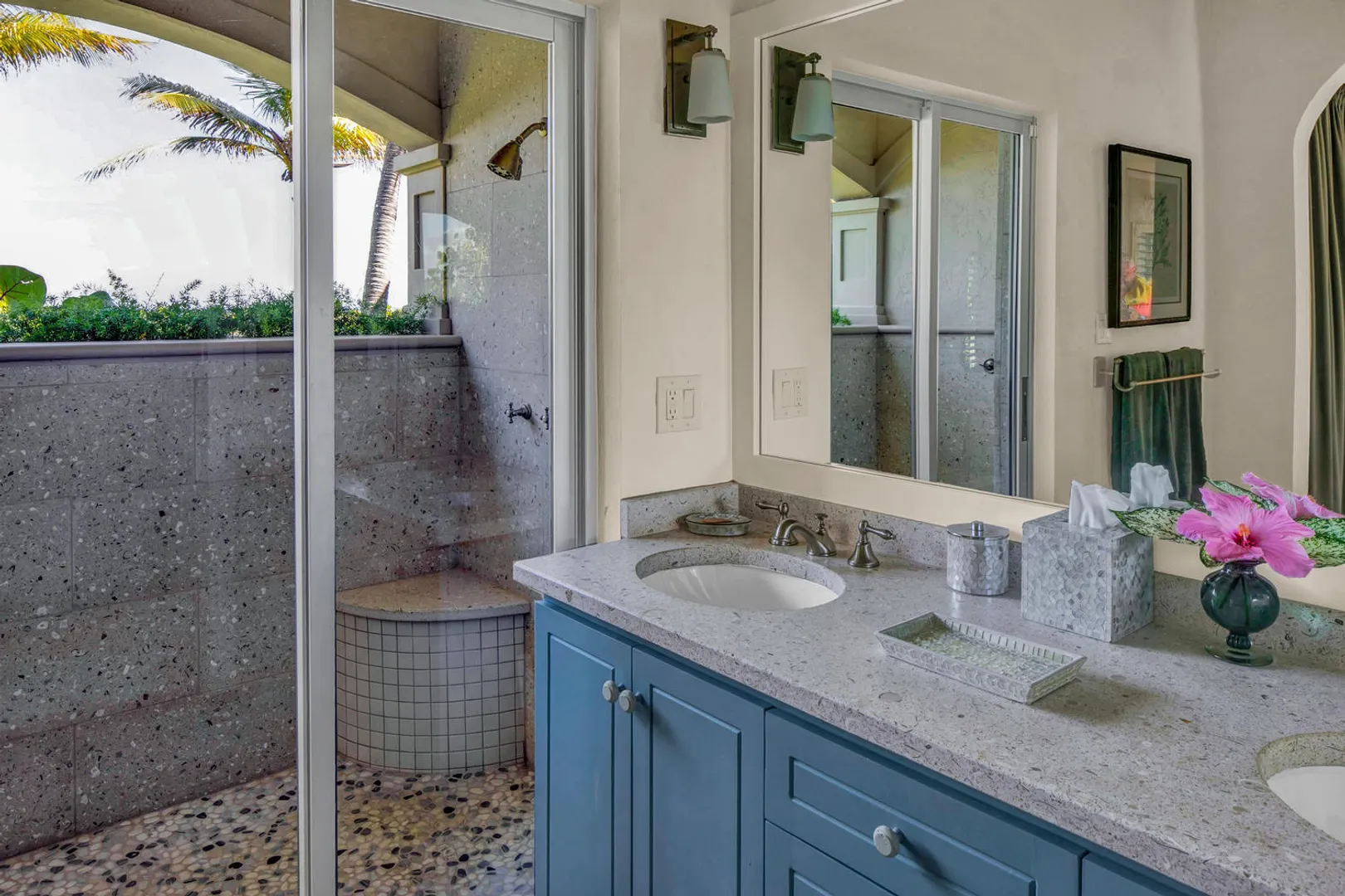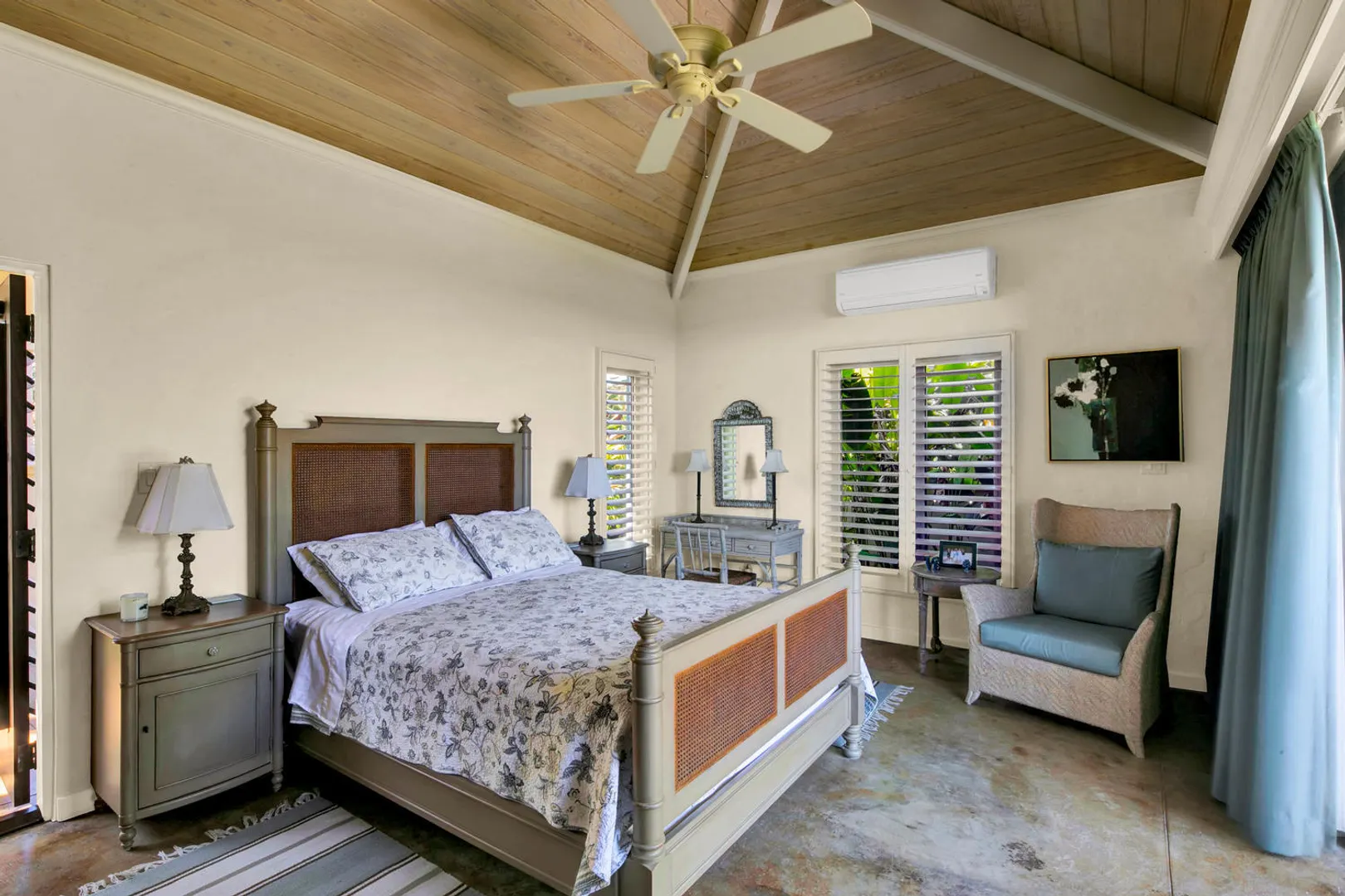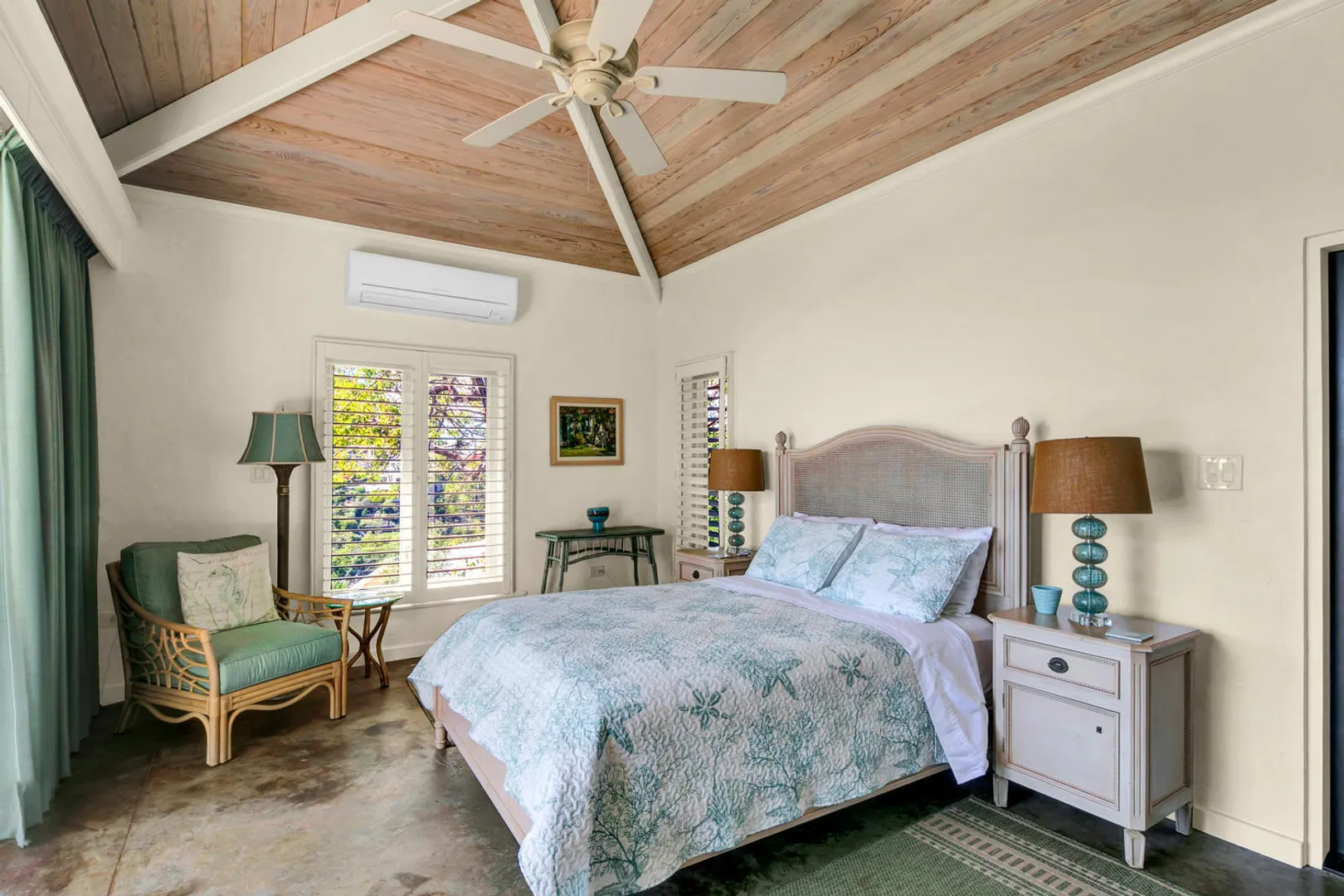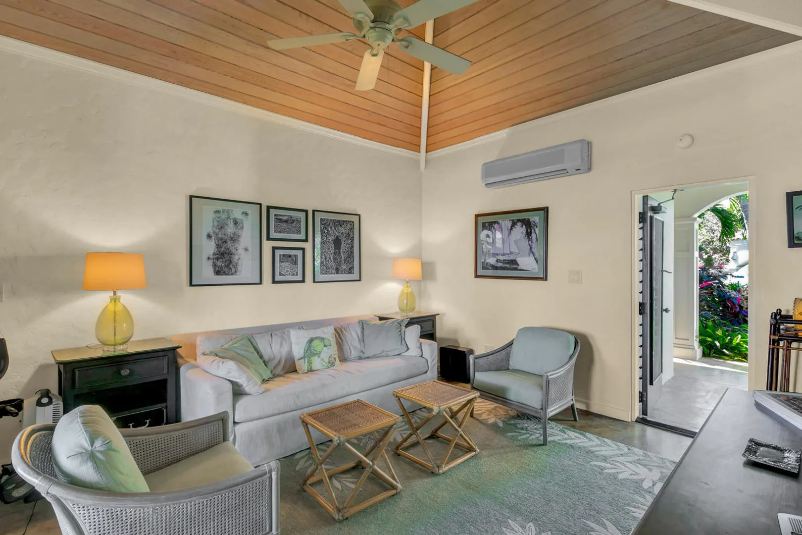 The living is easy year-round at Tango Mare, whose solid masonry construction, single-level design, and maintenance-free features make it a home of carefree comfort. Located five minutes from Cruz Bay, this four-bedroom, four-bath villa is close enough to town that shopping, dining, and bars are within easy reach, yet its location at the end of the road affords privacy and seclusion. The entire home is situated on one level, a rare find on hilly St. John. Tango Mare's floors are stained concrete, for a polished and refined look that requires no maintenance. Perhaps the best feature of this four-bedroom villa is its stunning views of Hart Bay to Rendezvous Bay and St. Croix in the distance. The home is perfectly situated toward the ocean vista, and great sliding pocket doors in the liviThe home is perfectly situated toward the ocean vista, and great sliding pocket doors in the living room and bedrooms make it easy to glimpse the beautiful turquoise waters from any room in the house. Waves often gently wash ashore in Hart Bay below, making for the most tranquil of soundtracks. Tango Mare is solid and hardy, designed and built to withstand abnormally high winds. The walls are reinforced with rebar and most are seven inches thick; the roof is 11 inches thick with two layers of rebar and accented with imported Italian tiles. Easy-to-close wood shutters protect smaller courtyard windows, while Armor Screens enclose ocean view openings for an extra layer of safety. Thirty two solar panels offset costly electricity bills. Tango Mare is enrolled in the net metering program, and there's a 32KW back-up generator, so you never have to go without current despite sporadic outages. There's air conditioning throughout the villa to keep you cool, though you might find the gentle trade winds do the trick all on their own. The home's current owner is an interior designer who's put her expert skills to use, maintaining a soothing, neutral palette throughout to allow nature's beauty to shine. You're sure to find yourself making ample use of the home's outdoor living areas. An infinity edge pool offers a seamless transition from the home to the sea below; it was resurfaced and new equipment installed in 2019. A covered outdoor living room with pool bar and outdoor dining room with built-in grill is an inviting space to enjoy St. John's balmy year-round weather. Inside, bathroom countertops and showers are finished with sustainable seastone made from shell fossils, perfectly complementing the island's landscape in a subtle, refined way. Each of the four bedrooms features its own private bathroom, outdoor shower, and private patio with ocean views. In the master, a newly installed bathtub is the perfect place for a relaxing soak as you gaze out over the south shore. Tango Mare is ideally set up to operate as a successful vacation rental, though it's just as easyand temptingto move in and make it your home.