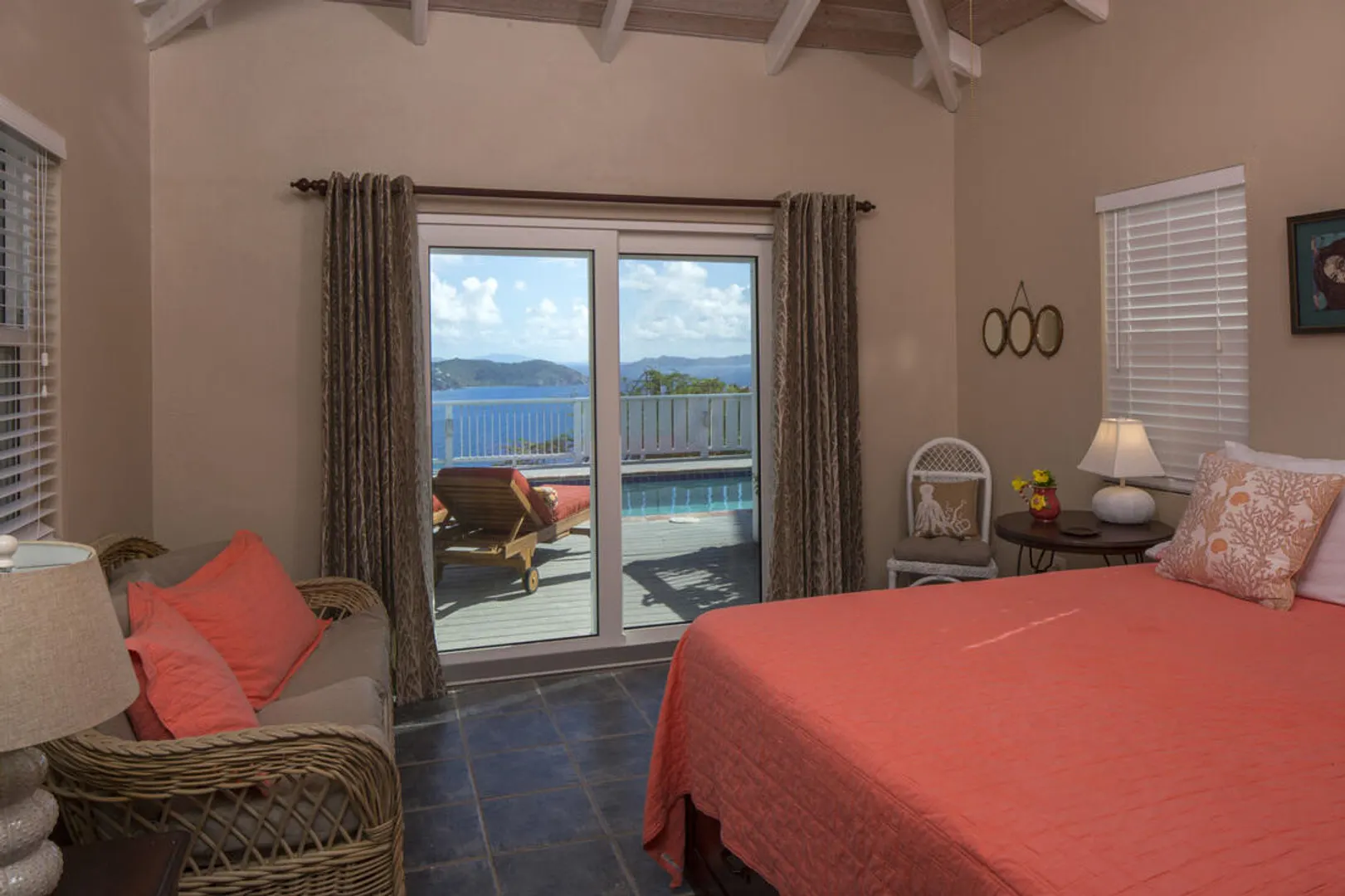 ''Caribe Breeze'' is looking for new owners to love this wonderful home. Breathtaking view is a wow factor of this well-build masonry villa, located in secluded Concordia Estate. Stunning views from each window, pool, expansive lounging decks and covered porch make this villa attractive to island visitors. Cooling breezes year-round make this home a great option for full-time residents. 2 bedrooms with extra daybeds, large closets and in-suite bathrooms with stone outdoor showers are located on lower level off the pool deck. Main living room, kitchen, bathroom and covered porch are on the main level. Villa has many recent updates, new solar system with two Tesla batteries, windows and doors.