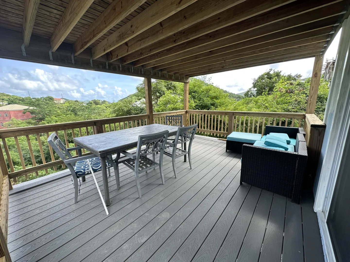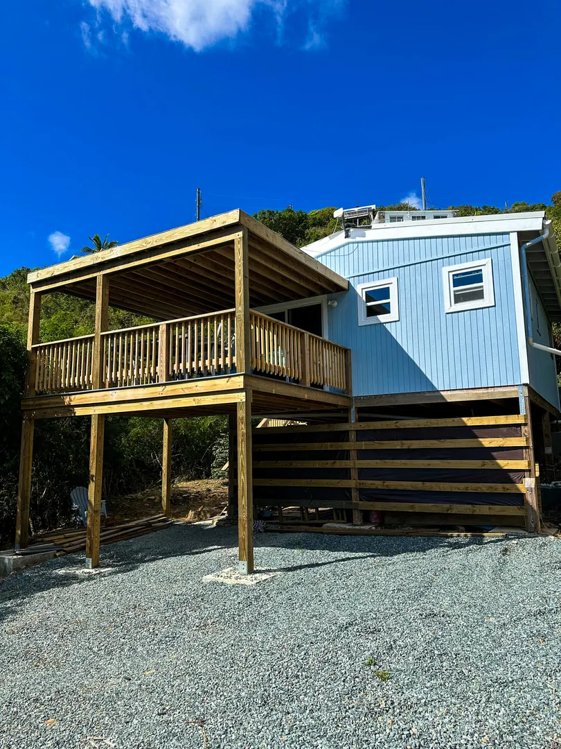 Existing 1 bedroom, 1 full bath cottage that is turn key for living or renting! The cottage has a comfortable living area right off the kitchen that then flows out on the large covered deck built with Trek deck material. The deck roof was constructed to allow the addition of a second story offering views to Hurricane Hole and Coral Bay Harbor. Below the cottage there is ample room to add a second bedroom. There is a flat, gravel parking area with enough room for two or more cars. This is the perfect spot to enjoy the colorful sunrises in Coral Bay. Owner financing is available. Property is being sold as is, where is.