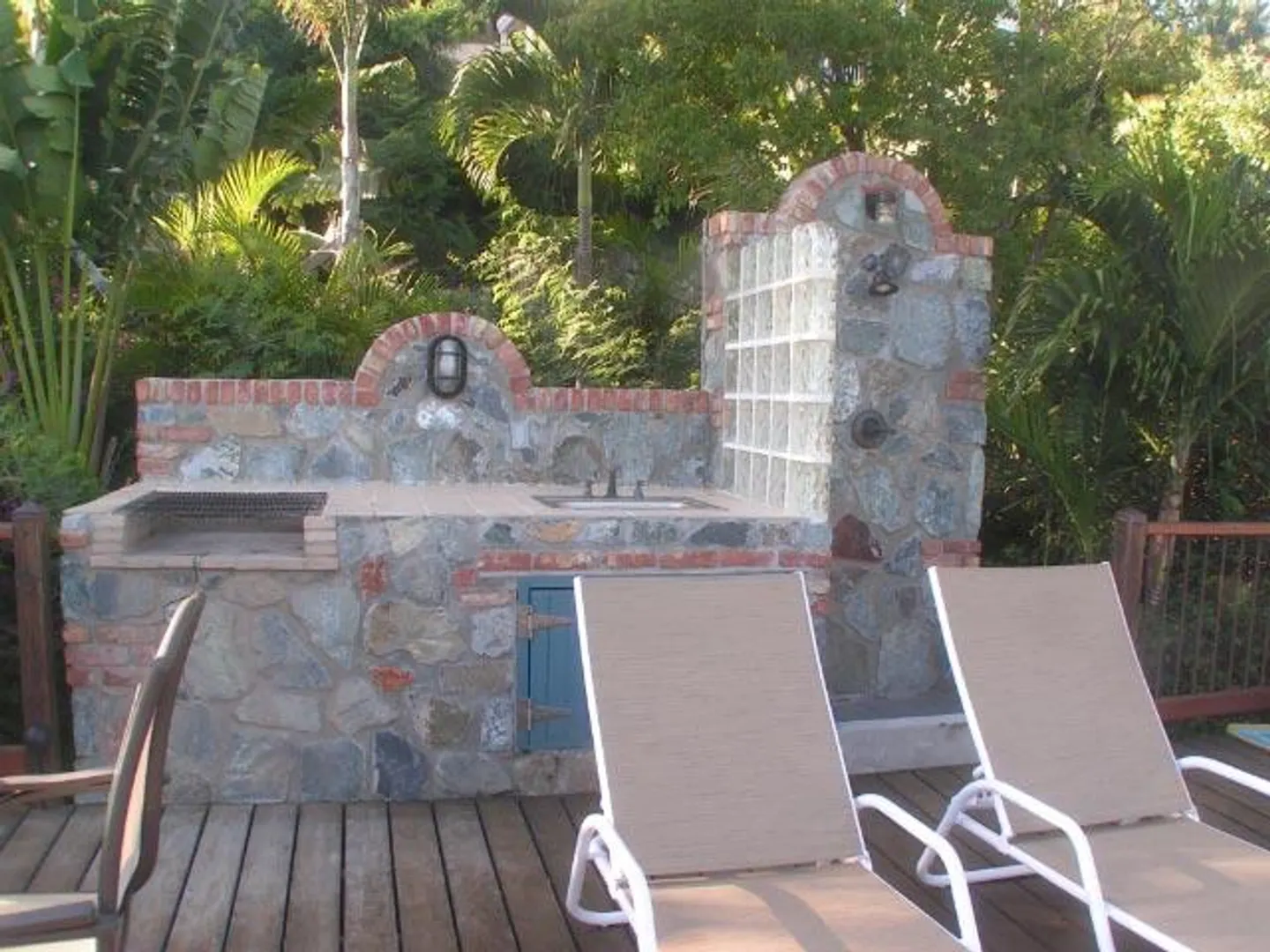 ''Villa Madeline'' is a new luxury pool villa featuring beautiful stone walls inside and out, clay tile roof, solar hot water, central a/c, tile floors, custom cabinets, with granite counter tops and stainless steel appliances, brick paved driveway, lush, tropical landscaping and underground power to house. A large pool with built-in stone BBQ, wet bar, hot tub, fountain and outdoor shower make the spacious deck area an inviting place to relax and enjoy the views of Coral Bay harbor. Plenty of room on site to add another villa or additional rooms. Fully shuttered. Buyer and seller to equally split the cost of doc. stamps. Possible owner financing. This popular vacation villa provides excellent rental income.New in the rental program March 2008. Gross rental income for 2008 $34,625. 2009 YTD Gross Rental $61,817.