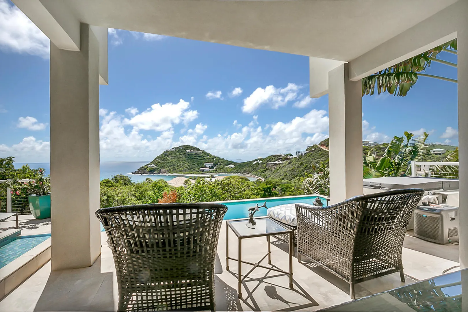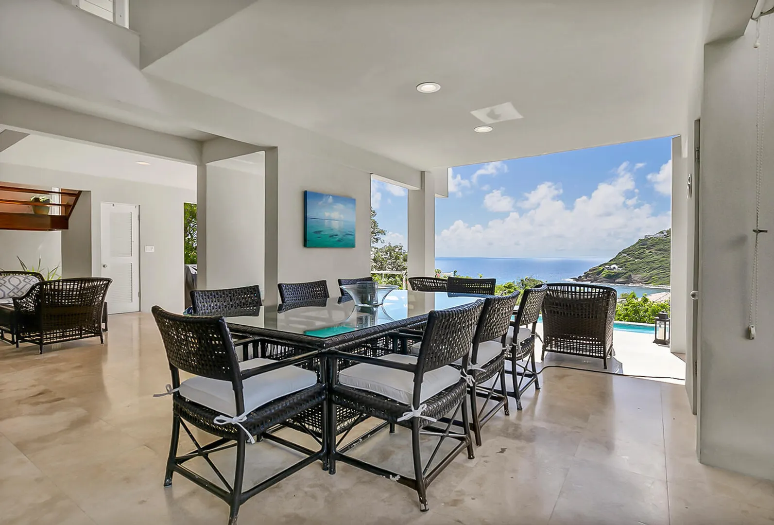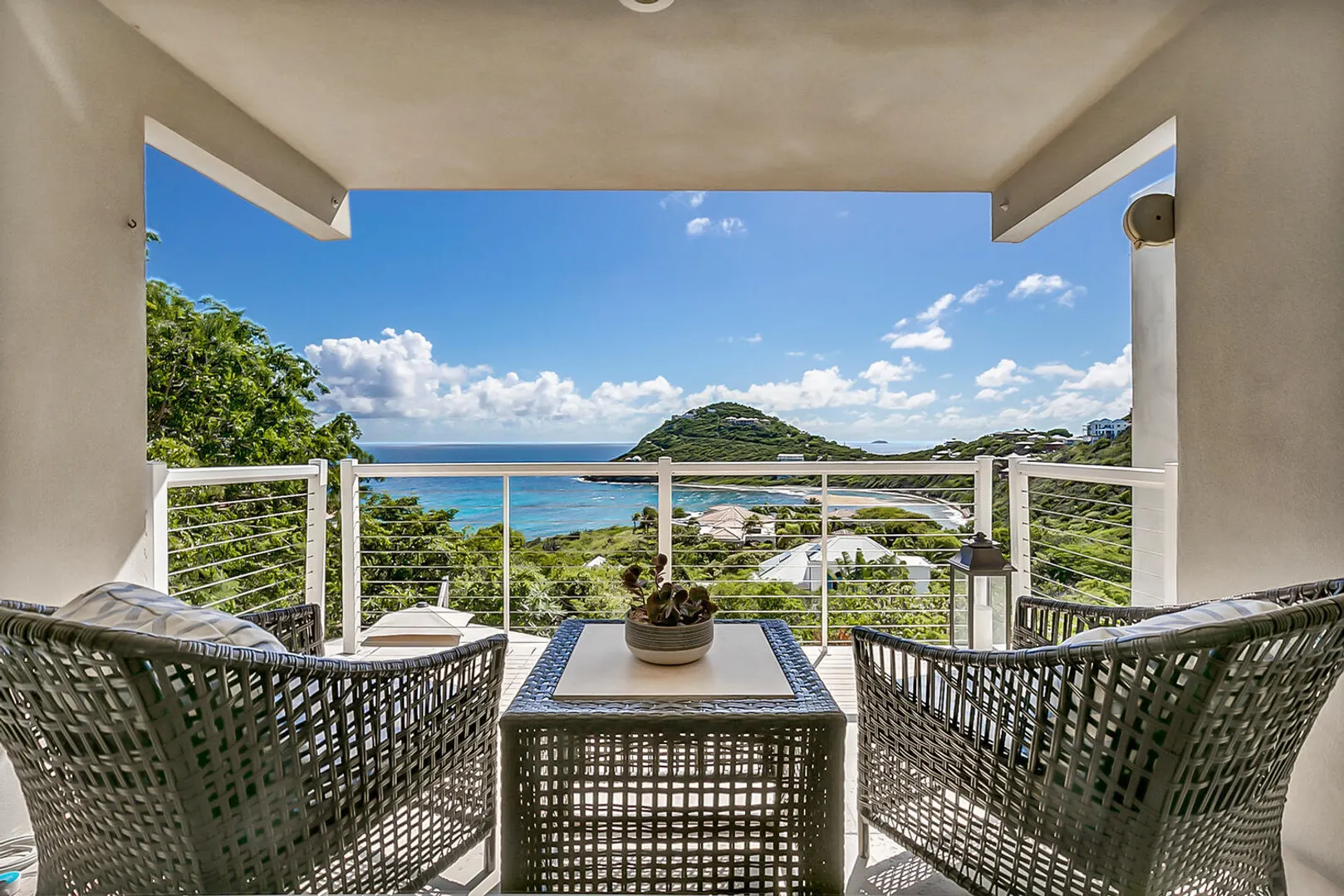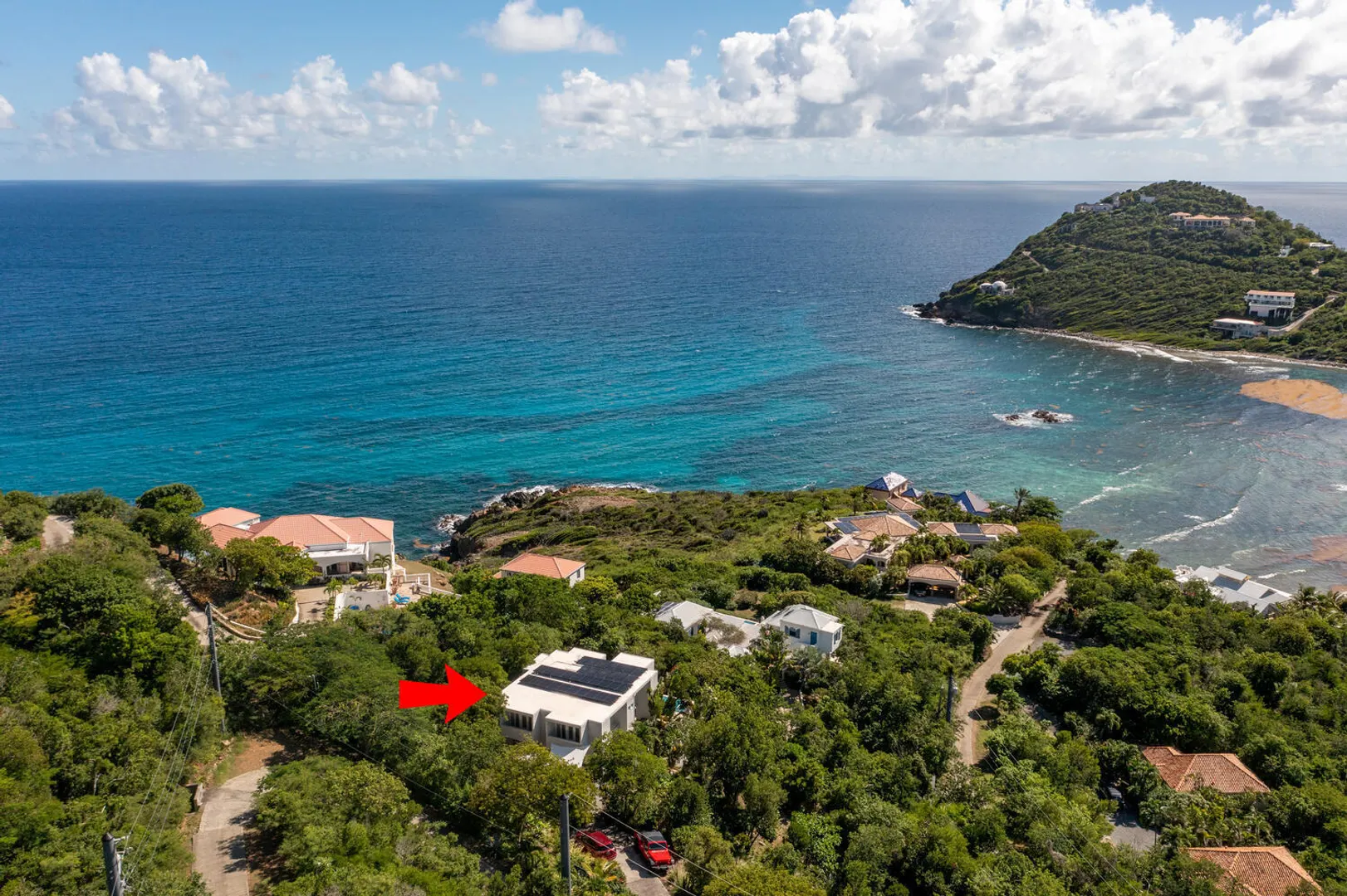 This immaculately maintained residence located in sought after Chocolate Hole is truly breathtaking. Newly updated, this home is filled with natural light and clean architectural lines. Stunning views of picturesque Hart Bay are highlighted by floor to ceiling windows. The open living room seamlessly extends outside to the covered deck space, which holds outdoor seating and a dining area. Moving upstairs, you are greeted with a continued emphasis on the ocean views and 3 tasteful bedrooms. The newly expanded upon downstairs apartment holds the same tasteful allure, fresh and exquisitely done. Beautiful gardens throughout the property add to the tranquility and compliments the outdoor living spaces.