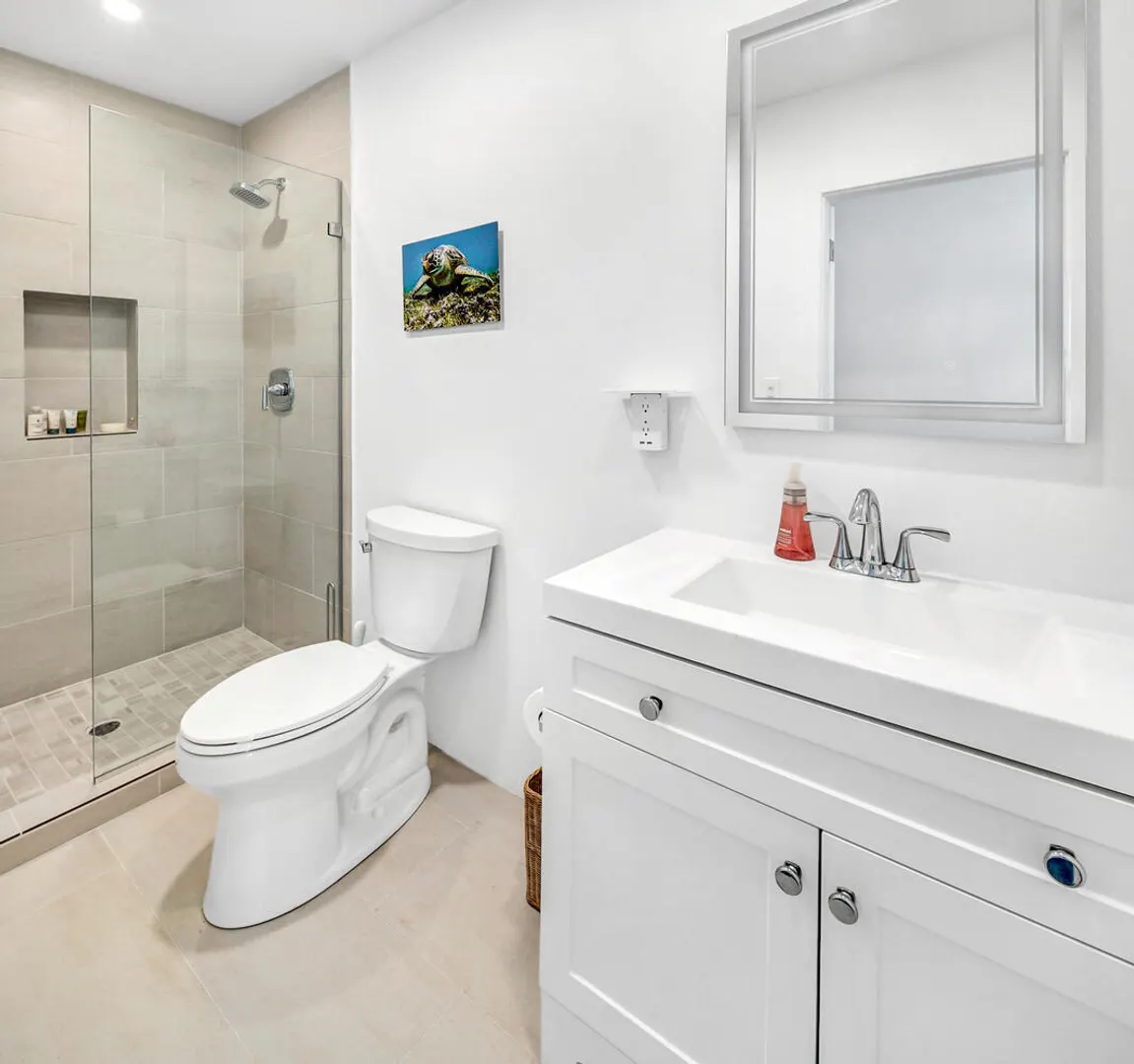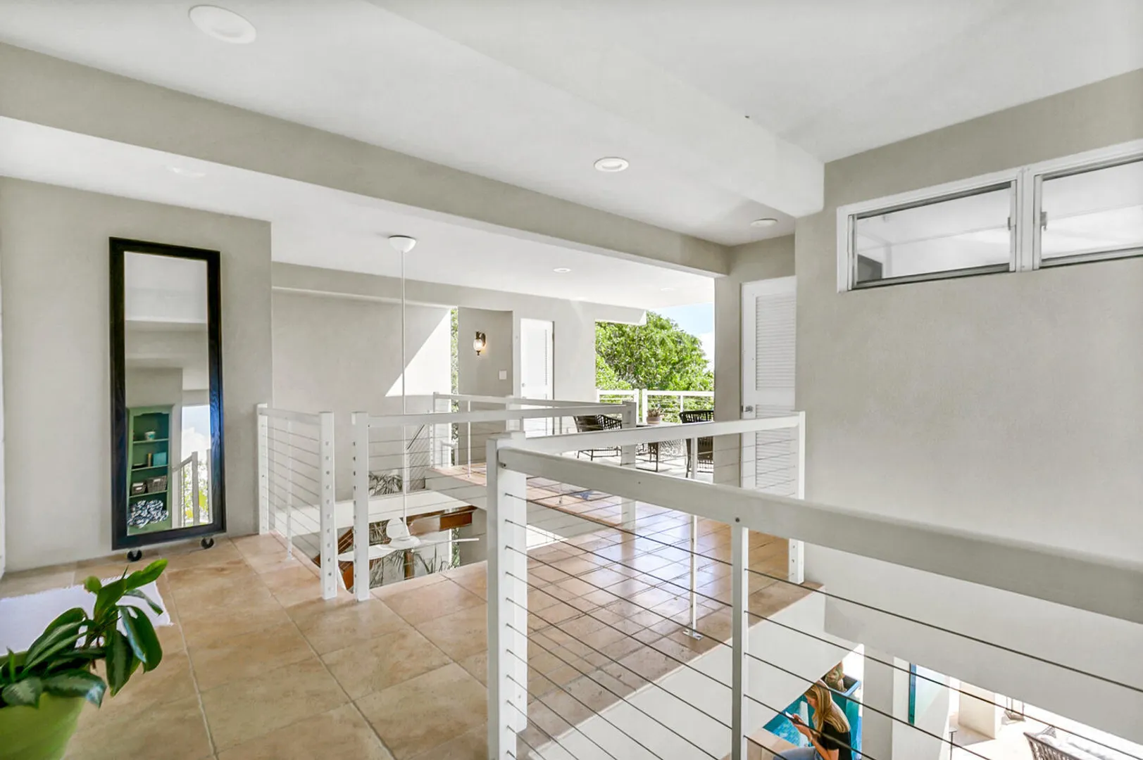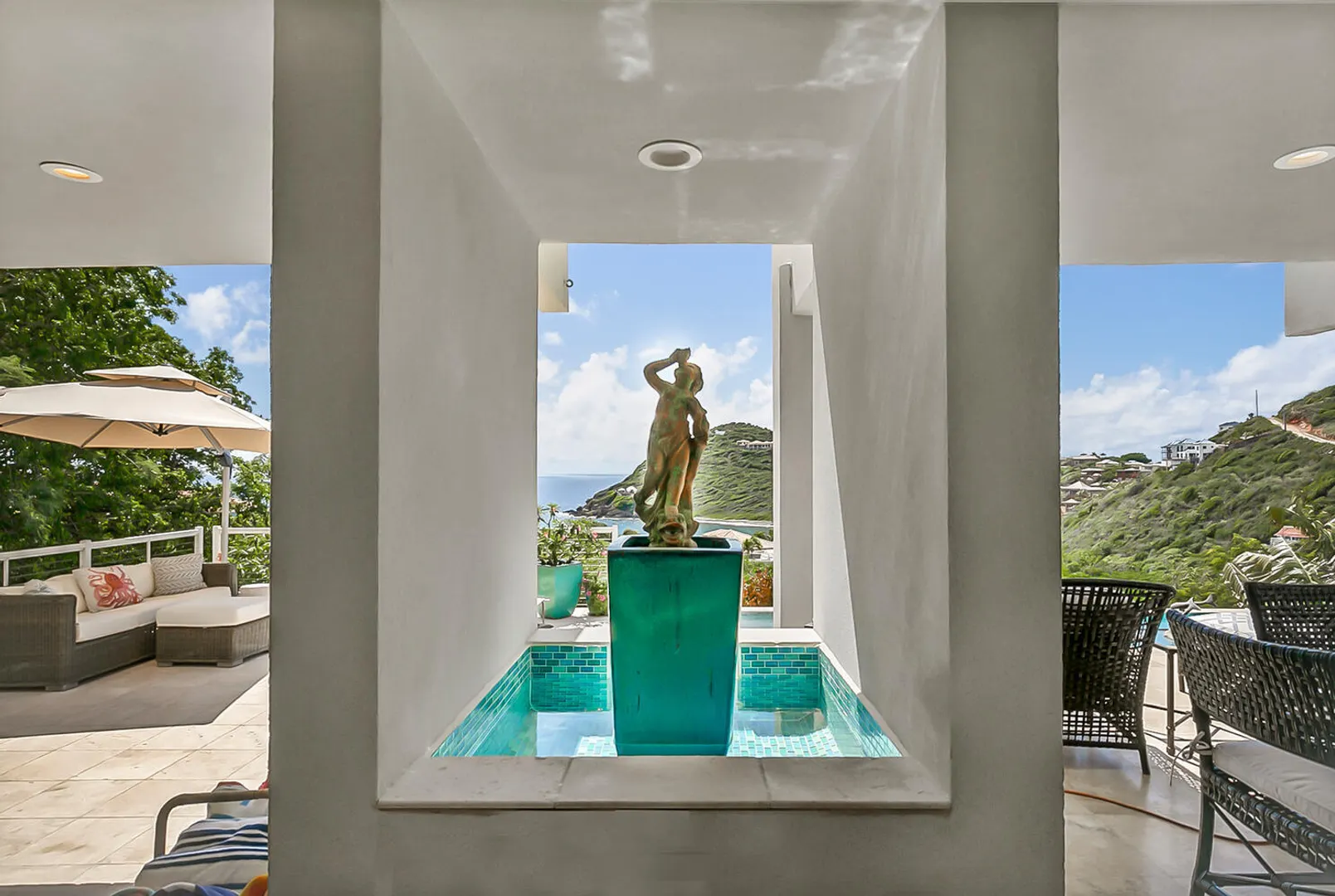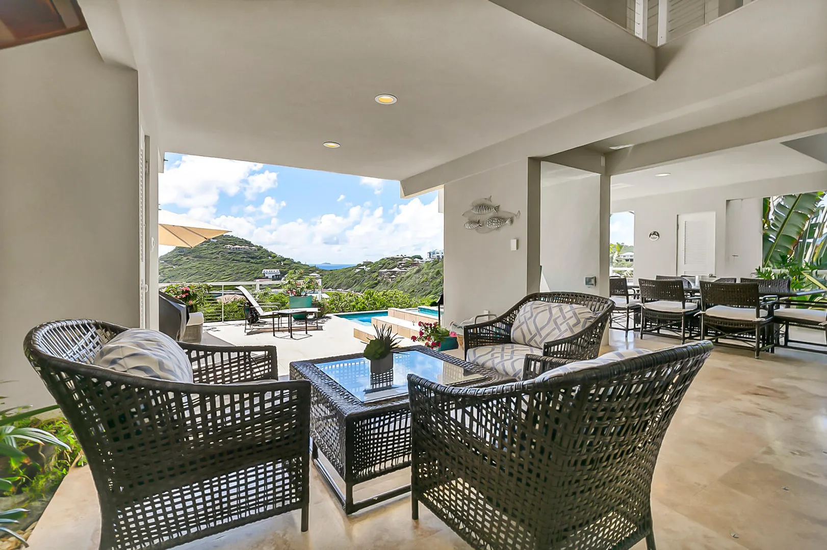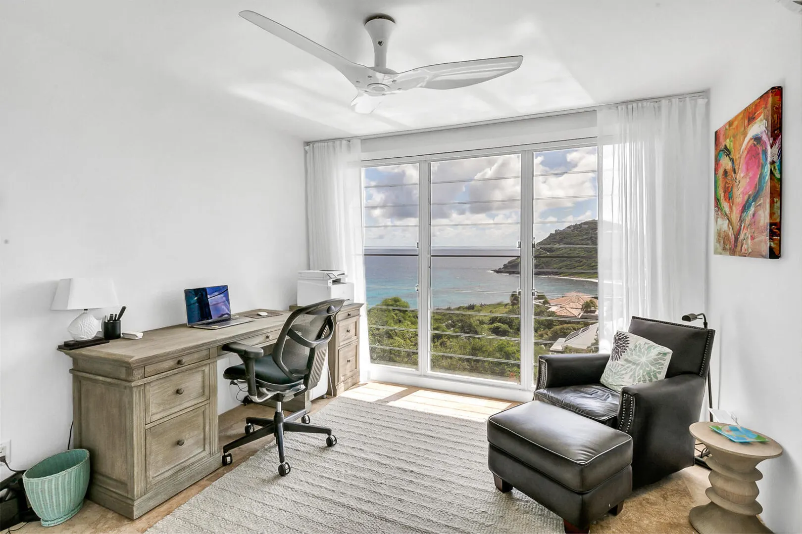 This immaculately maintained residence located in sought after Chocolate Hole is truly breathtaking. Newly updated, this home is filled with natural light and clean architectural lines. Stunning views of picturesque Hart Bay are highlighted by floor to ceiling windows. The open living room seamlessly extends outside to the covered deck space, which holds outdoor seating and a dining area. Moving upstairs, you are greeted with a continued emphasis on the ocean views and 3 tasteful bedrooms. The newly expanded upon downstairs apartment holds the same tasteful allure, fresh and exquisitely done. Beautiful gardens throughout the property add to the tranquility and compliments the outdoor living spaces.
