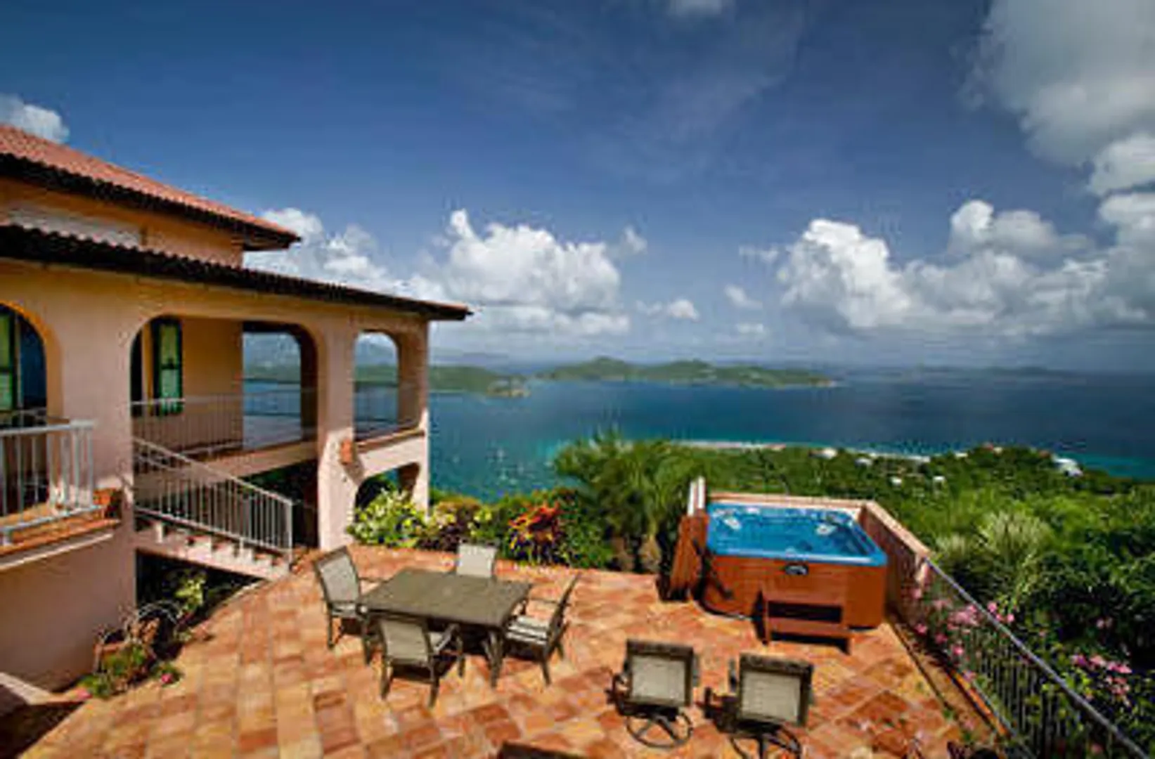 VERY MOTIVATED, A MUST SEE!! ''VILLA VENTOSA'' has absolutely mesmerizing water views to the British Virgin Islands and beyond! Set high on a lush breezey hillside near Virgin Islands National Park lands, the pristine privacy is perfect and yet it is just minutes from Coral Bay shops, restaurants and boat harbor. This newer, well maintained, masonry, Mediterranean inspired villa is extremely well built and custom designed to take advantage of the views and tradewinds with every luxury amenity for owners' and guests' comfort. It has 3 king air conditioned bedroom suites plus an open great room and gourmet kitchen which features Bosch appliances beautiful Island stone work, unique coral stone walls, tile floors, custom mahogany cabinetry and granite counters very elegant low maintenance.The exquisite swimming pool has a large sun deck plus spa and there are covered galleries for shade and dining. Excellent rental history with great income. All committed rentals shall be honored by Buyer. Buyer and Seller to split cost of Stamp Tax evenly. Buyer to cooperate with documentation if Seller contemplates a 1031 Tax Free Exchange.