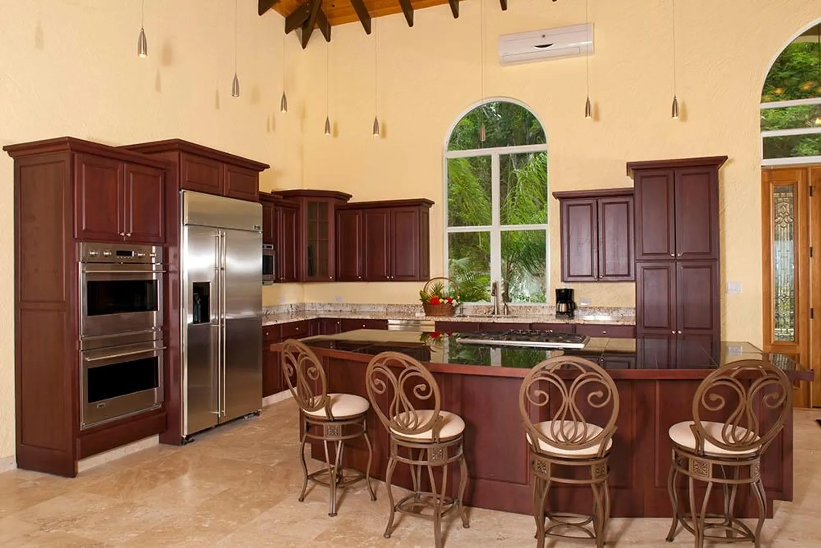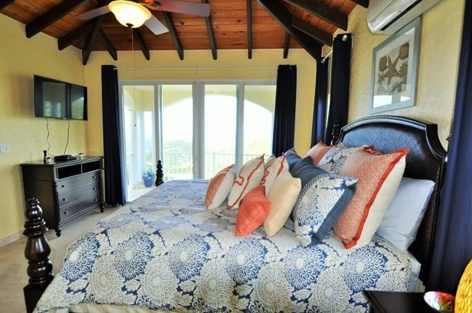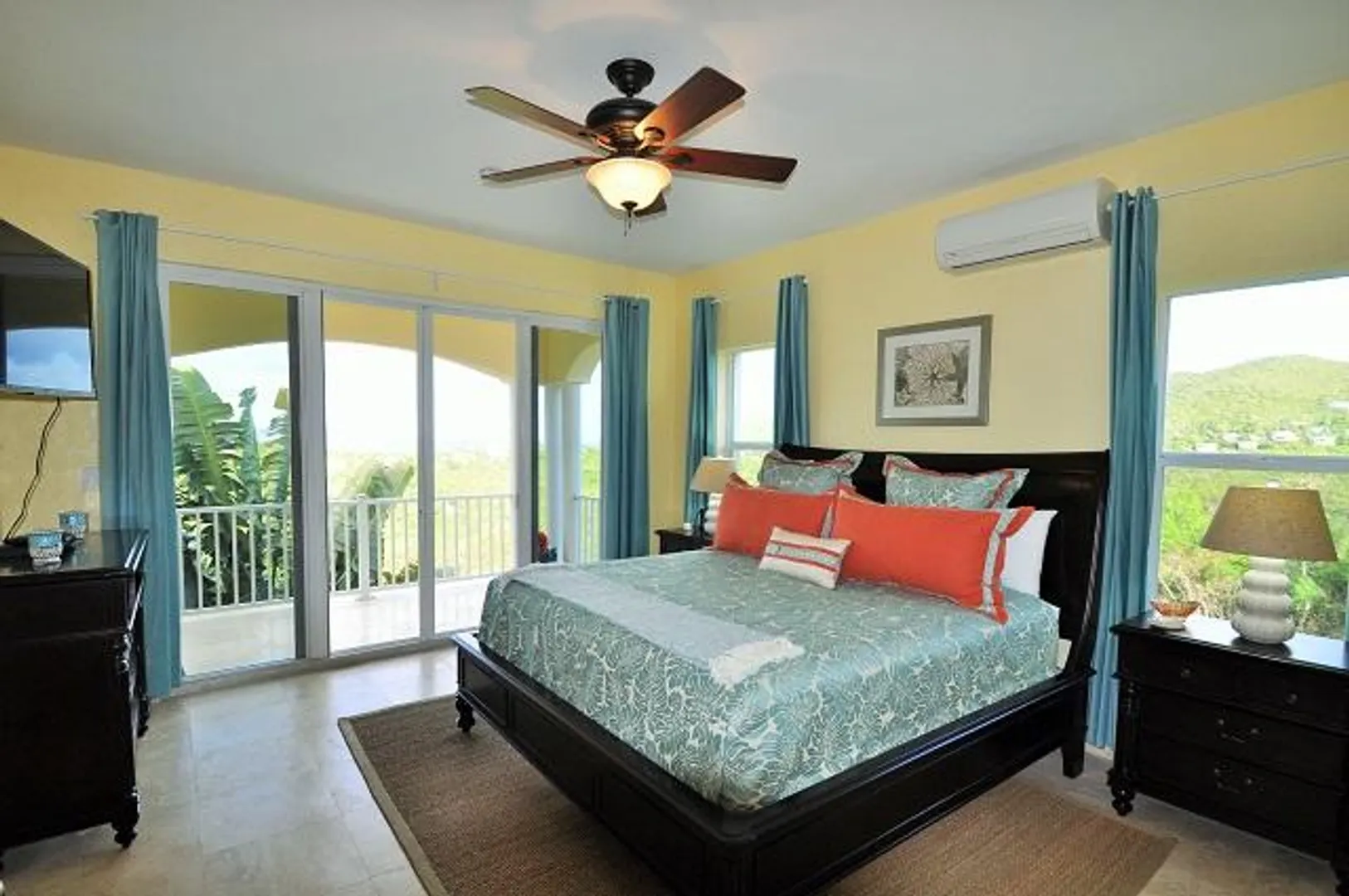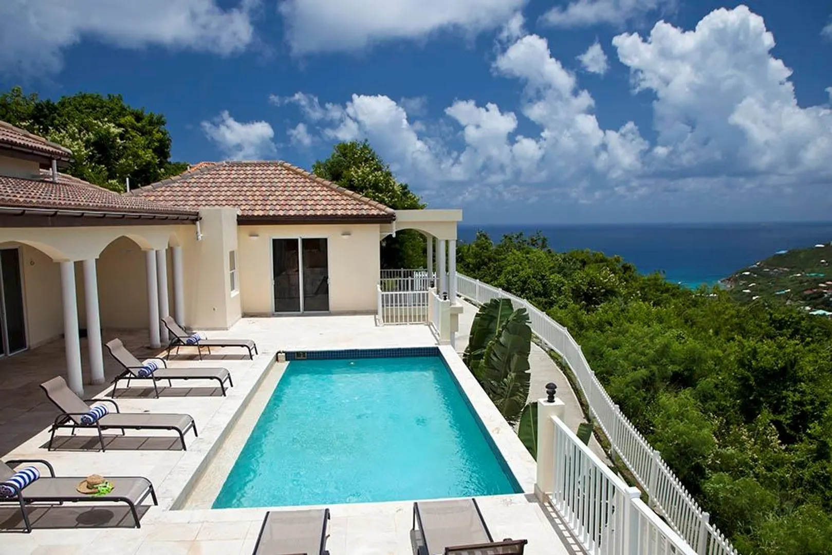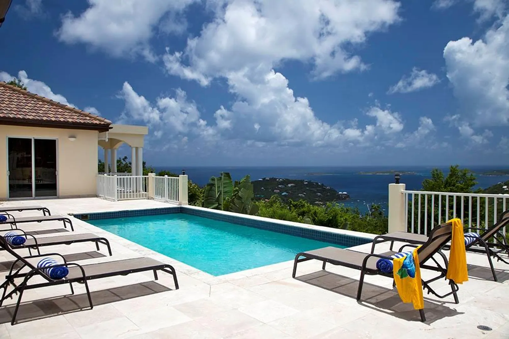 No expense was spared on this elegant contemporary styled villa located high atop a level site within the gated community known as Virgin Grand Estates. Completed in 2010, the stately and fully air conditioned four bedroom villa offers sweeping views from Great Cruz Bay to St. Thomas. Amenities include large pool and entertainment deck, large double laundry room, walk-in closets in each bedroom suite, designated master suite and three bonus rooms. This home is a must see, beautifully furnished and new to the rental market with rave reviews from guests.