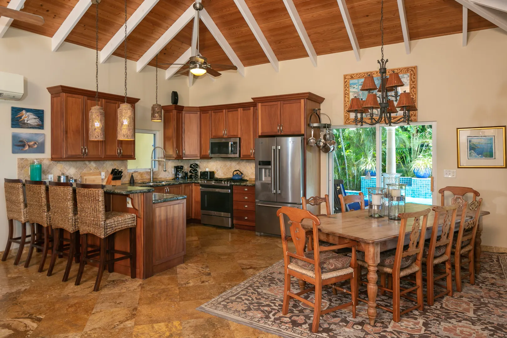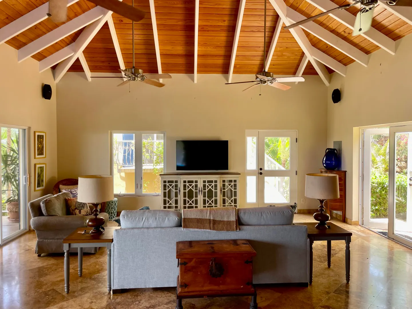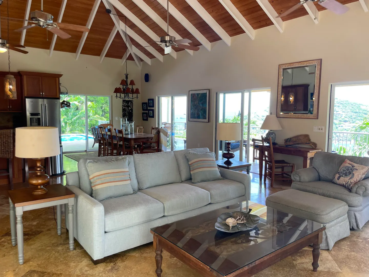 Perched above Great Cruz Bay with sweeping views to St. Thomas, Indigo Villa captures the essence of Caribbean elegance. This meticulously maintained retreat features an inviting pool, a spacious wrap-around veranda, and a stunning rooftop deck\u2014ideal for relaxing or hosting gatherings under the stars. Inside, the villa offers four generously sized bedrooms, a custom-designed kitchen, and seamless indoor-outdoor living. Boating enthusiasts will appreciate the proximity to the HOA dock to access a boat. Experience the tropical charm and luxury living at Indigo Villa.